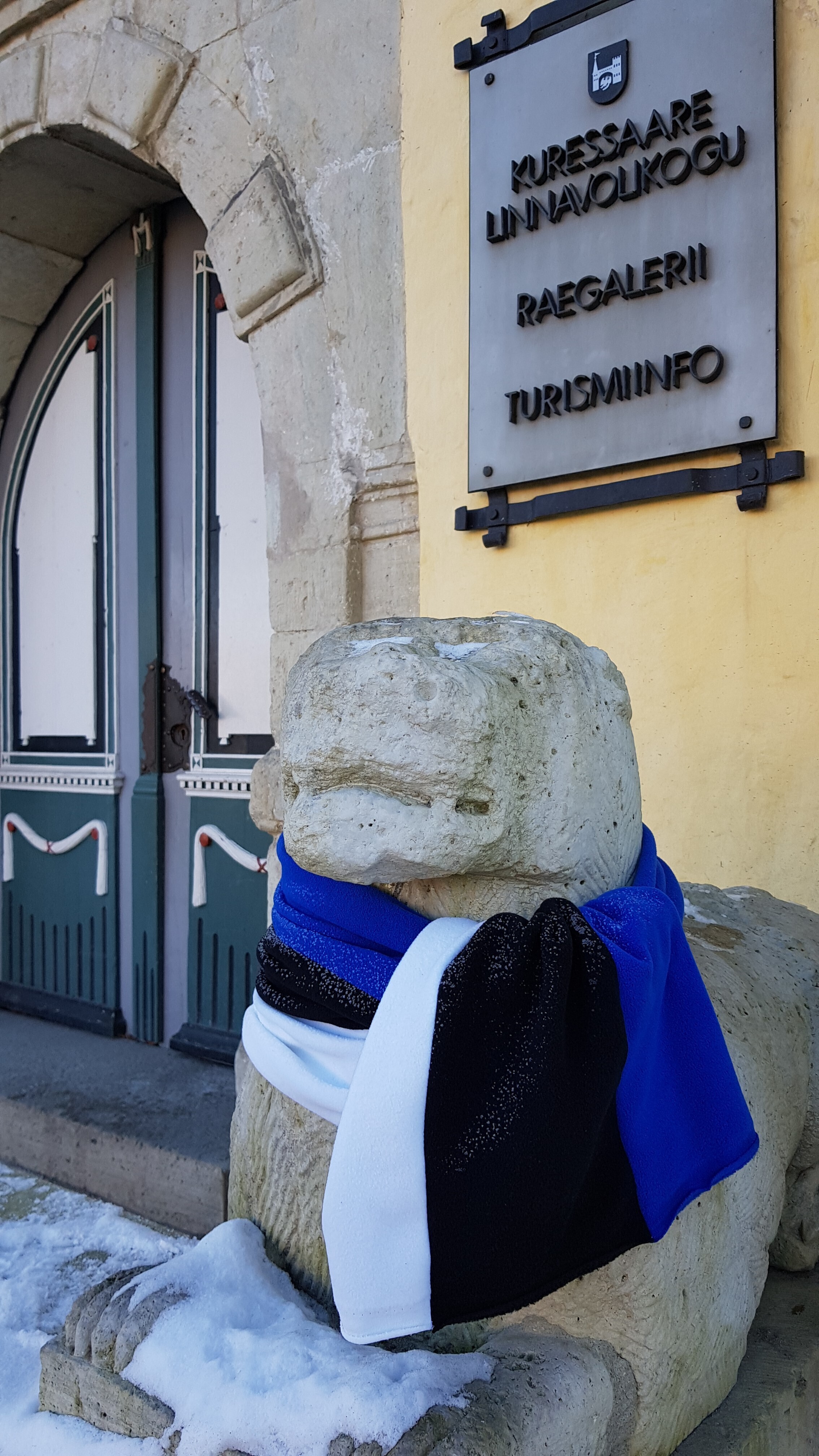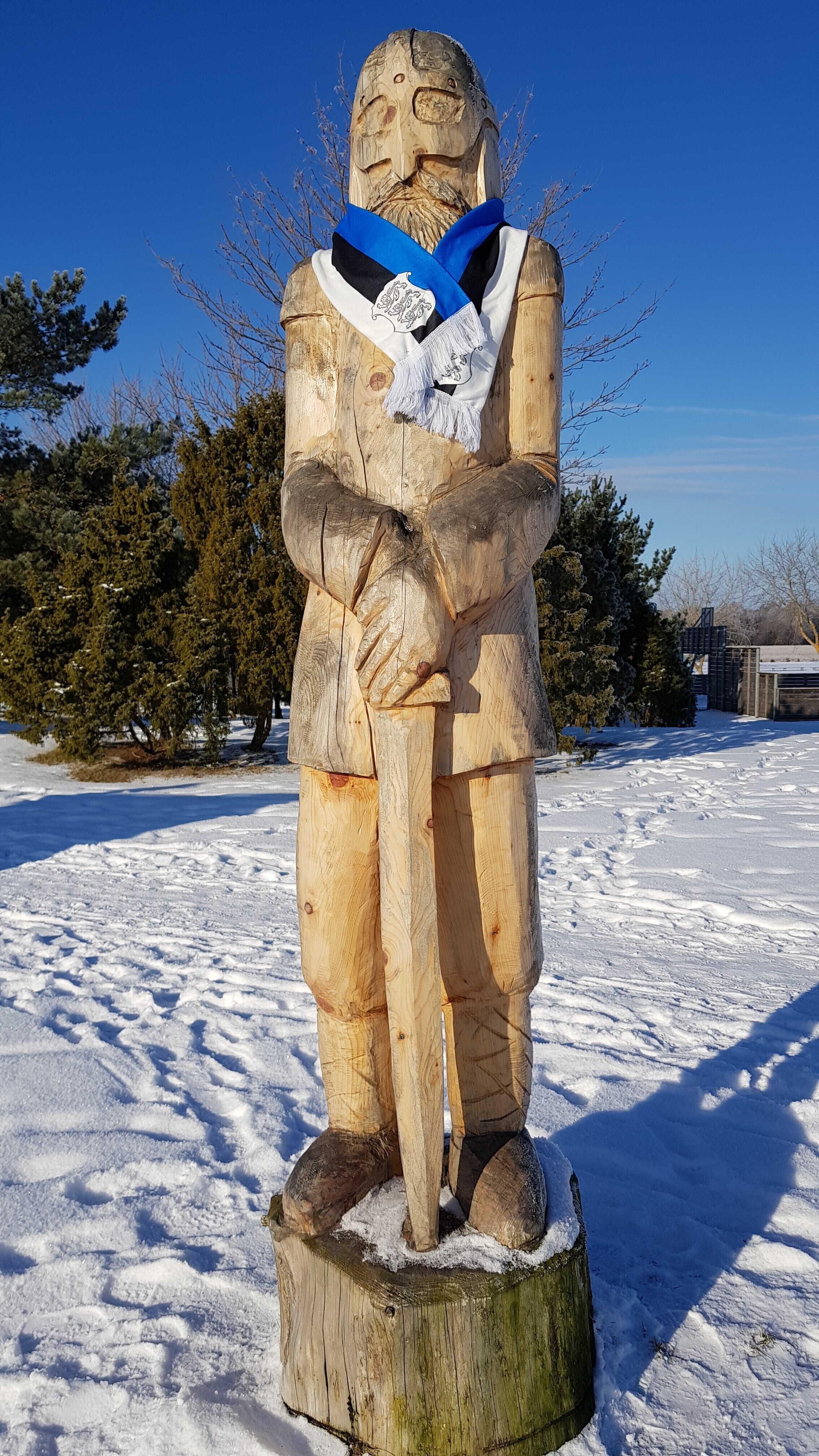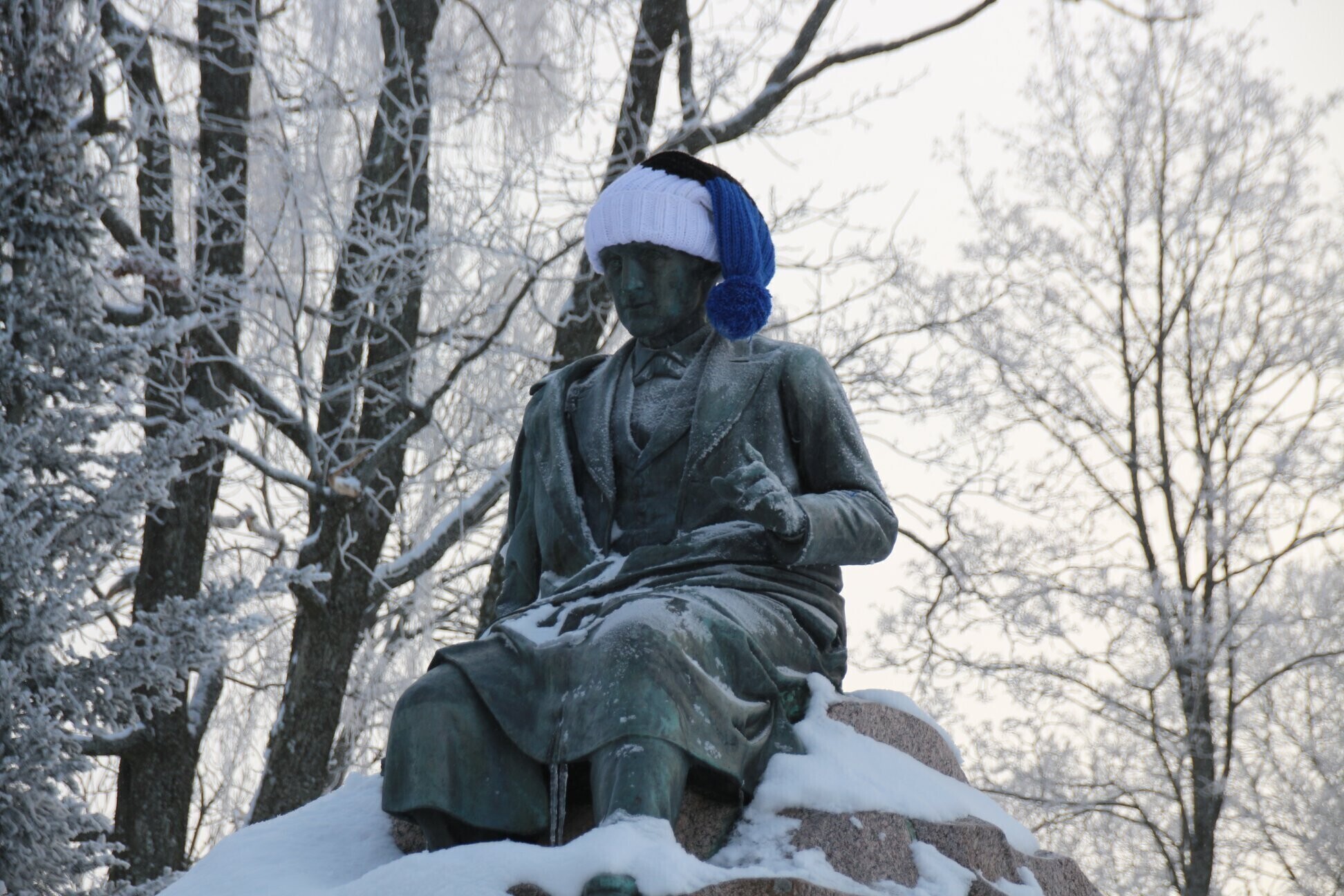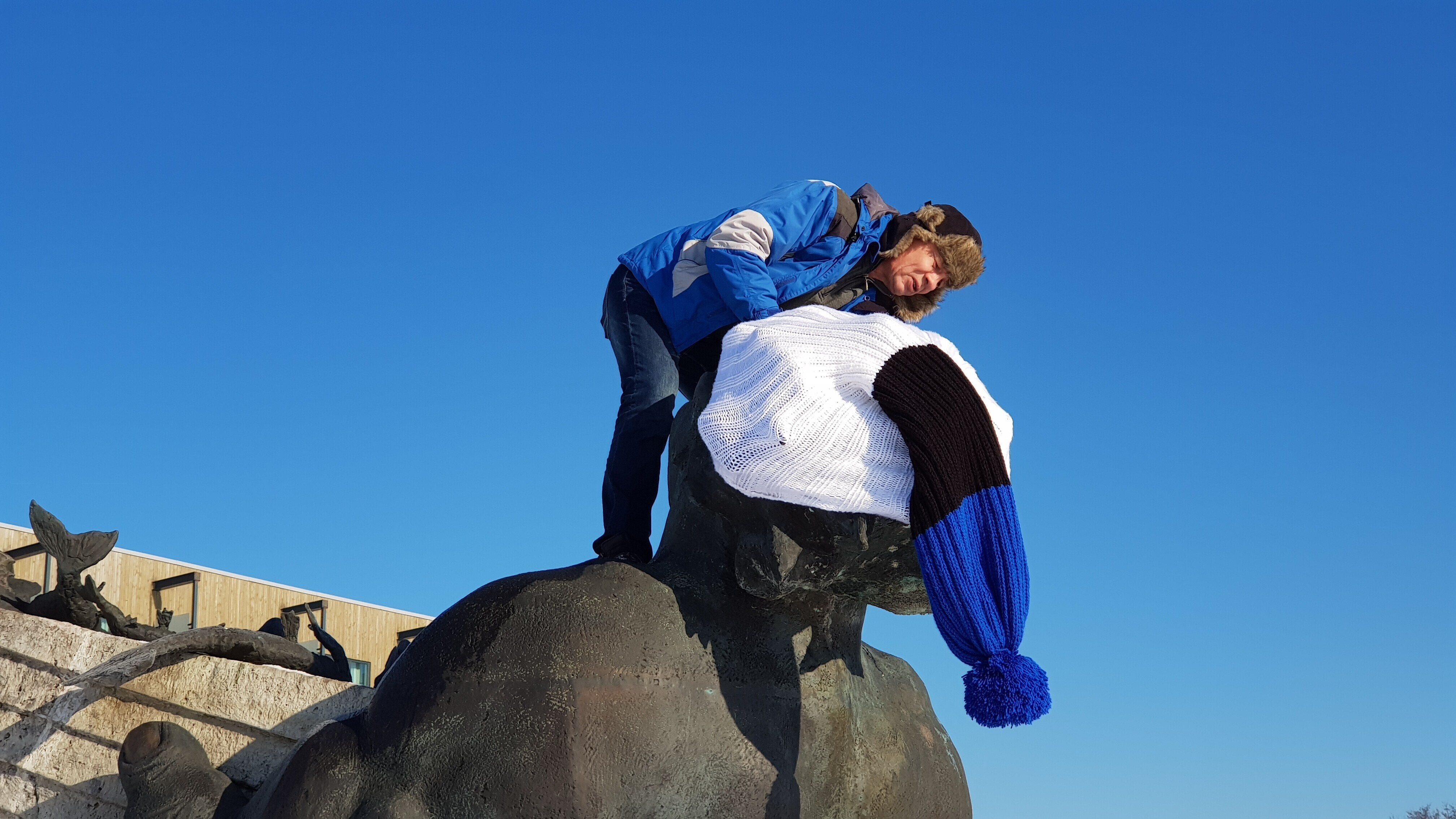 ФОТО: скульптуры по всей Эстонии украсили сине-черно-белыми шарфами и шапками