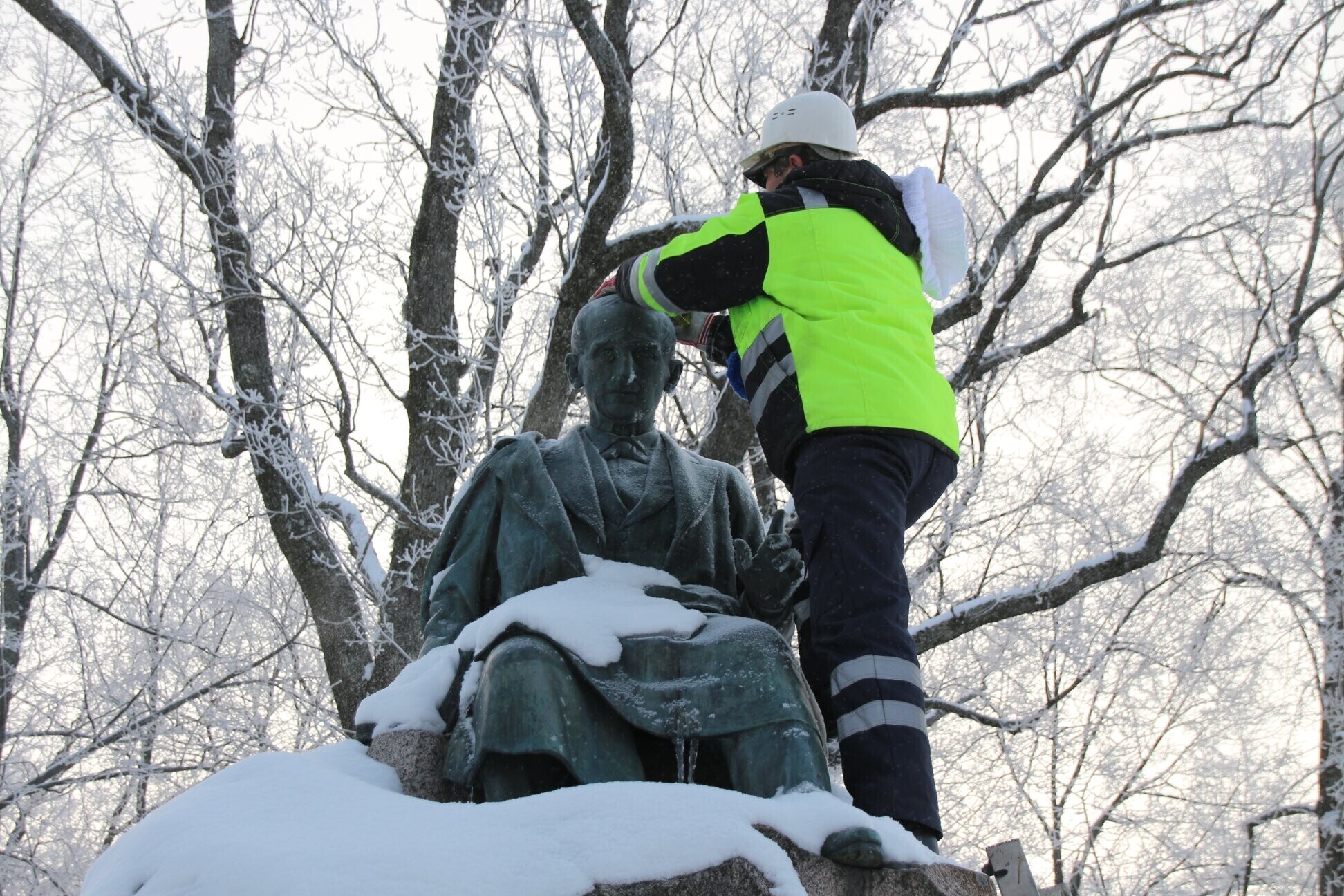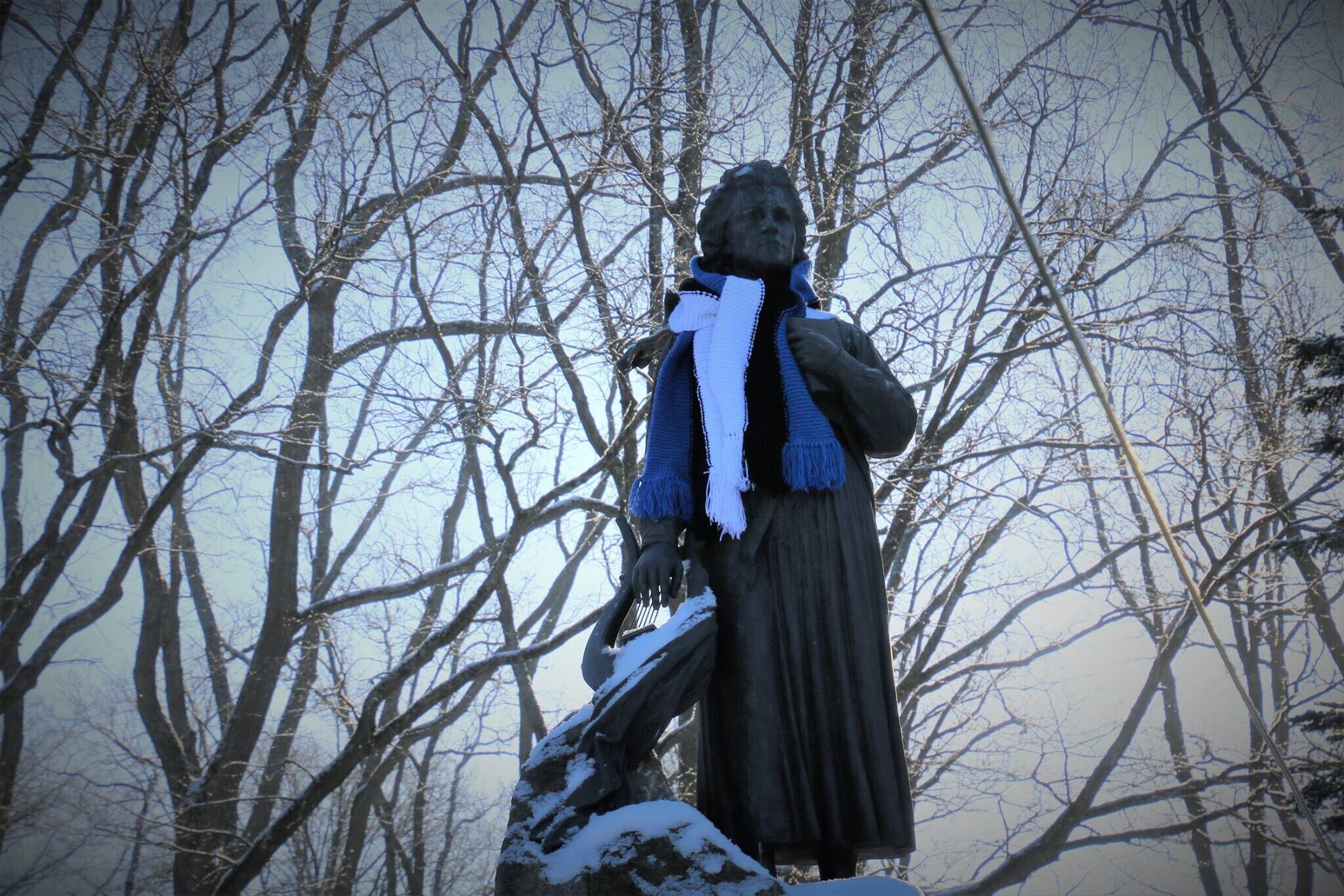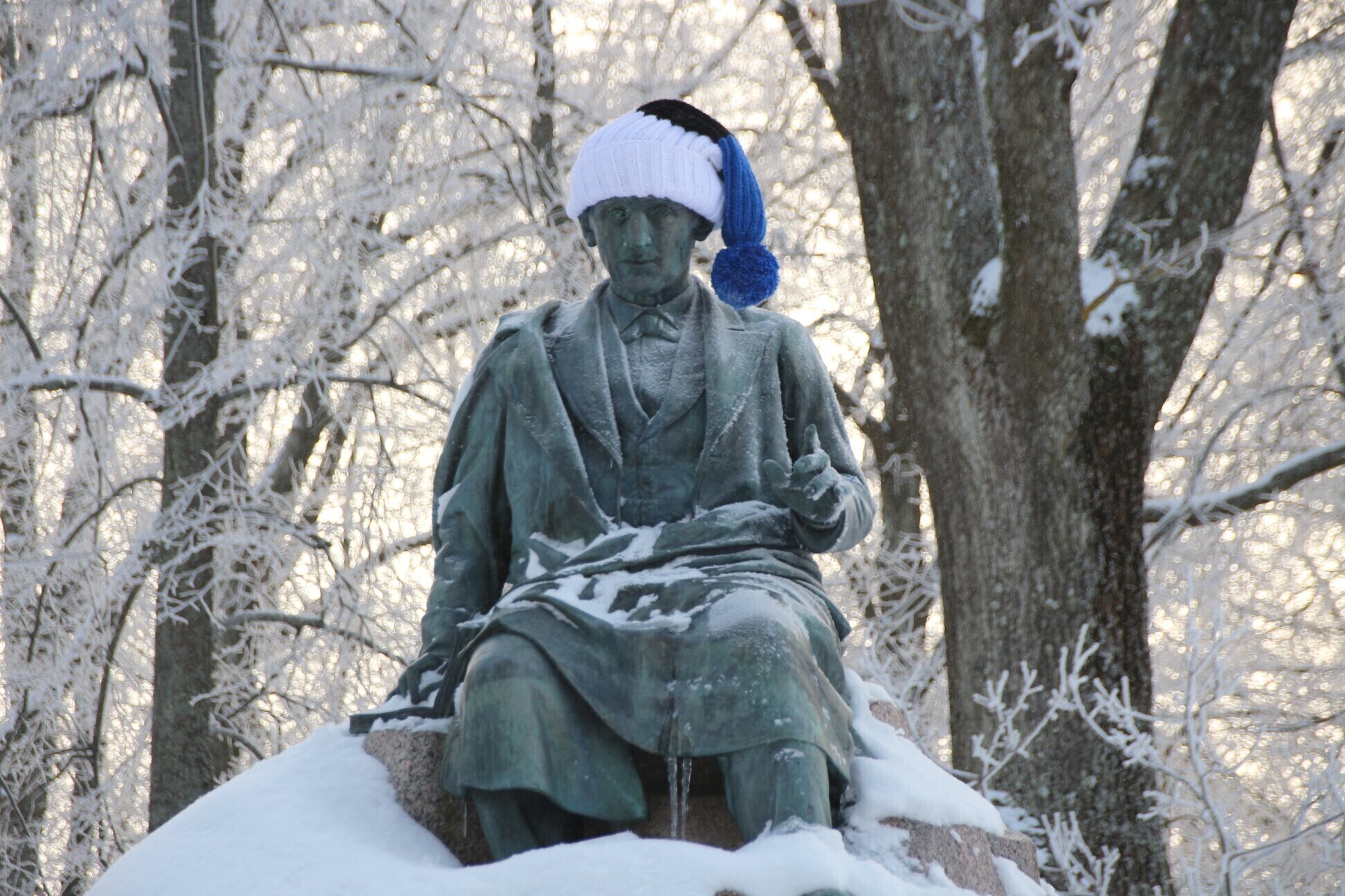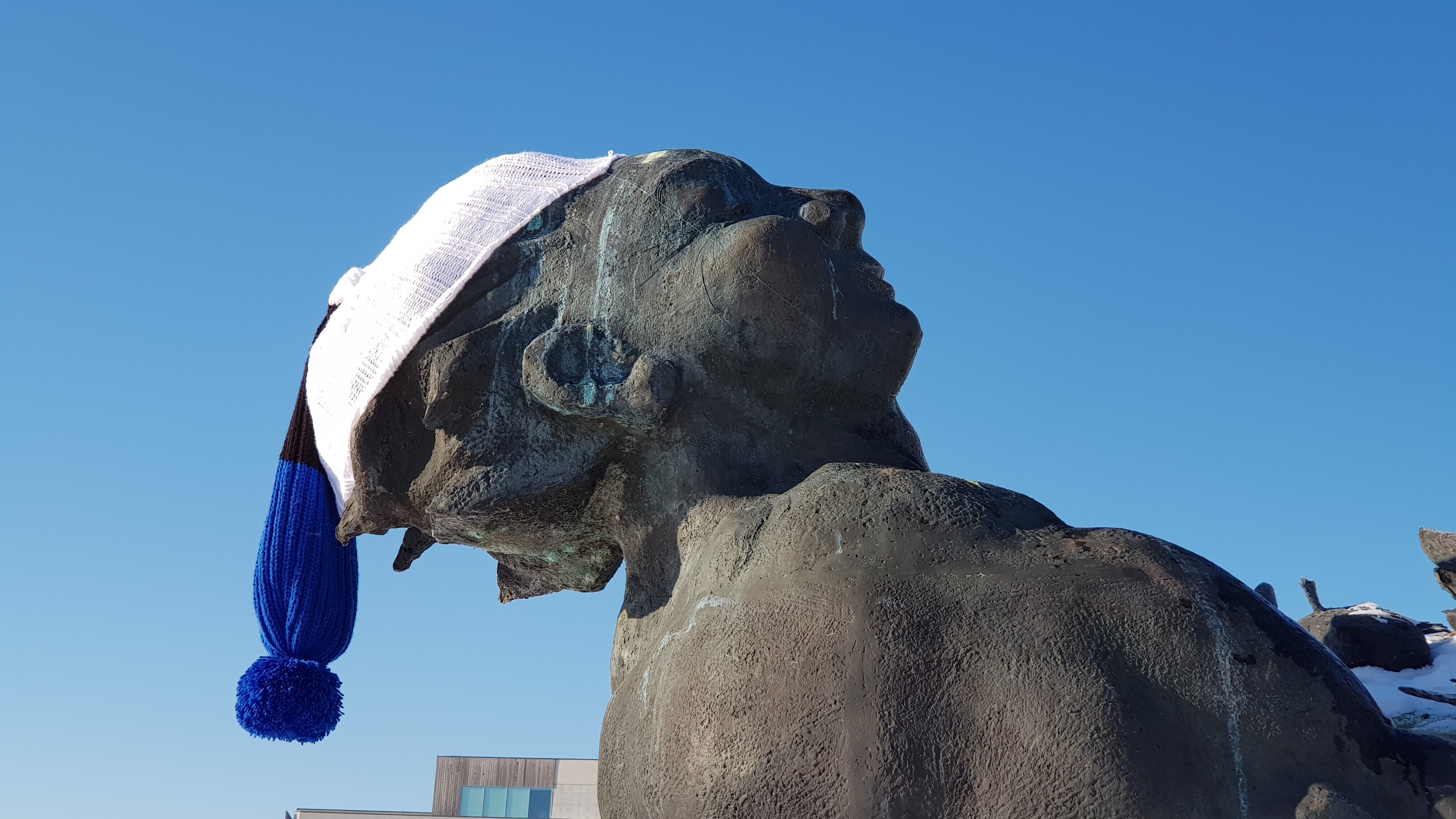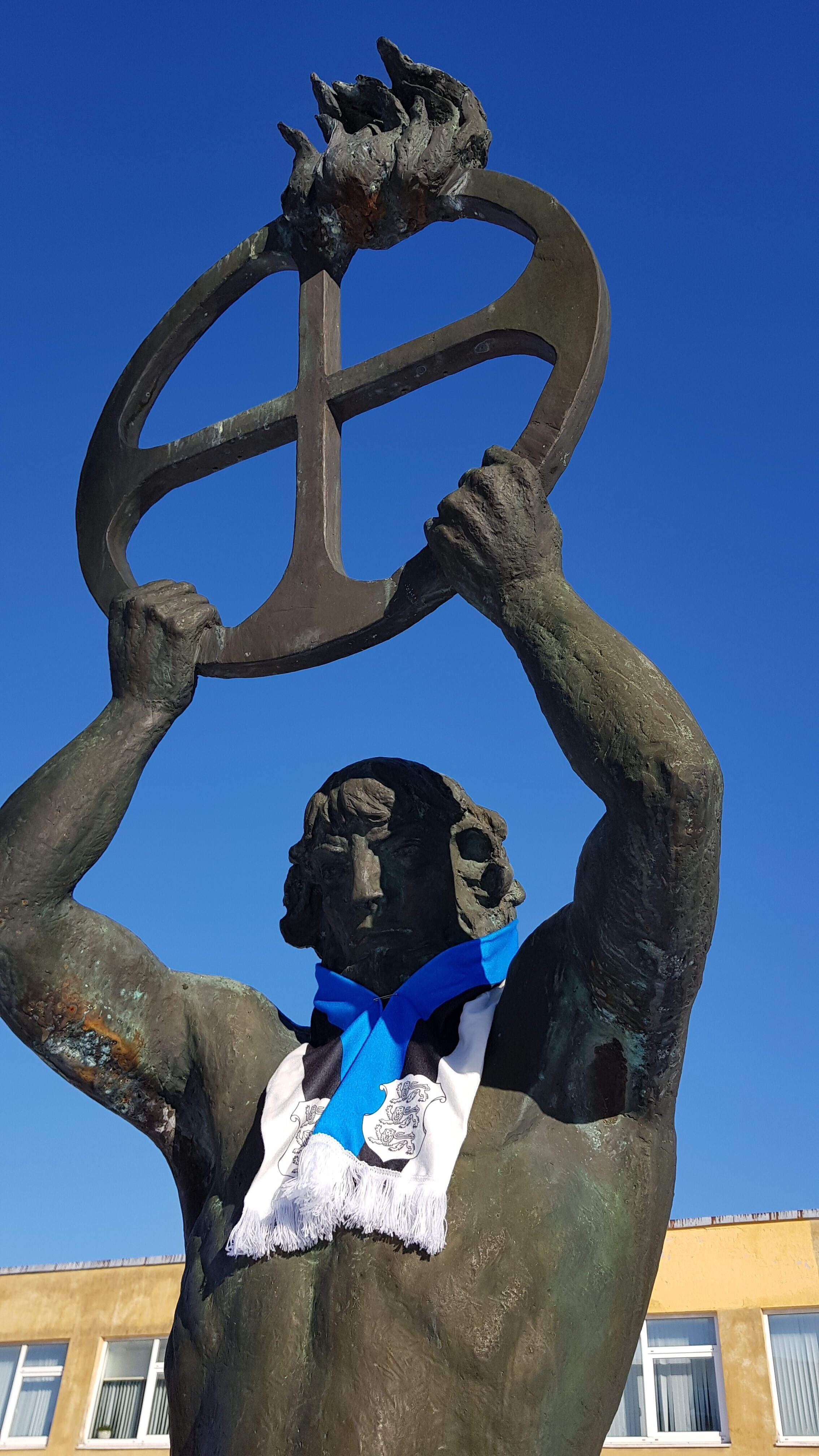 ФОТО: скульптуры по всей Эстонии украсили сине-черно-белыми шарфами и шапками
