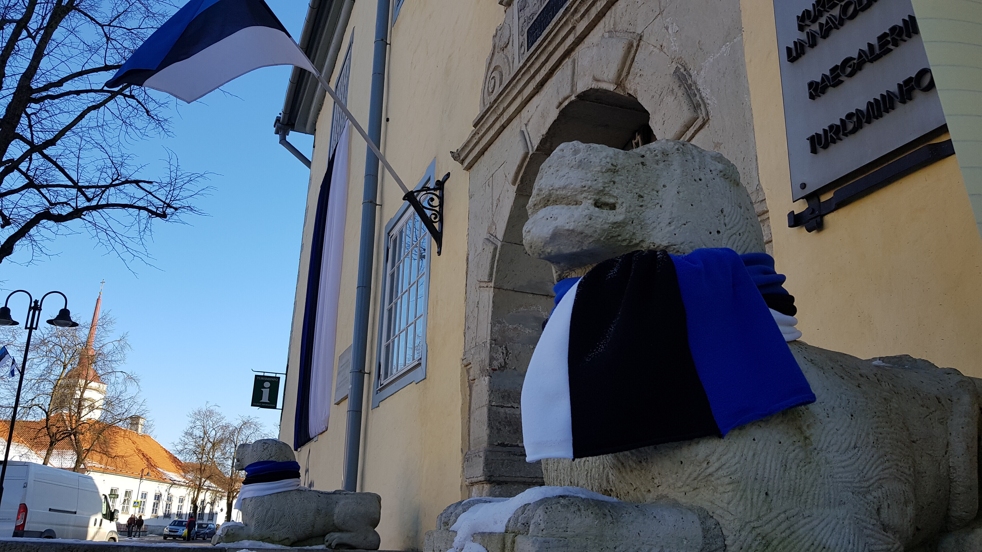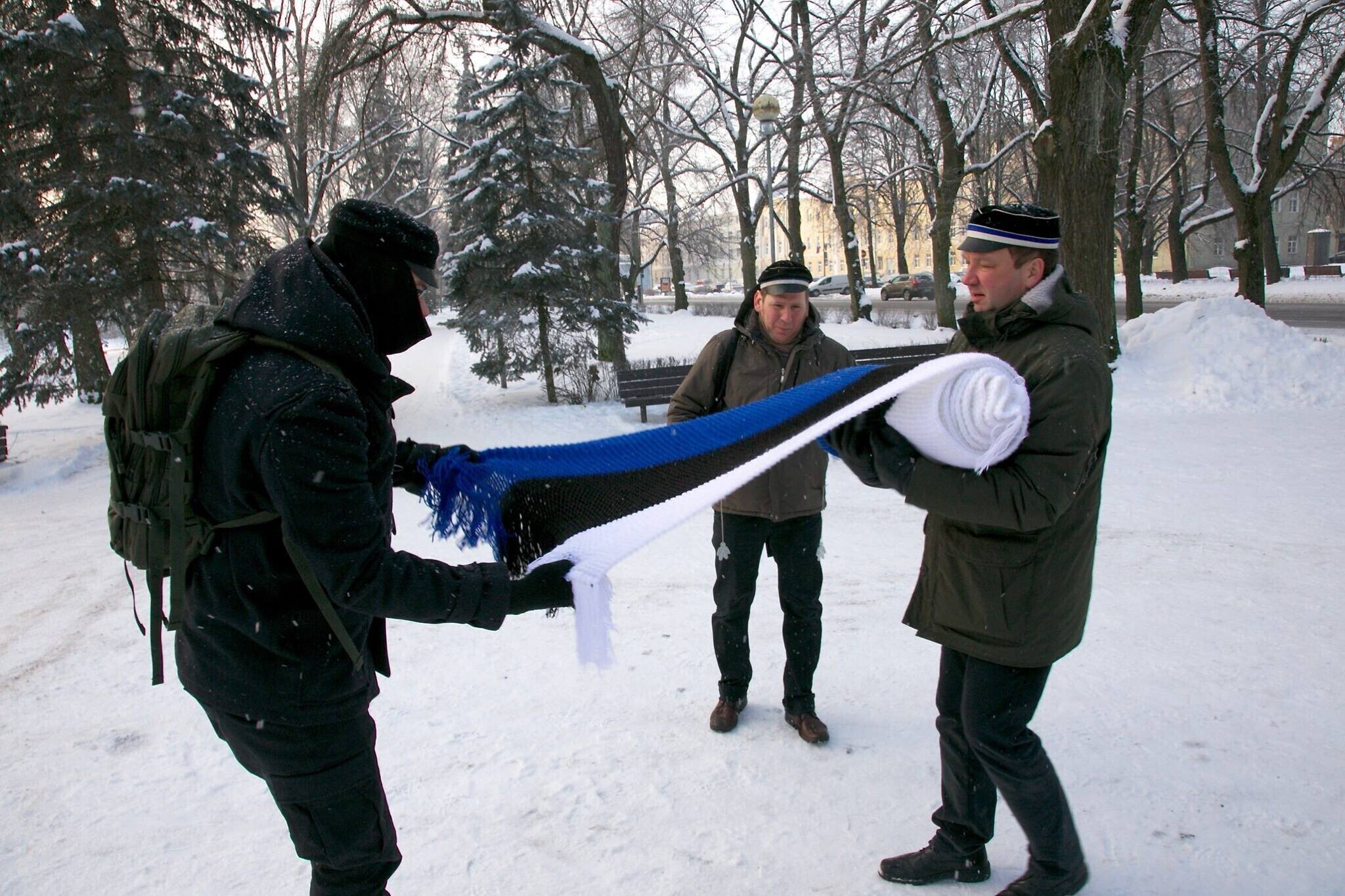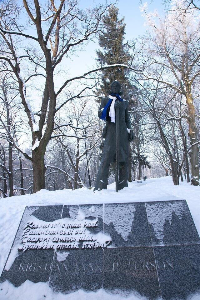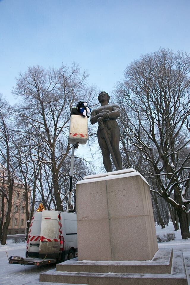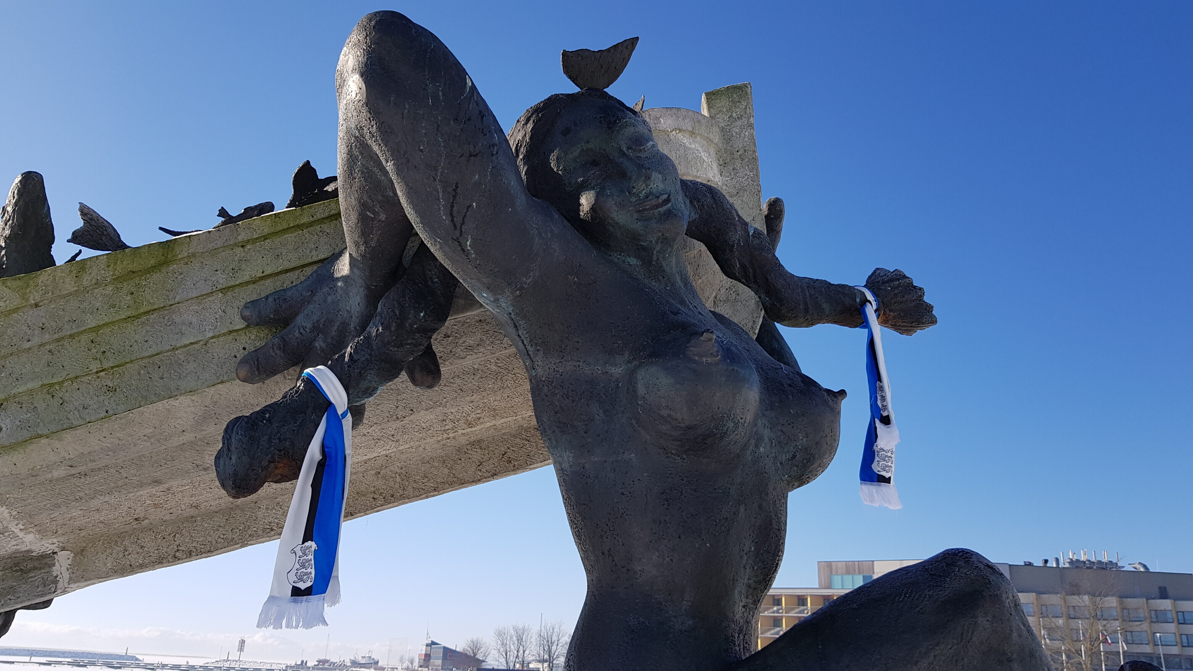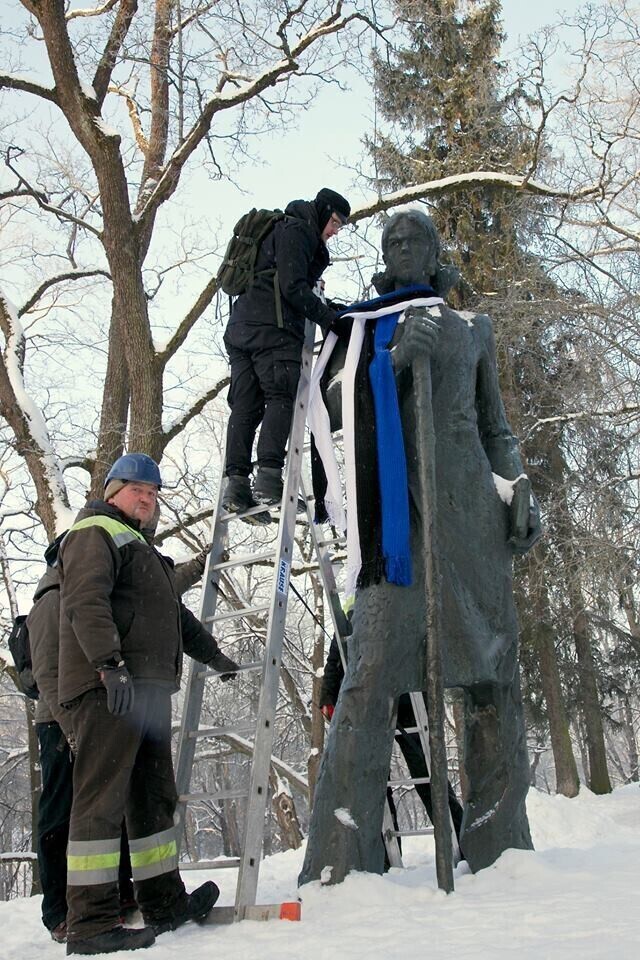 В четверг, 22 февраля, более 20 скульптур по всей Эстонии украсят сине-черно-белыми шарфами в честь 100-летия Эстонской Республики. Смотрите фотографии некоторых из них.