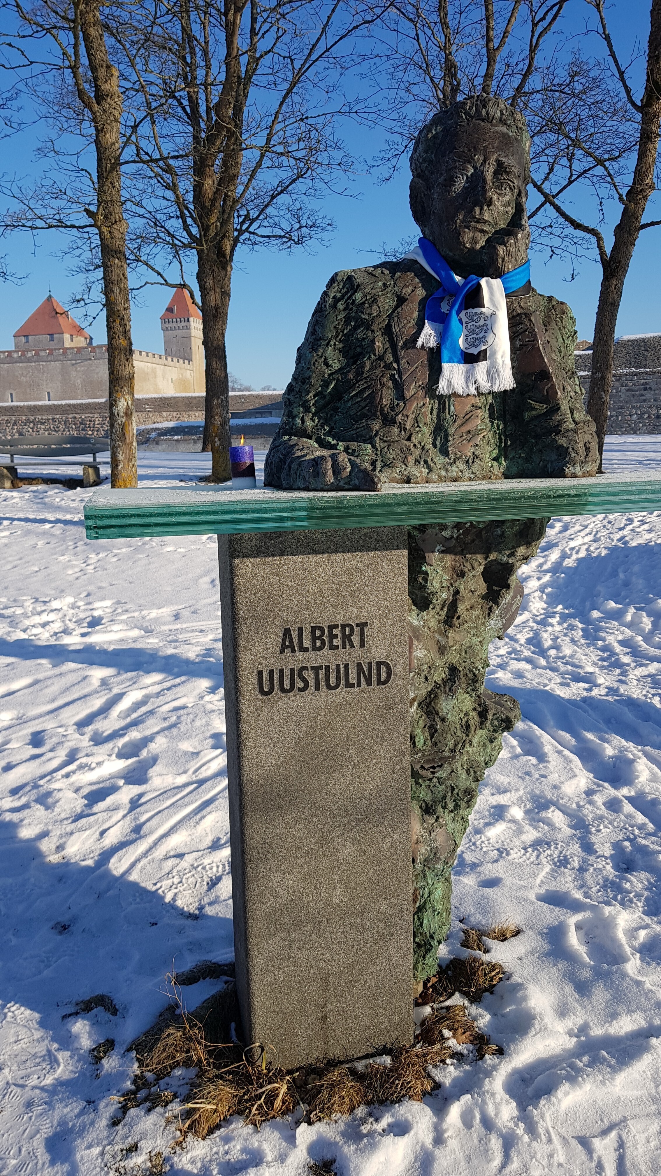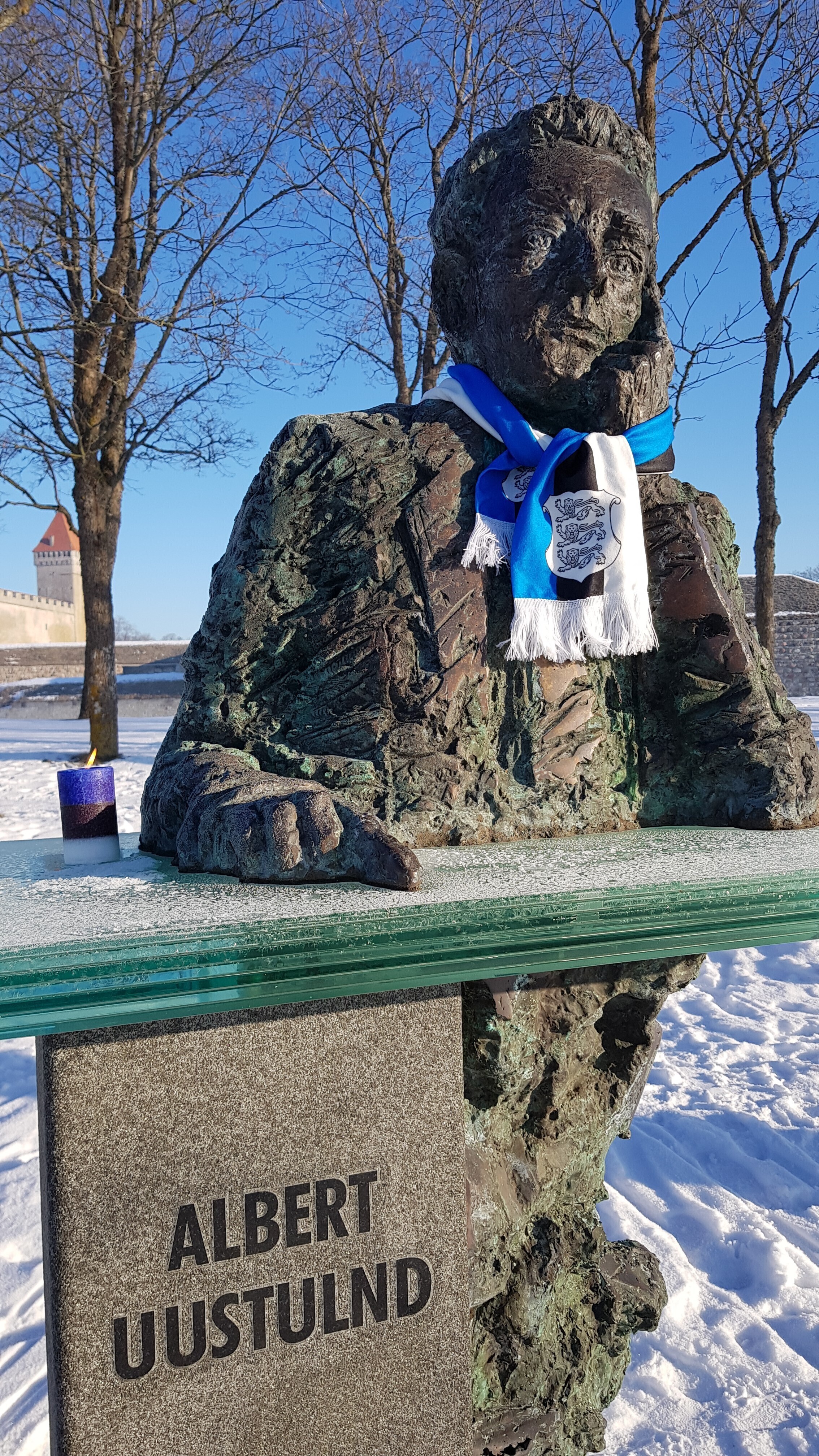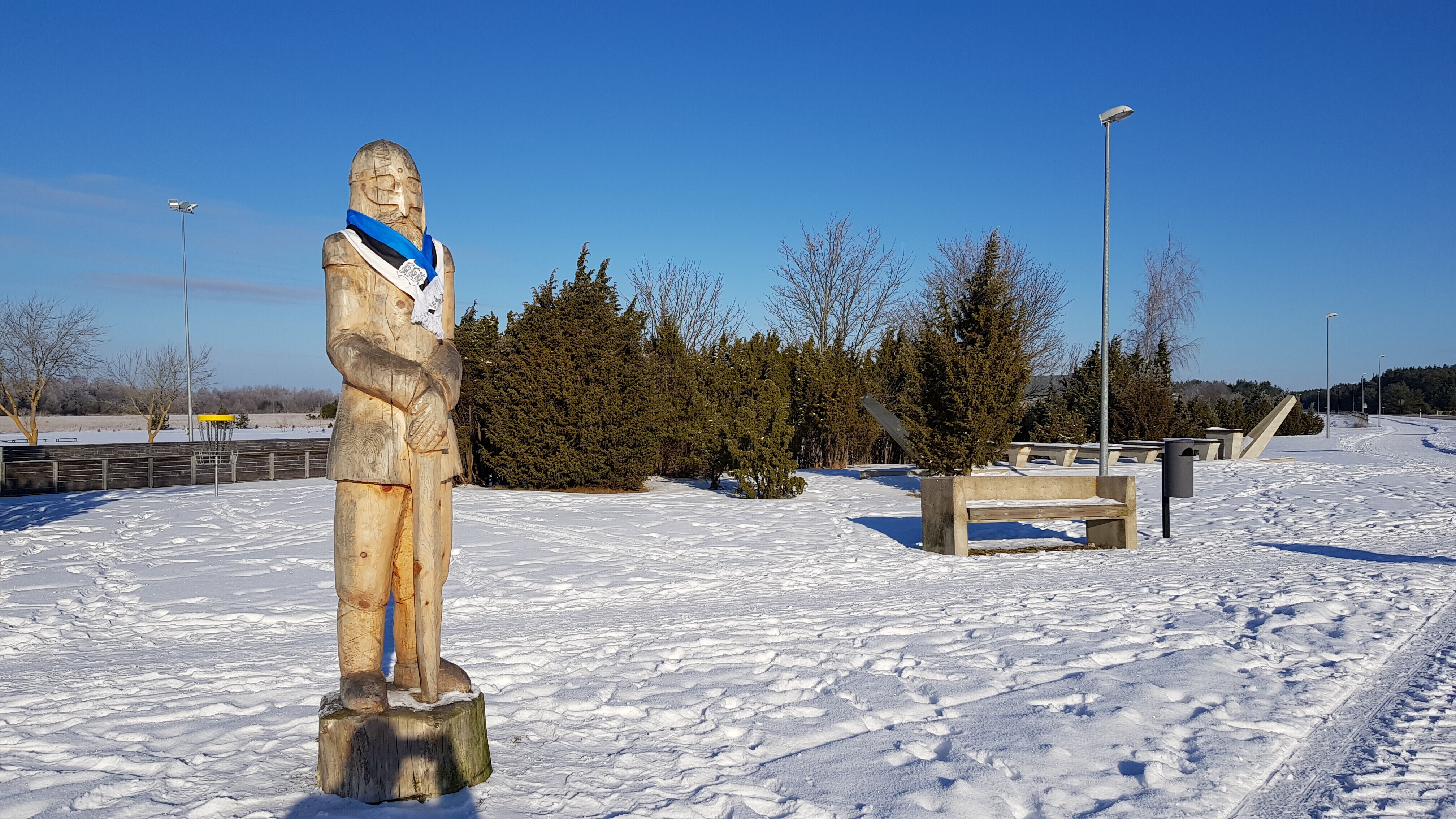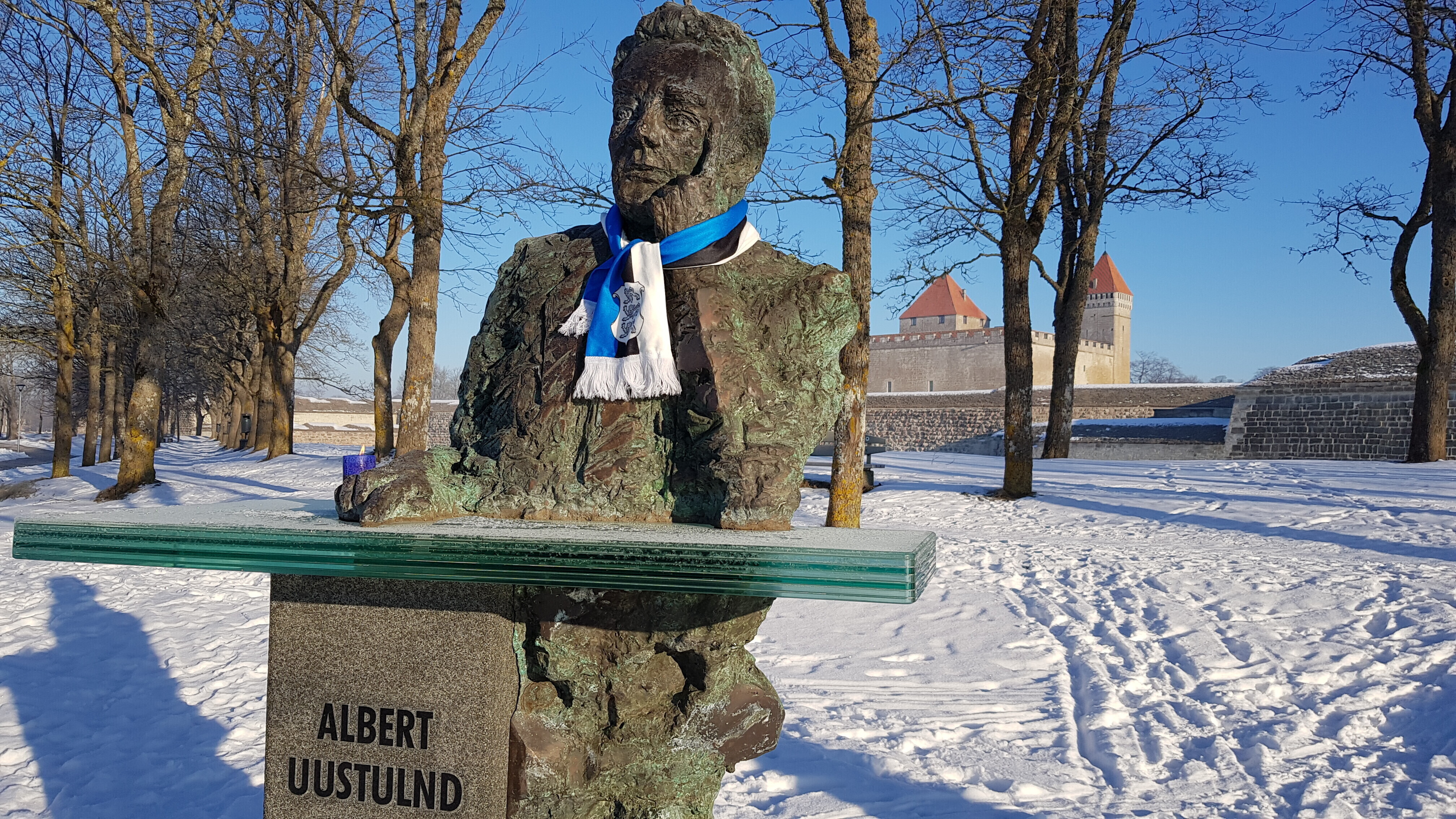 В четверг, 22 февраля, более 20 скульптур по всей Эстонии украсят сине-черно-белыми шарфами в честь 100-летия Эстонской Республики. Смотрите фотографии некоторых из них.