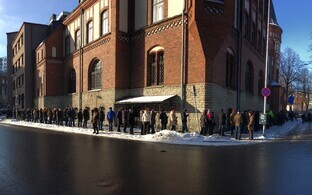 Желающим приобрести ценные сувениры пришлось померзнуть. Многие пришли еще задолго до открытия, а очередь растянулась на десятки метров.