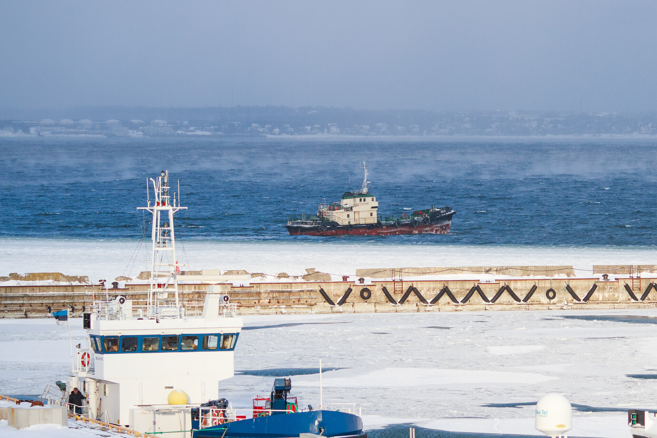 К настоящему времени практически весь Финский залив к востоку от линии Таллинн-Хельсинки покрыт льдом, и всем судам нужна помощь ледокола.