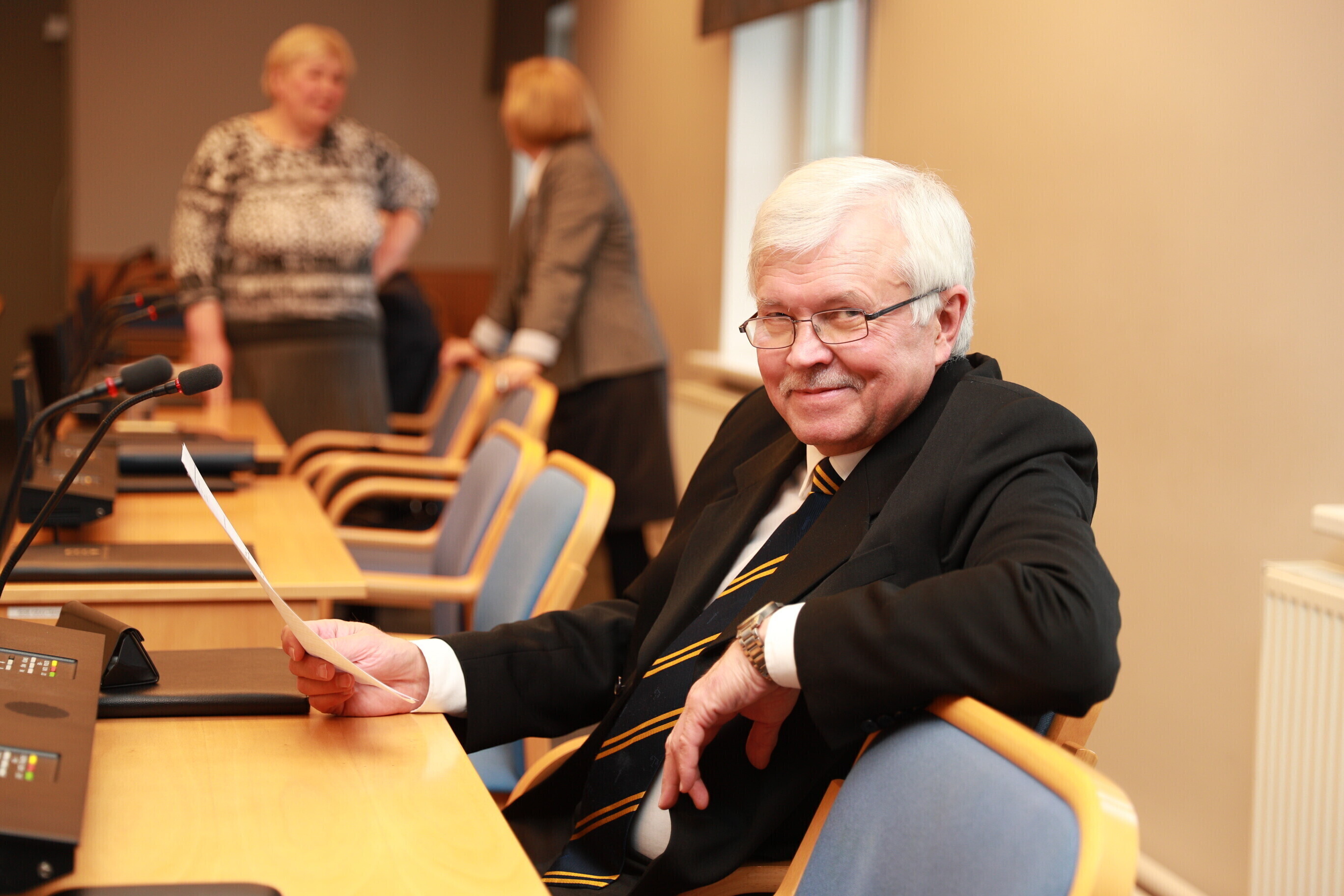 В последний раз бывший лидер Центристской партии, баллотировавшийся на выборах в списке Союз Сависаара и "Деловой Таллинн", присутствовал на заседании в декабре.