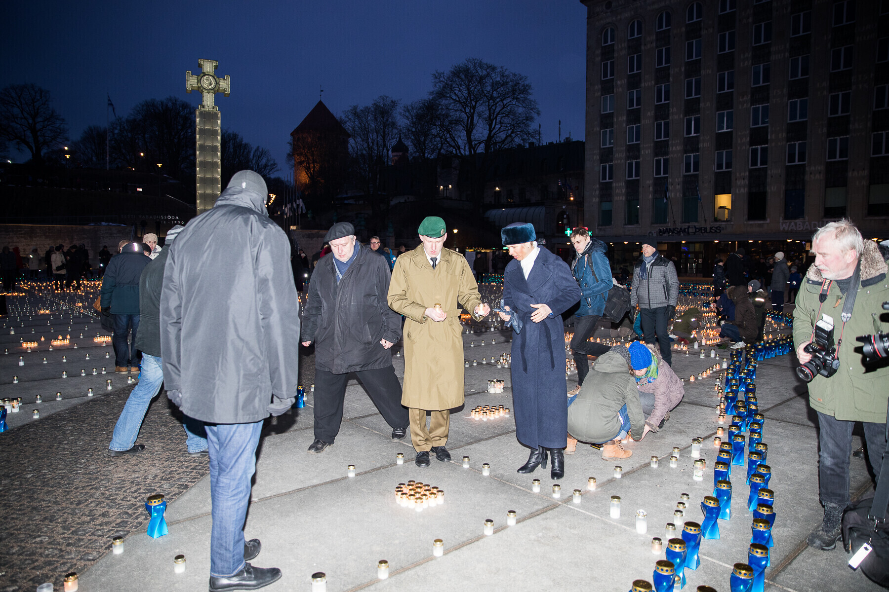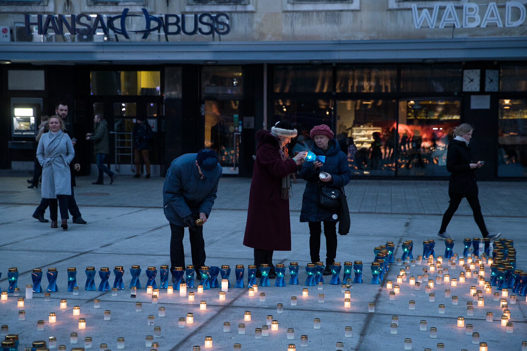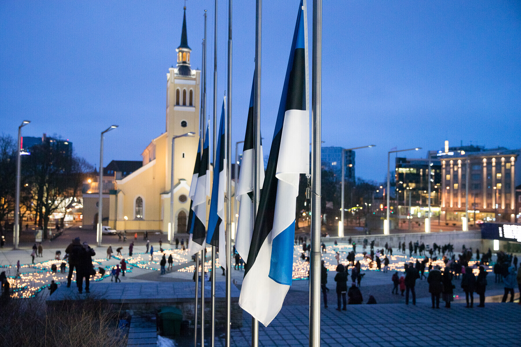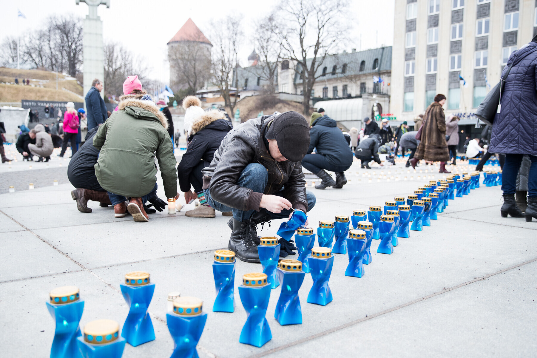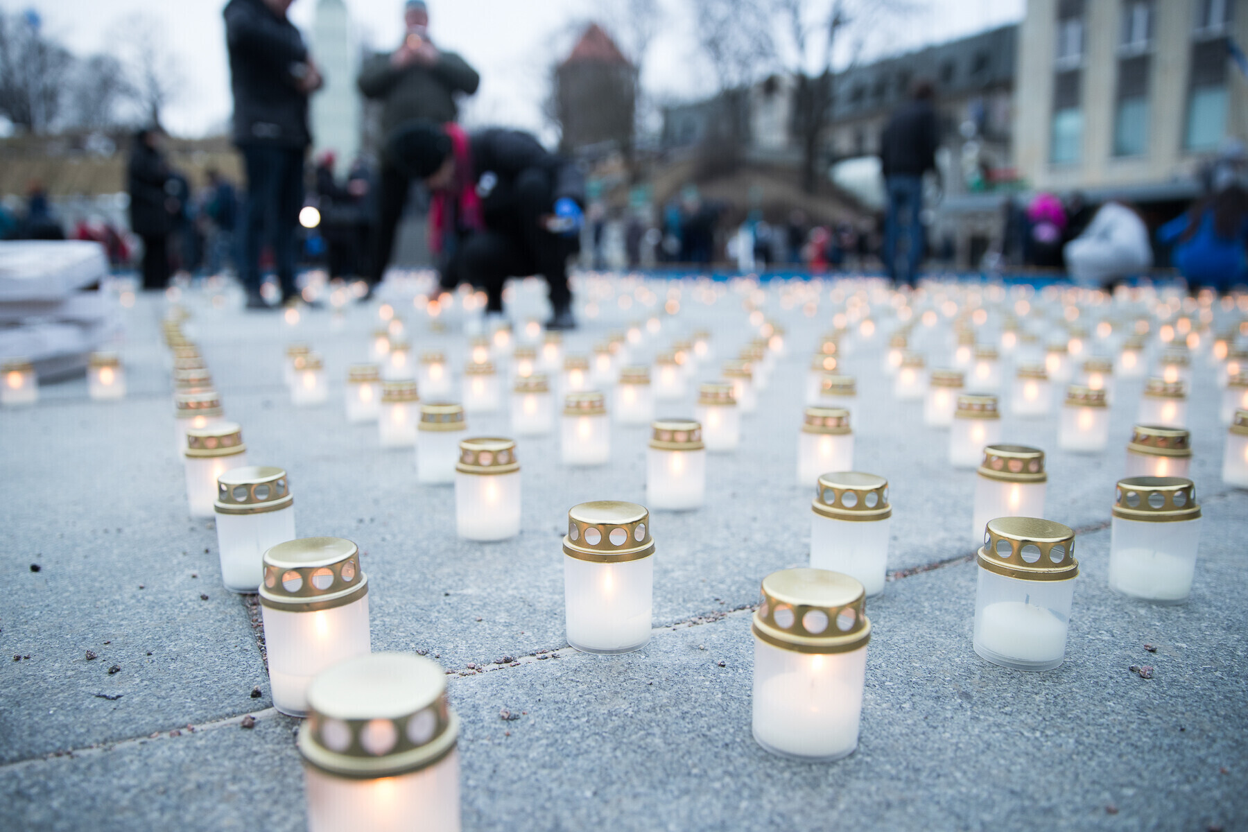 В 18:00 на площади Вабадузе в центре Таллинна зажгли тысячи свечей, которые будут расставлены по географическому контуру Эстонии. Свечи также зажгли в Нарве, Тарту, Пярну и многих других местах по всей стране.