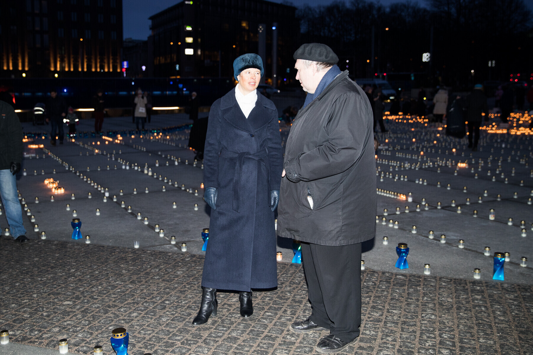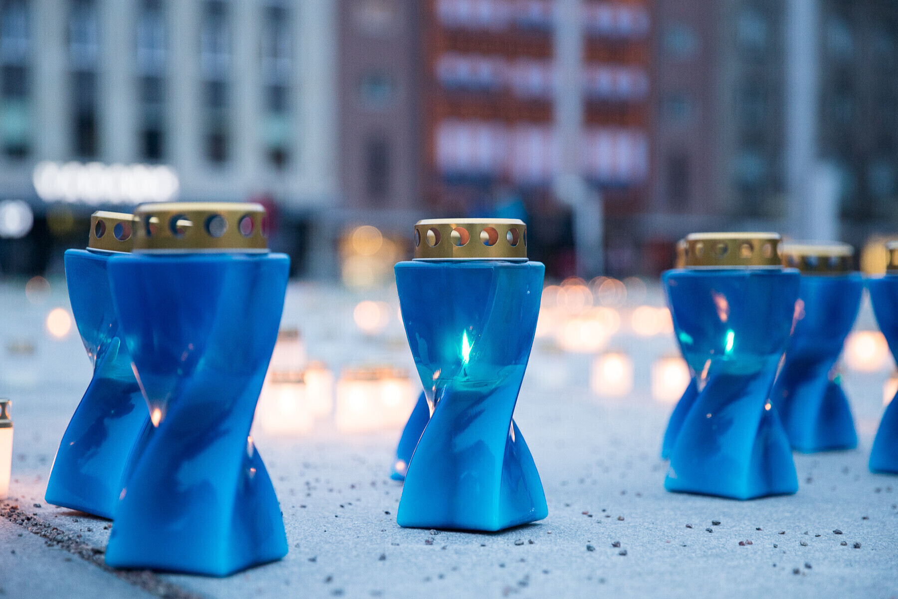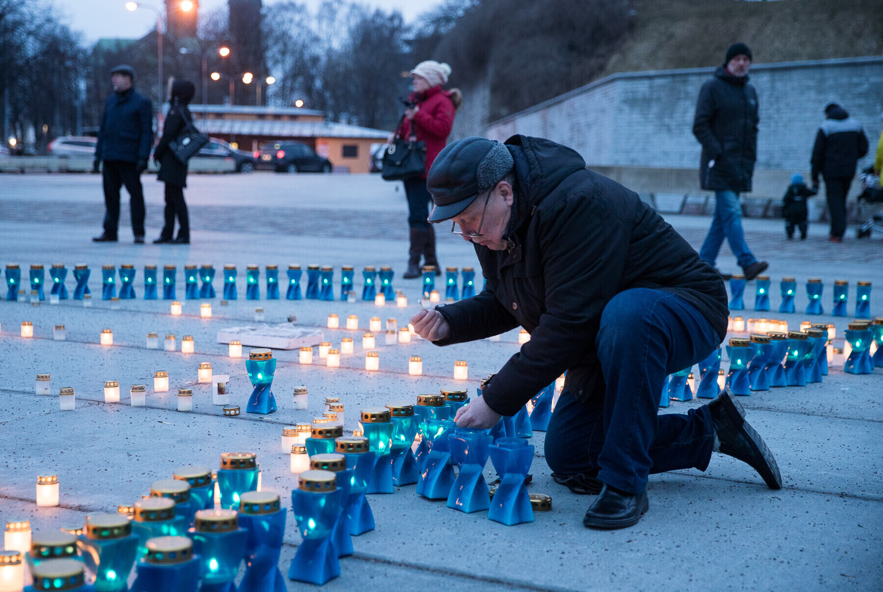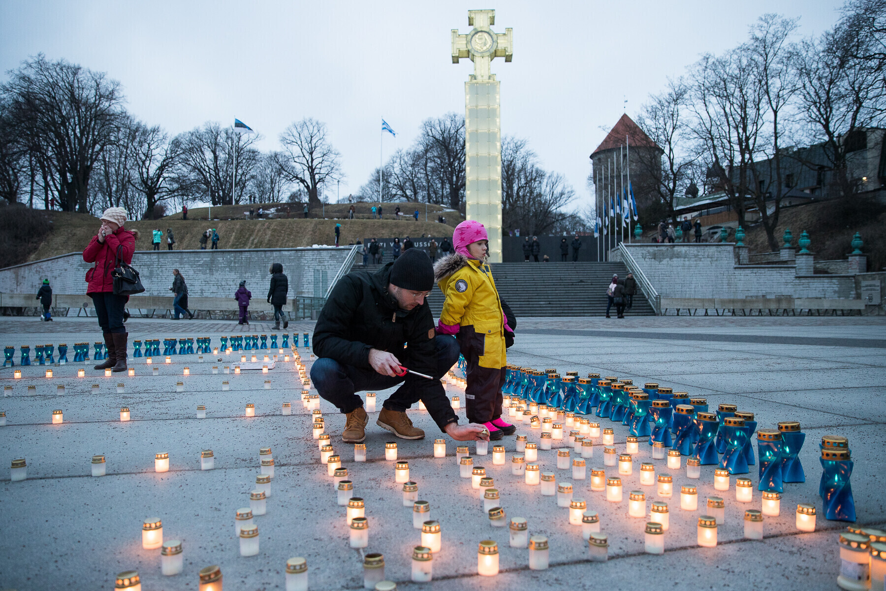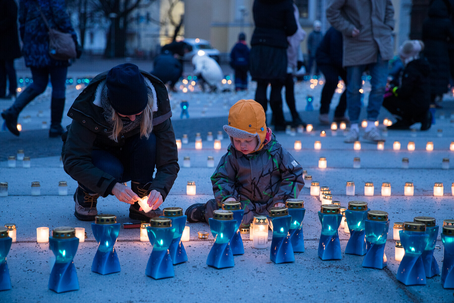 В 18:00 на площади Вабадузе в центре Таллинна зажгли тысячи свечей, которые будут расставлены по географическому контуру Эстонии. Свечи также зажгли в Нарве, Тарту, Пярну и многих других местах по всей стране.
