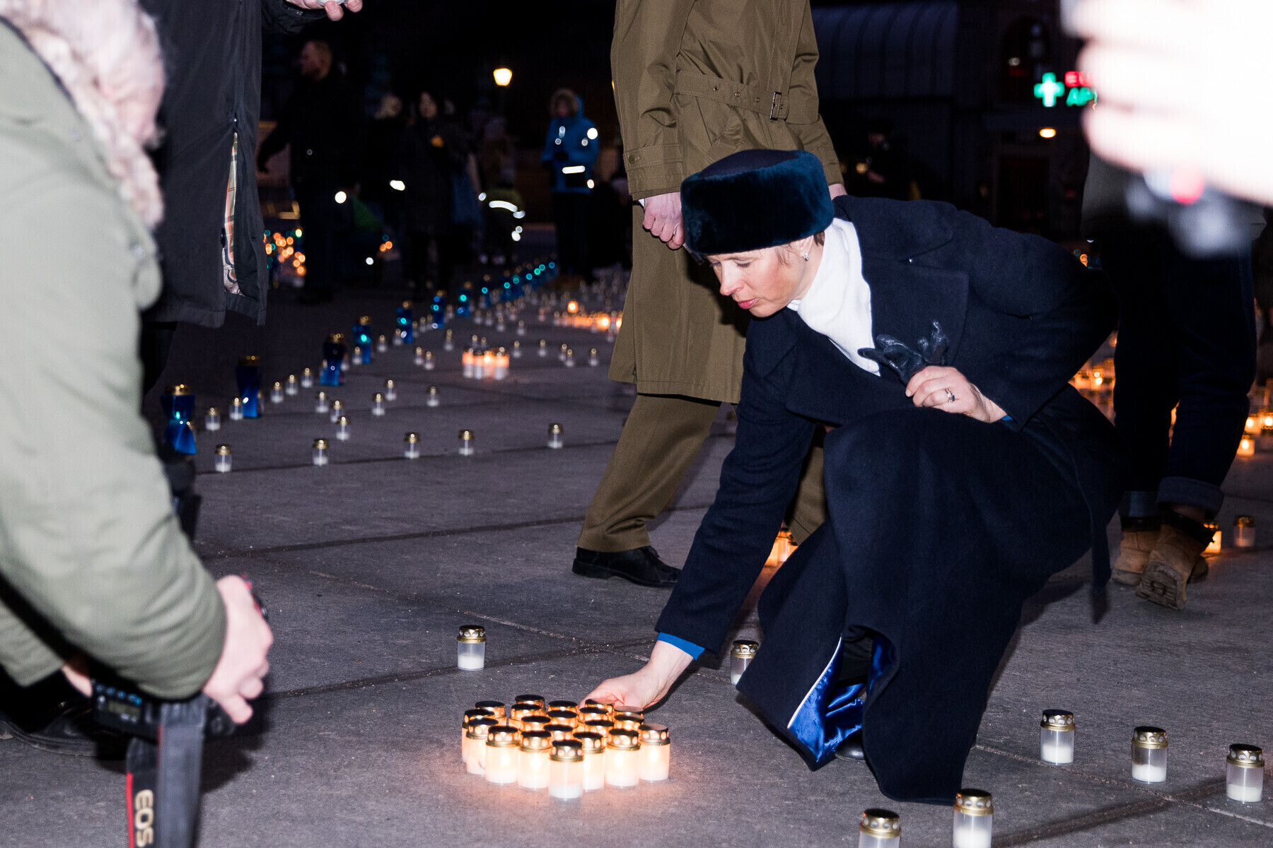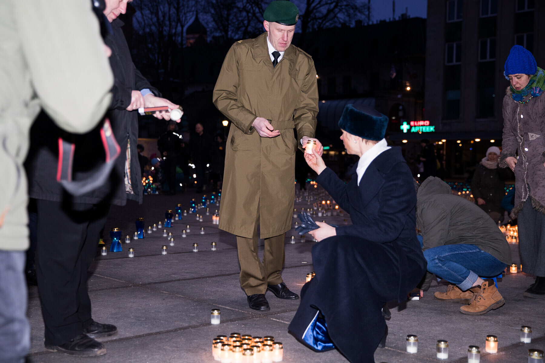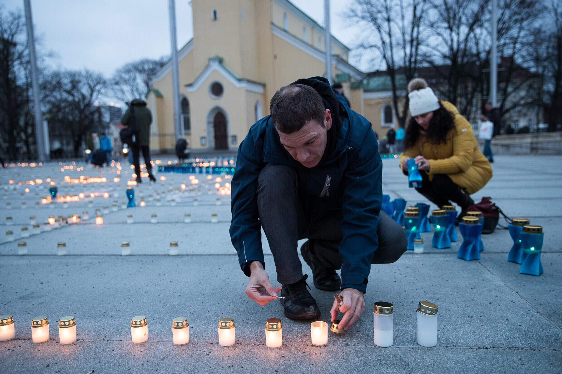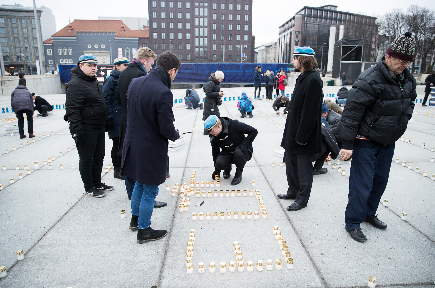 В 18:00 на площади Вабадузе в центре Таллинна зажгли тысячи свечей, которые будут расставлены по географическому контуру Эстонии. Свечи также зажгли в Нарве, Тарту, Пярну и многих других местах по всей стране.