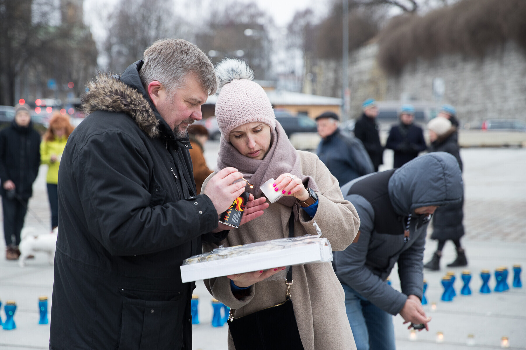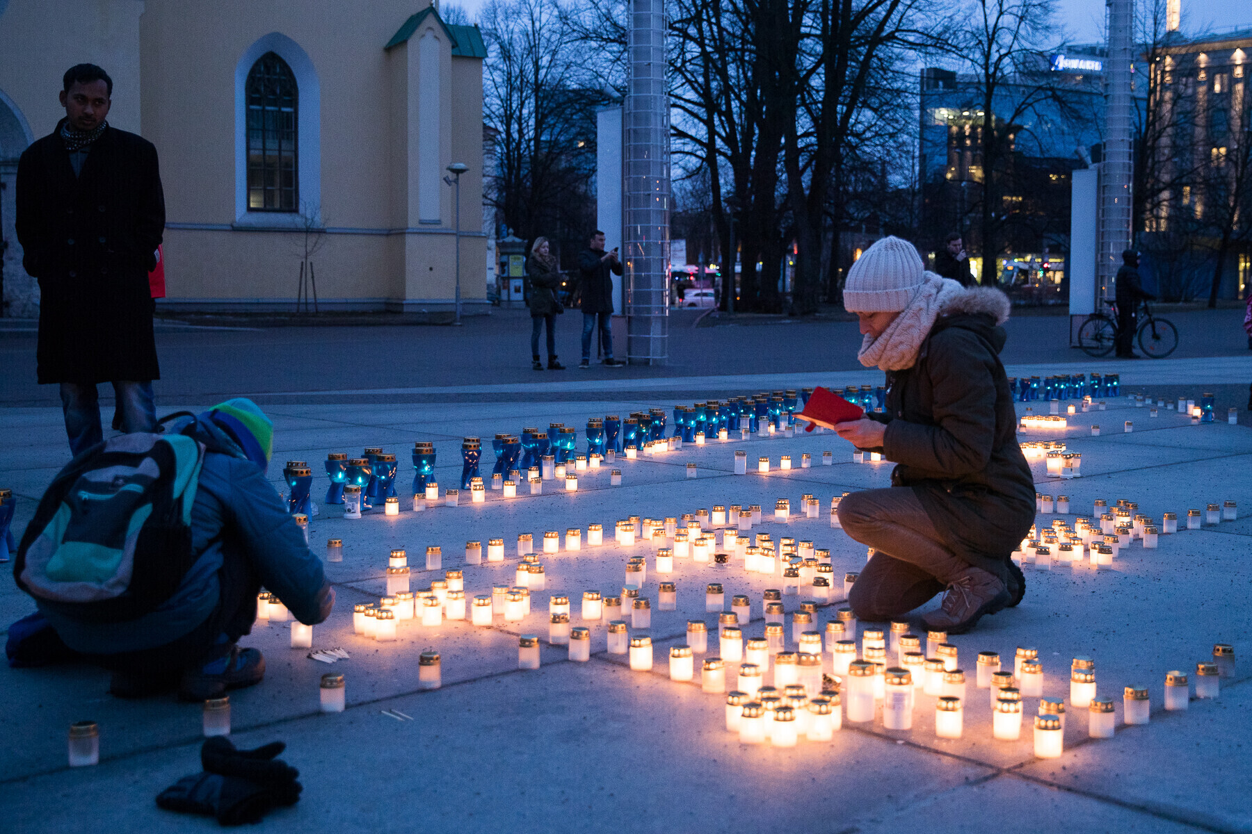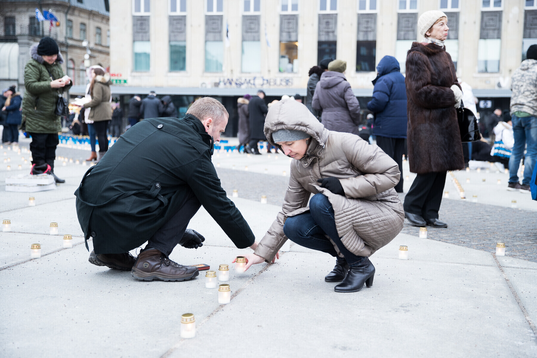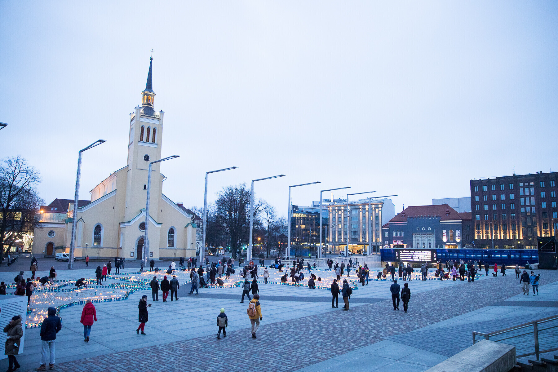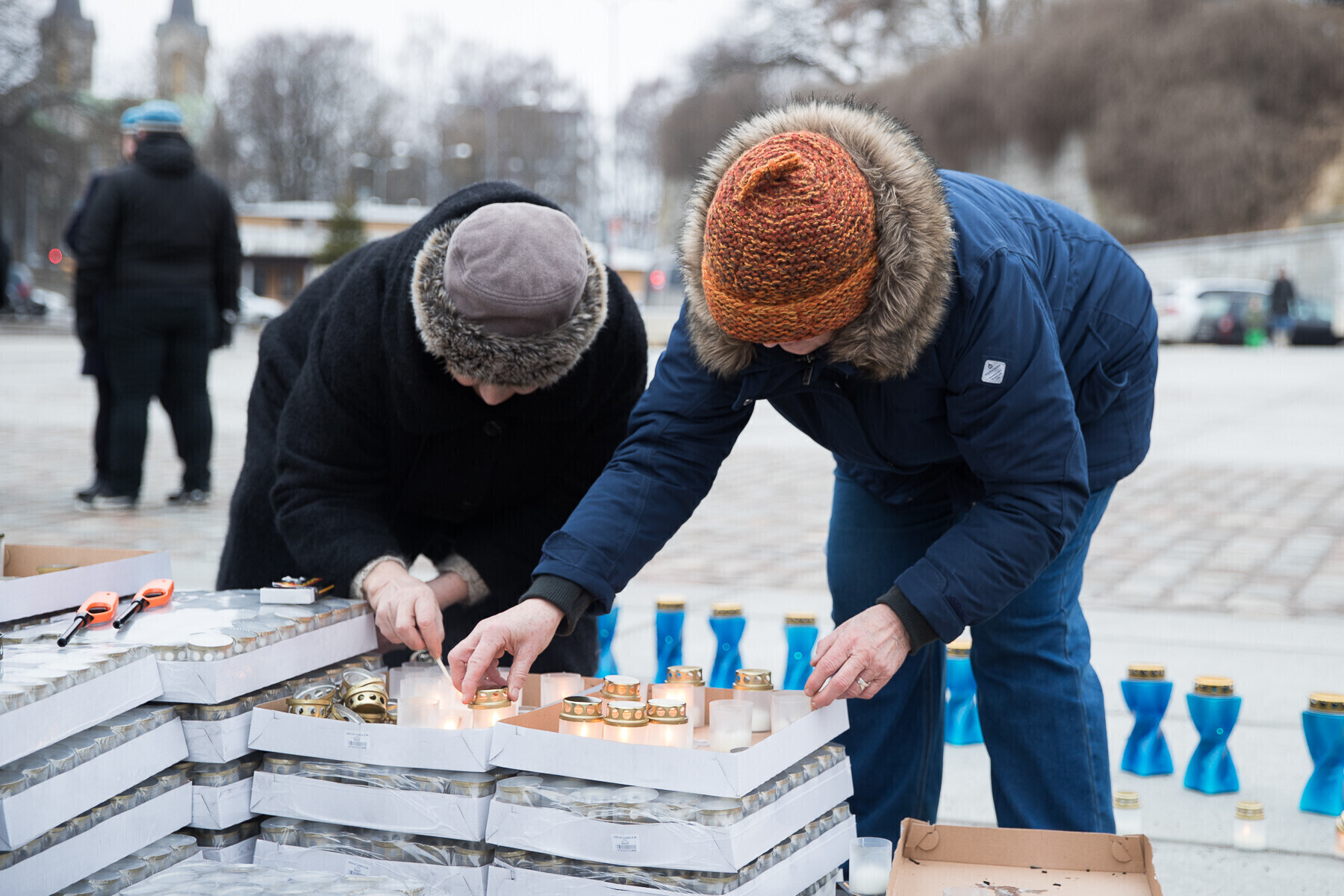 В 18:00 на площади Вабадузе в центре Таллинна зажгли тысячи свечей, которые будут расставлены по географическому контуру Эстонии. Свечи также зажгли в Нарве, Тарту, Пярну и многих других местах по всей стране.