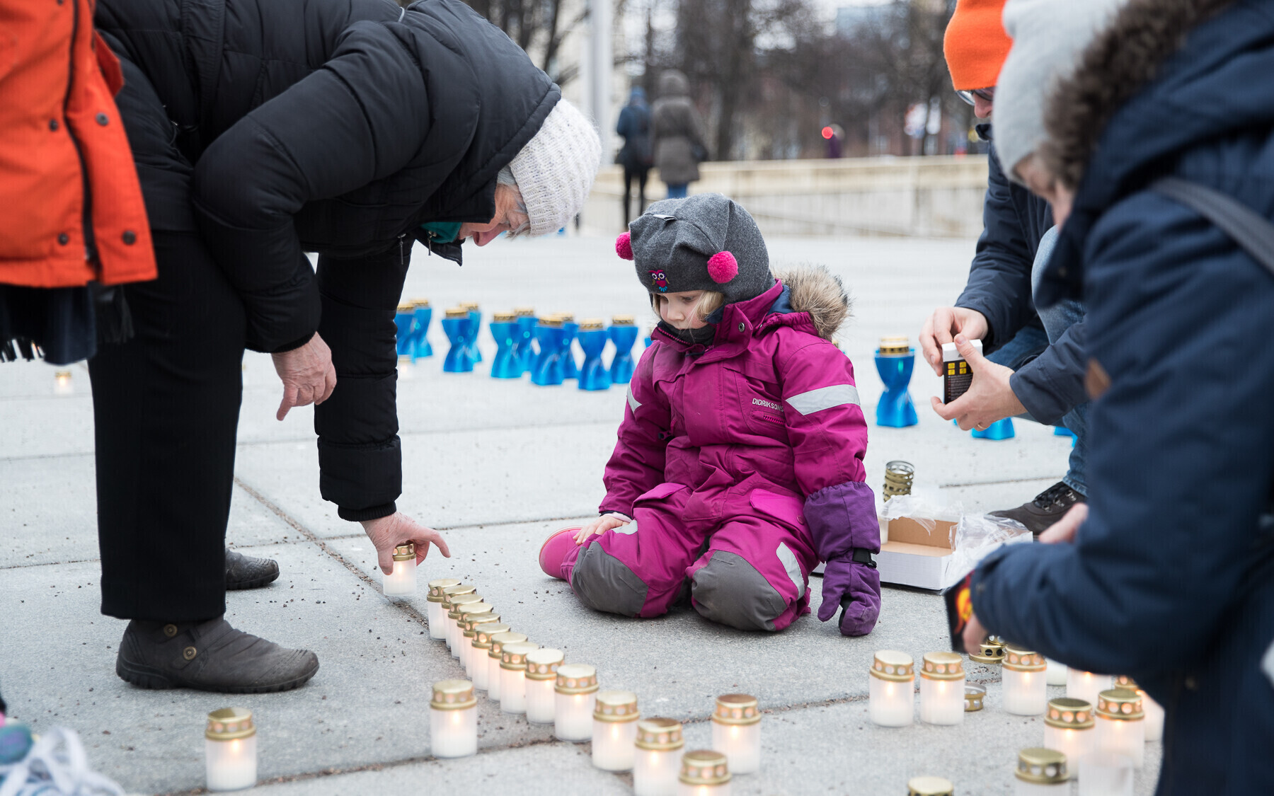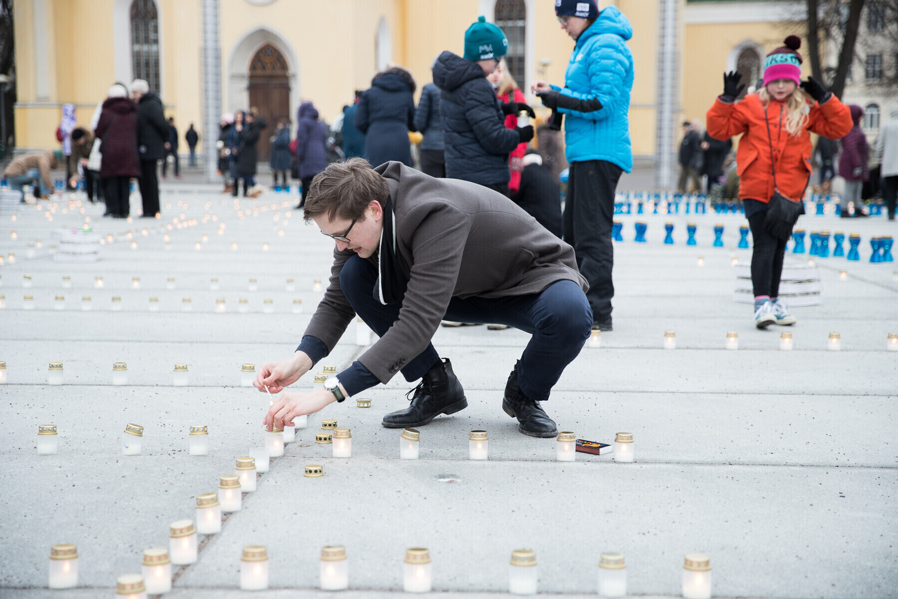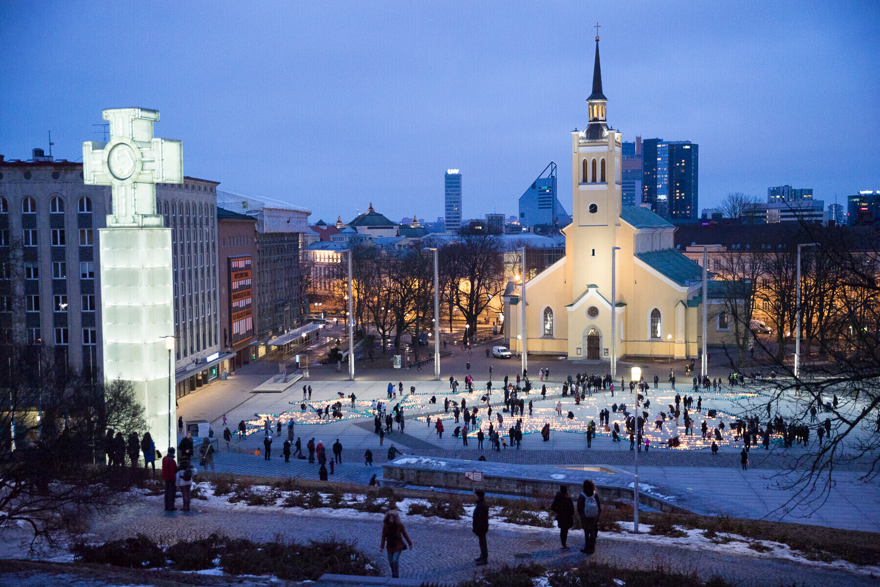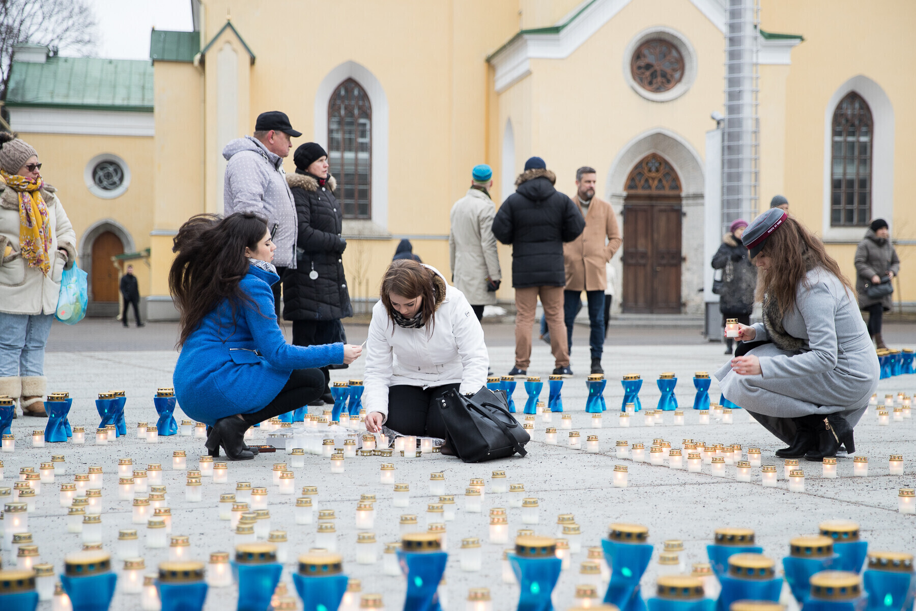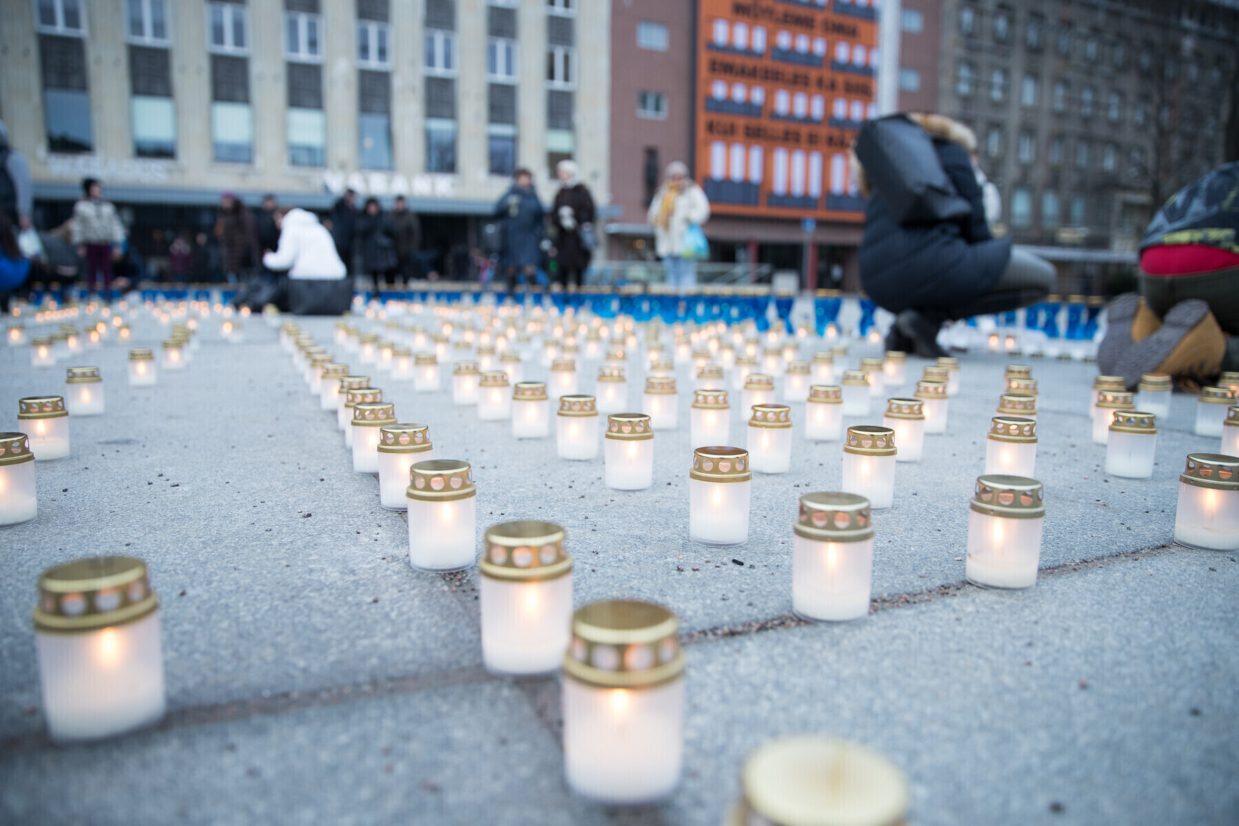 В 18:00 на площади Вабадузе в центре Таллинна зажгли тысячи свечей, которые будут расставлены по географическому контуру Эстонии. Свечи также зажгли в Нарве, Тарту, Пярну и многих других местах по всей стране.