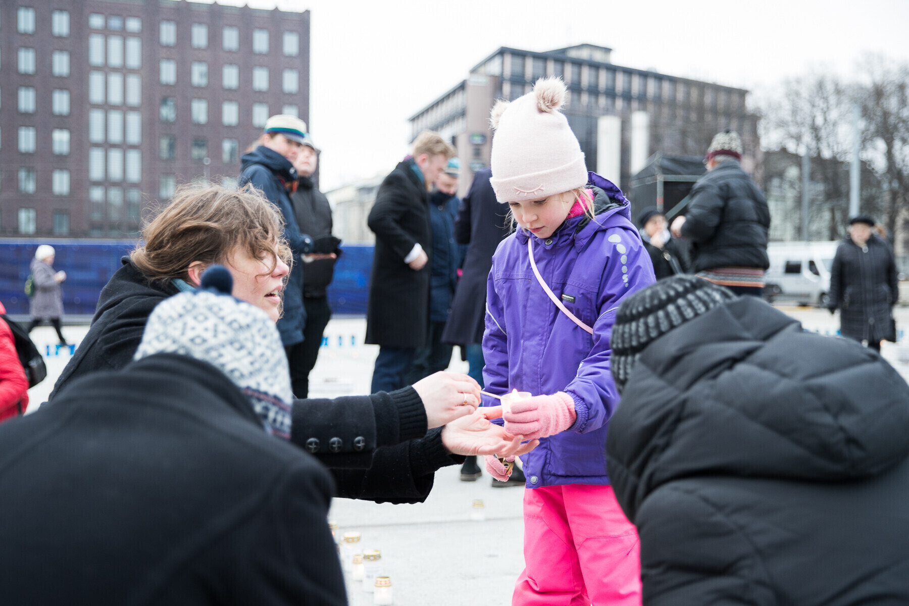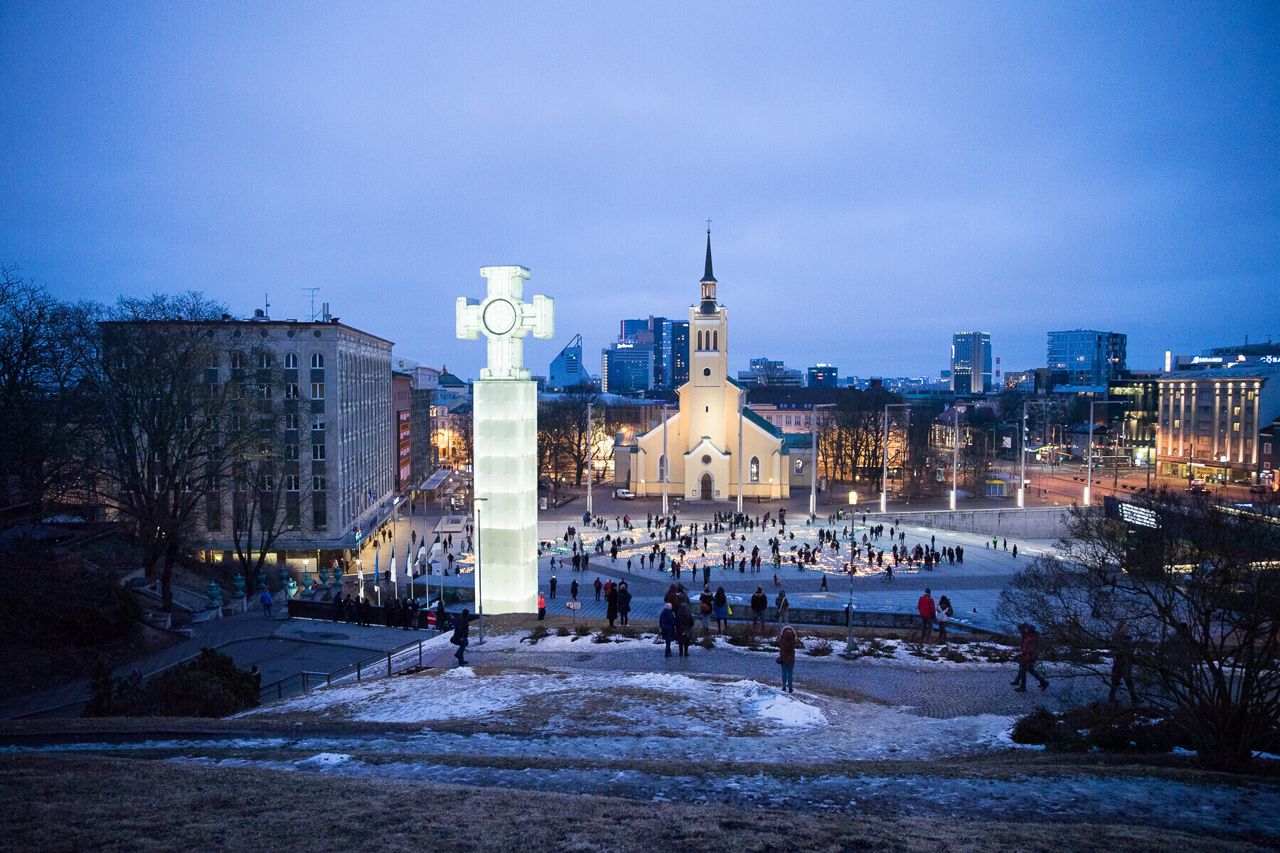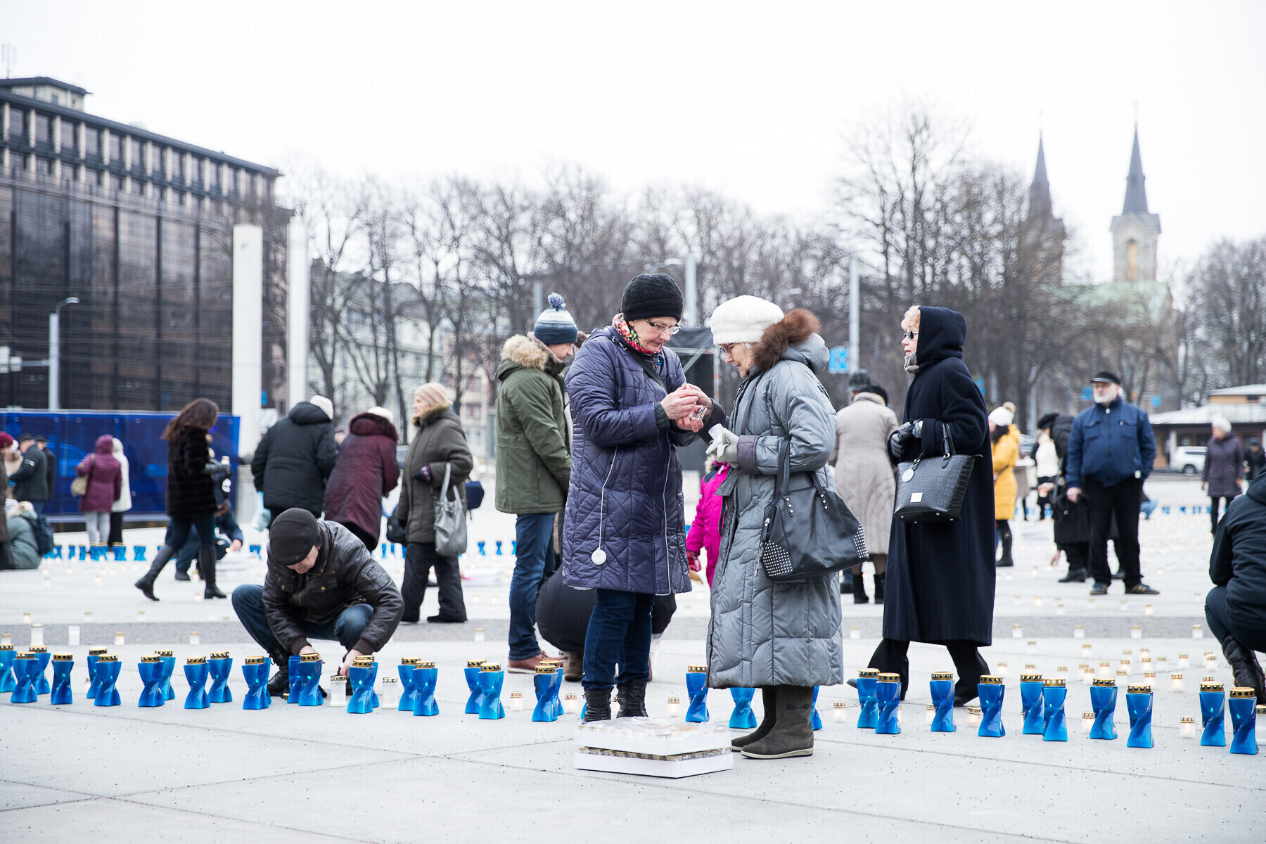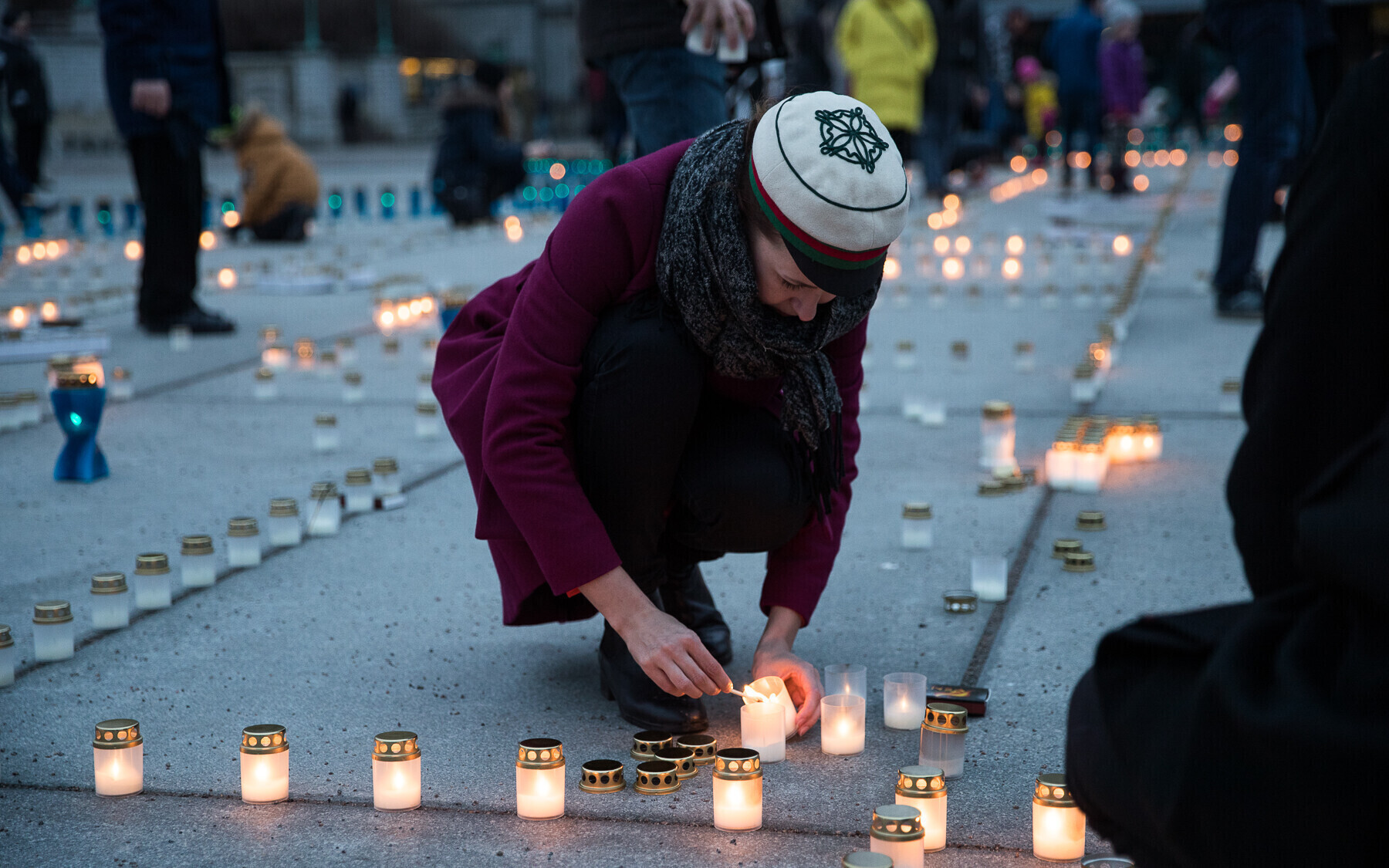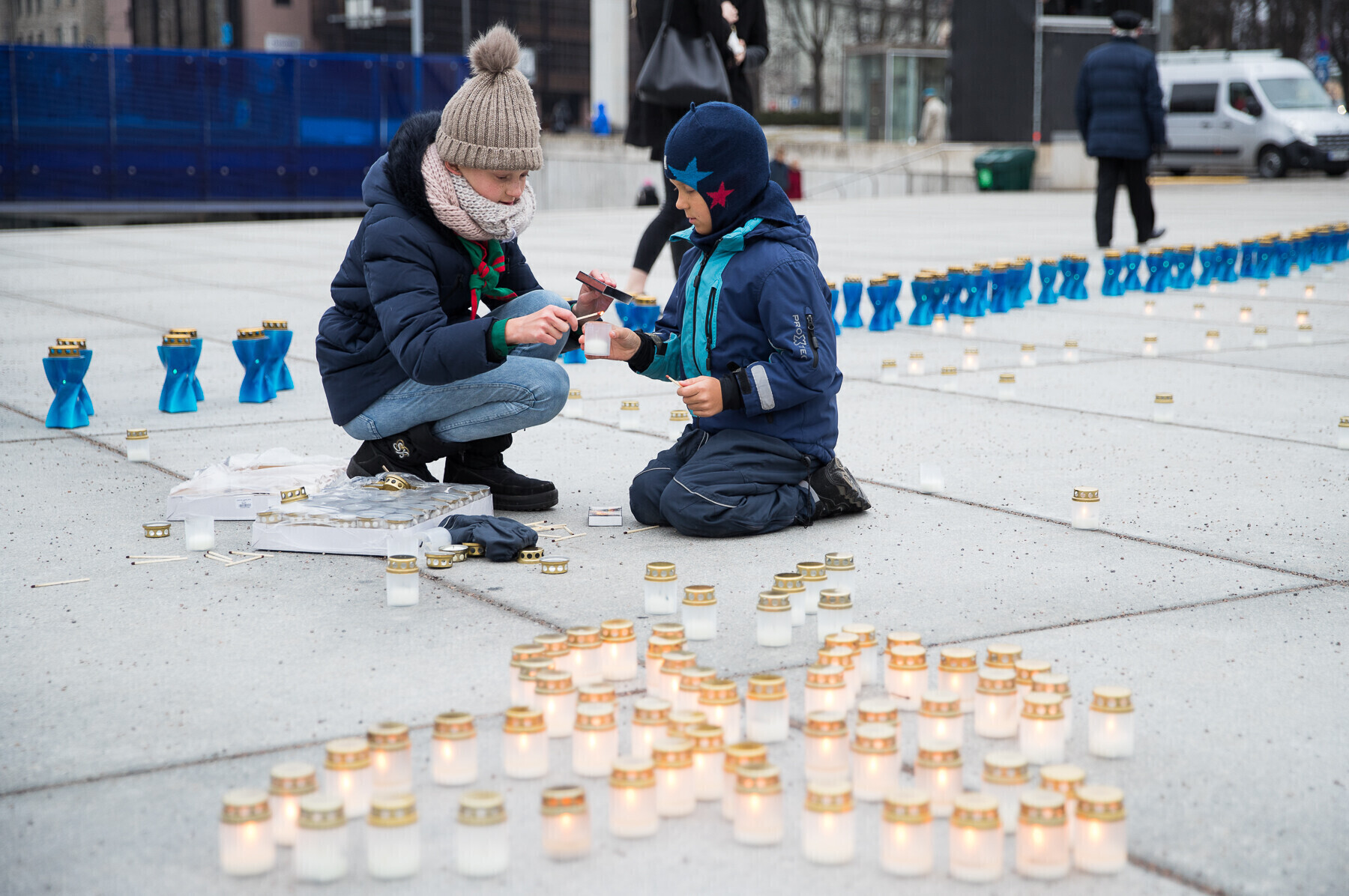 В 18:00 на площади Вабадузе в центре Таллинна зажгли тысячи свечей, которые будут расставлены по географическому контуру Эстонии. Свечи также зажгли в Нарве, Тарту, Пярну и многих других местах по всей стране.