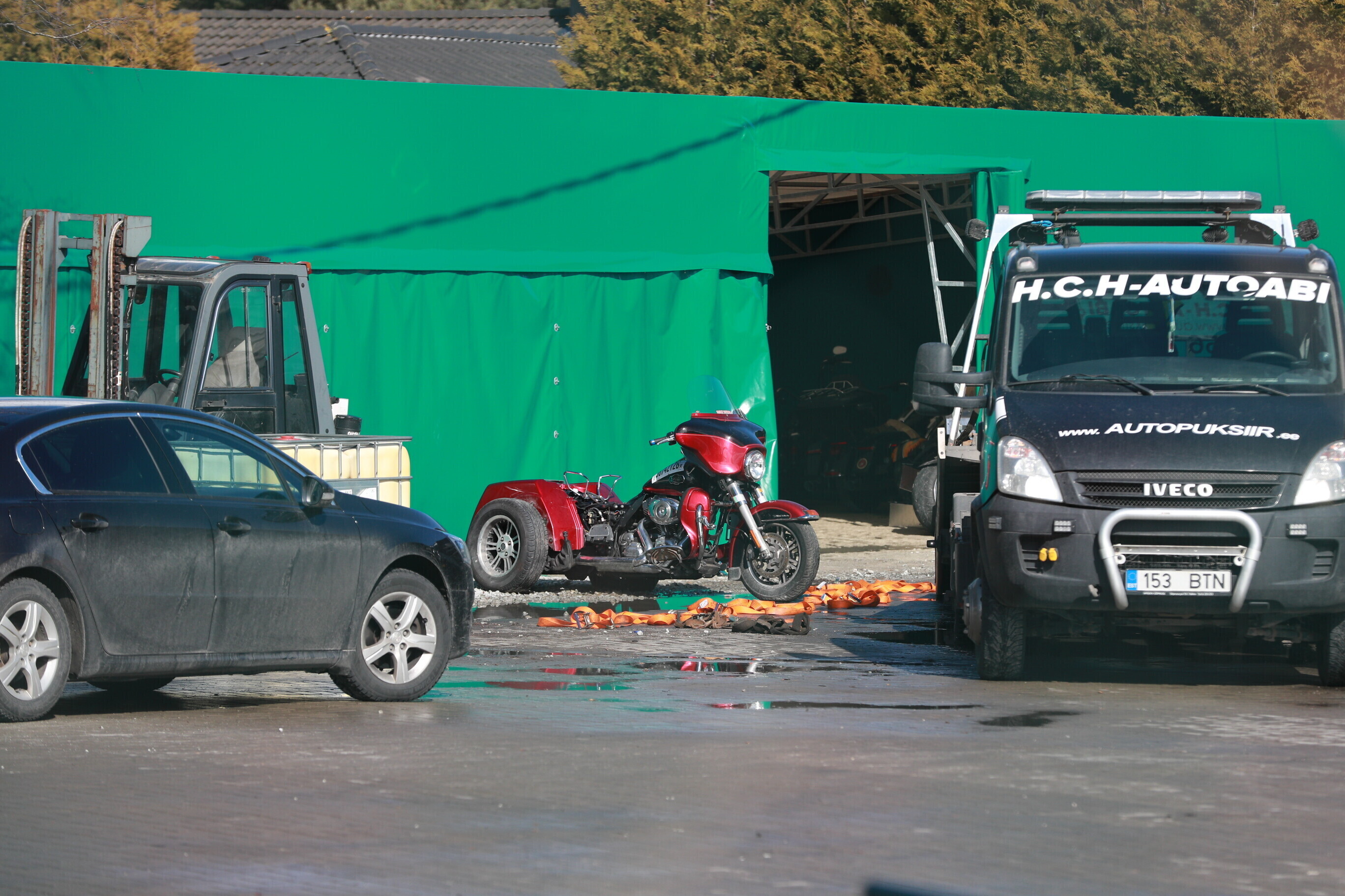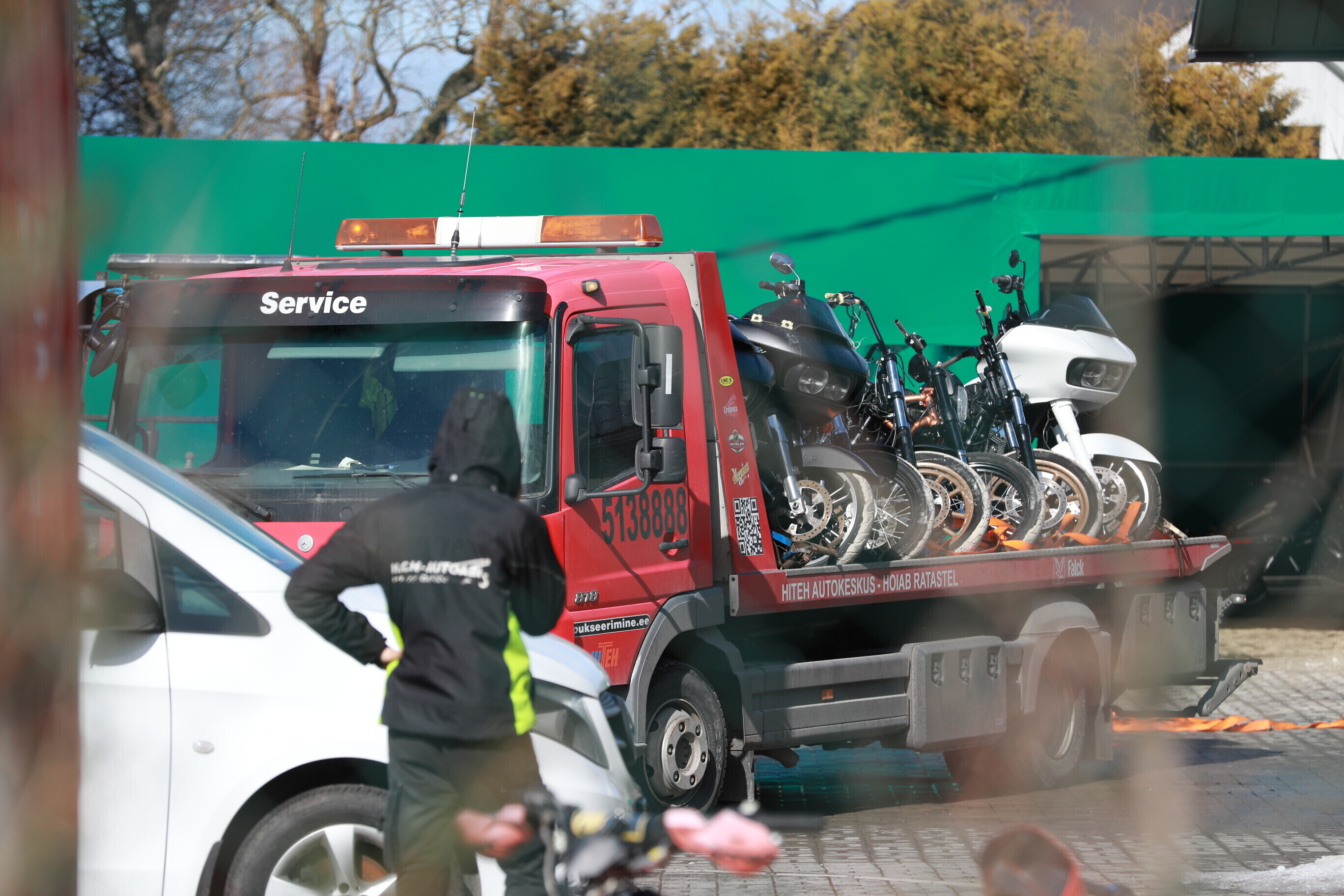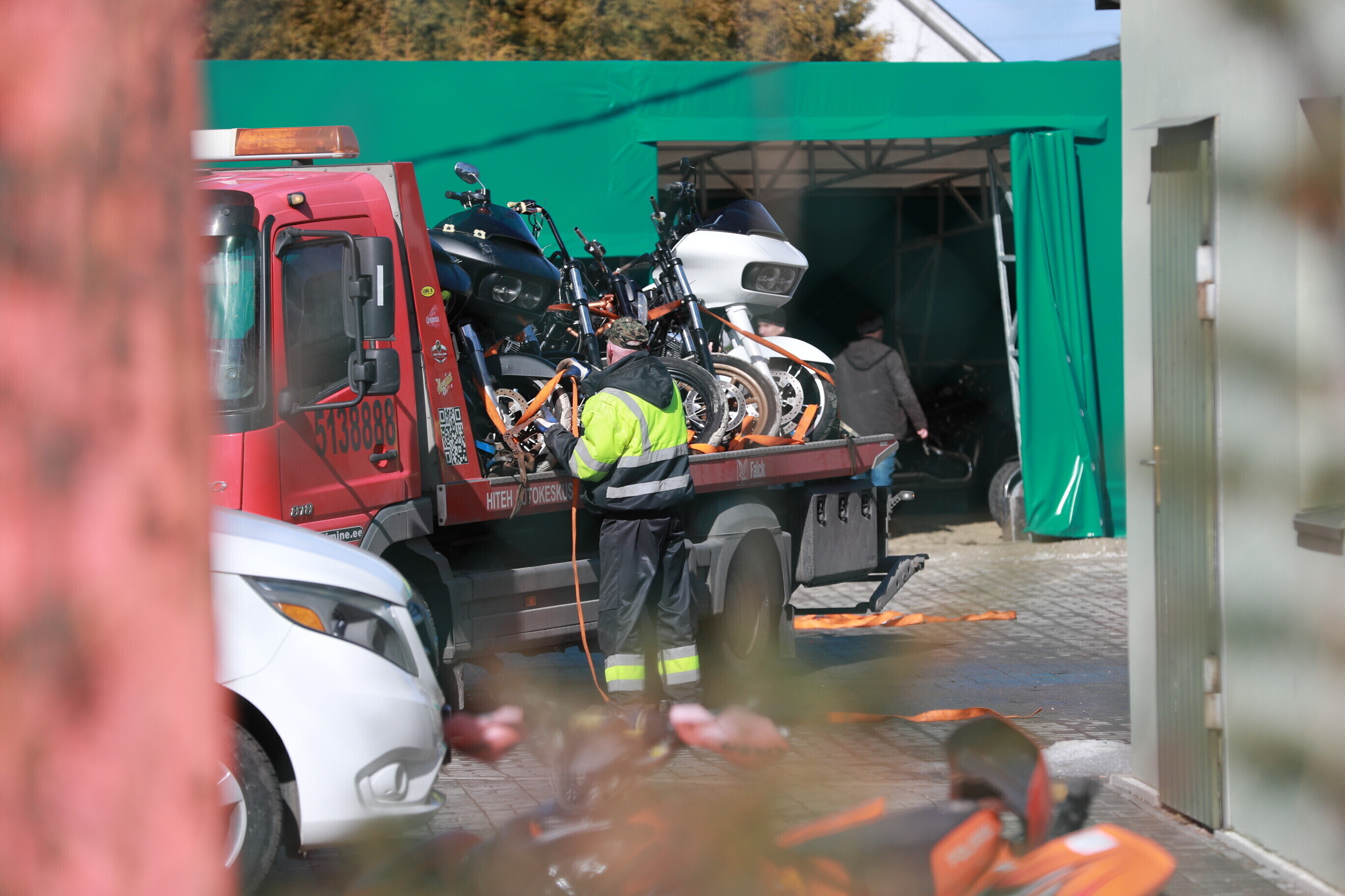 Центральная криминальная полиция в пятницу вывезла со двора дома подозреваемого в получении крупной взятки бывшего заместителя подразделения ремонта автобусов муниципальной фирмы Tallinna Linnatranspordi AS (TLT) Яануса Винка арестованные мотоциклы и автомобили.