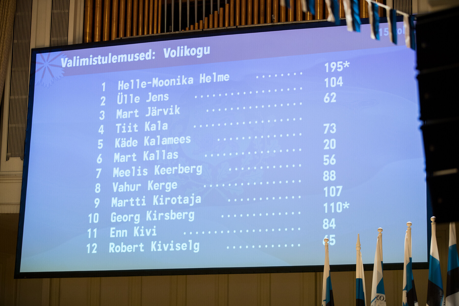 Мартина Хельме поддержали 365, Пыллуааса - 287, Мадисона - 257, Аарт - 233, Лууде - 35 делегатов.