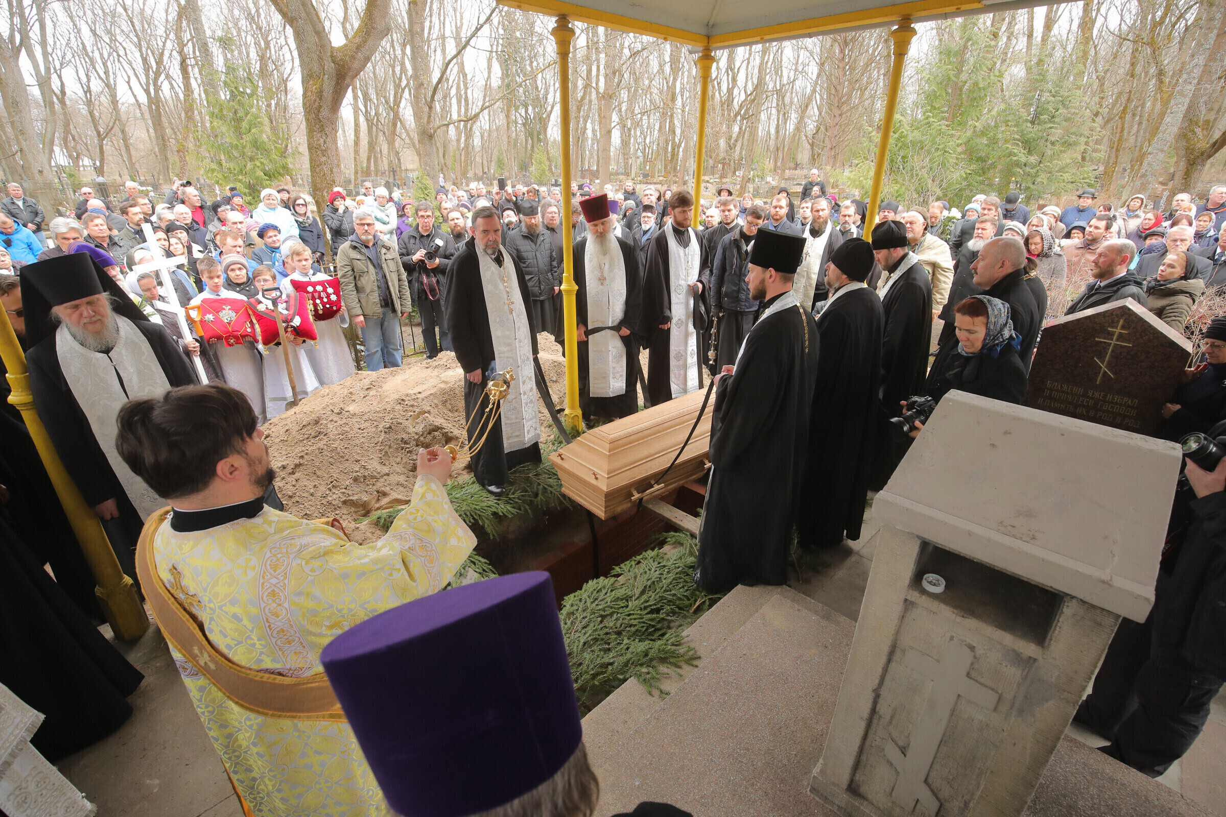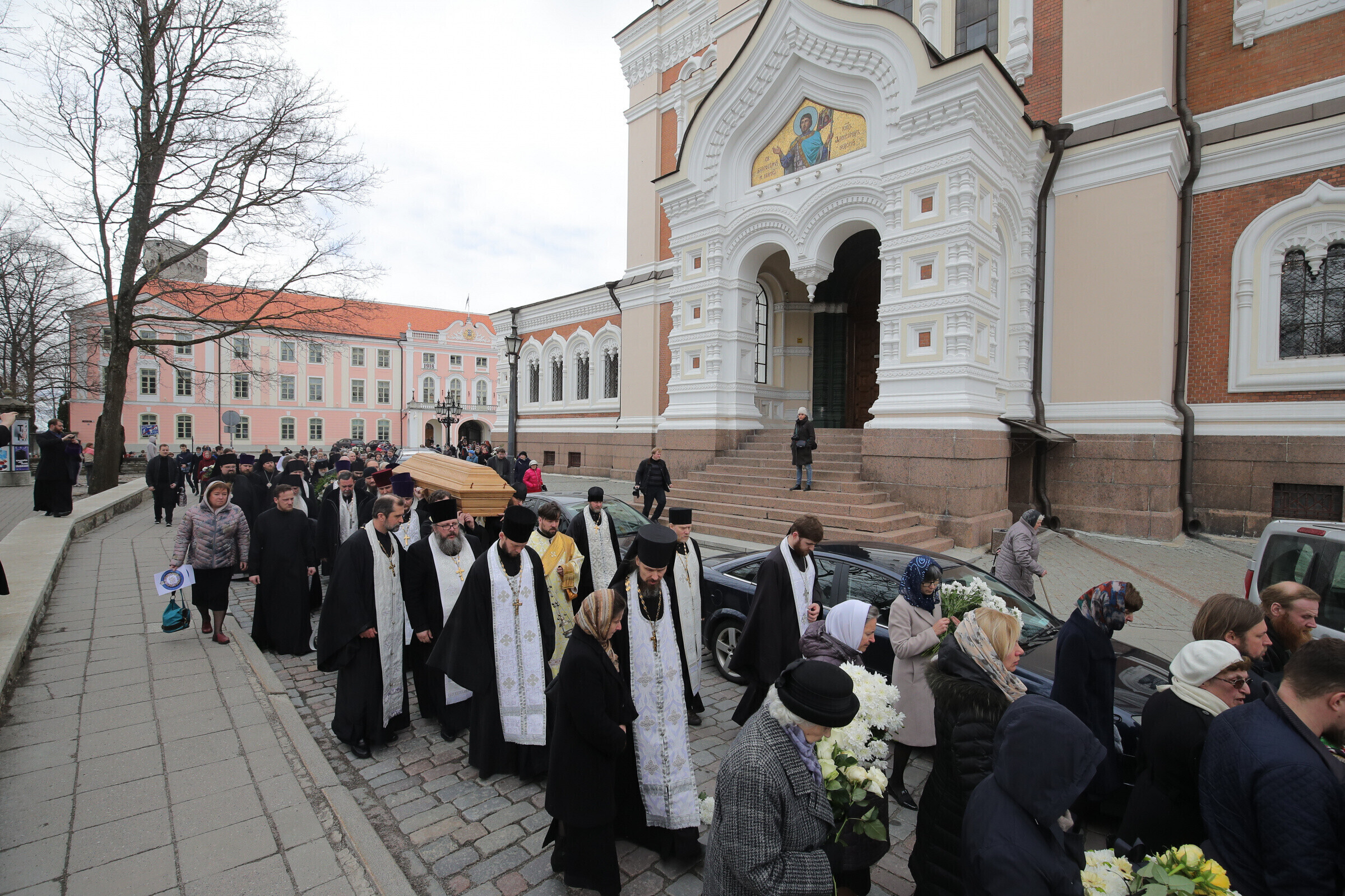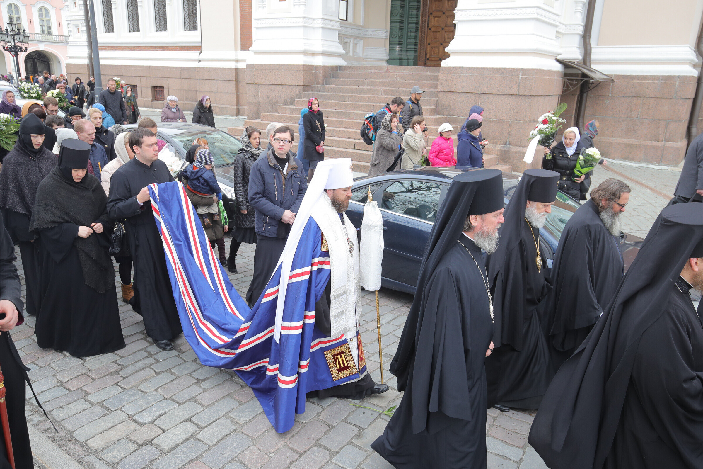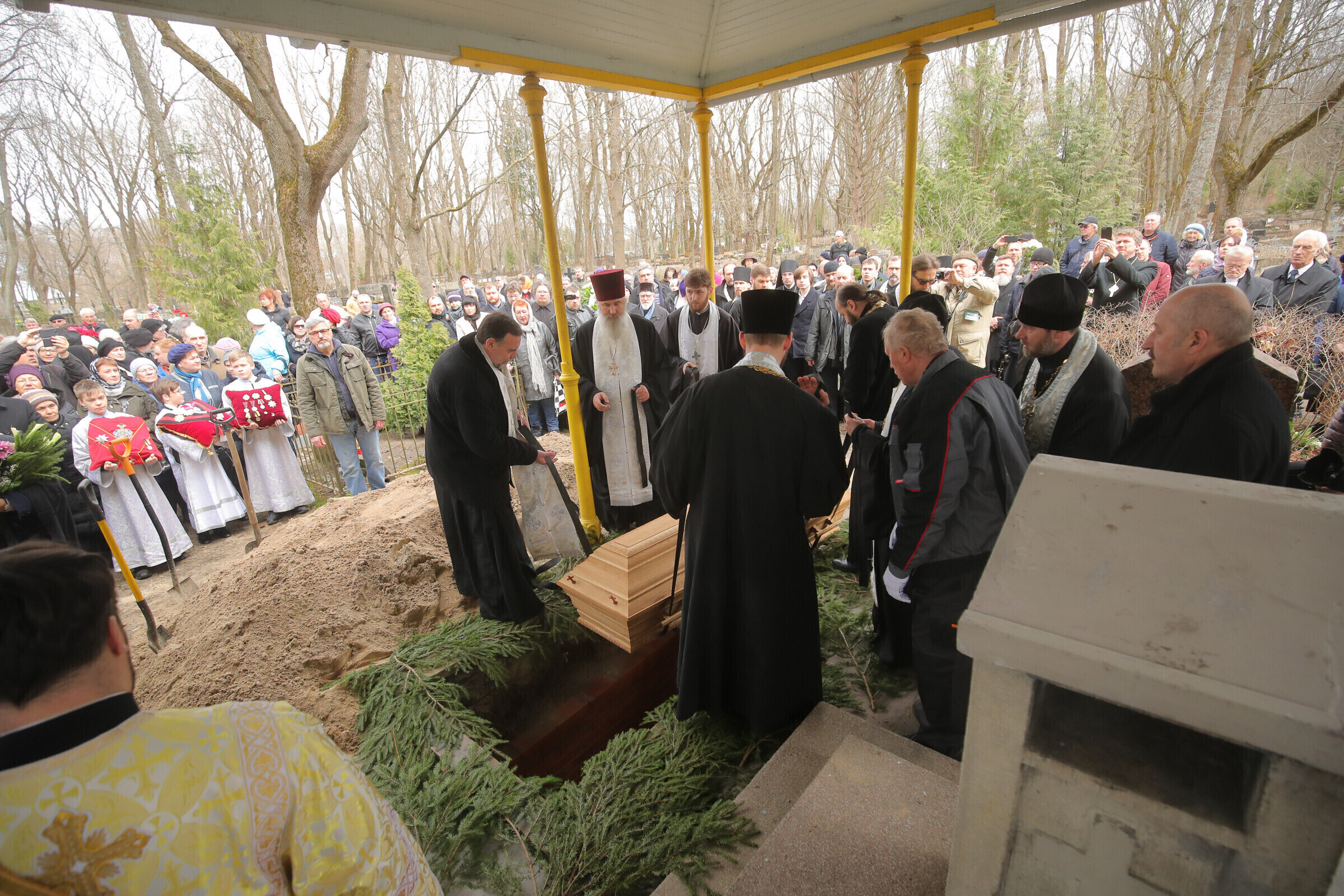 Отпевание возглавил прибывший из Москвы митрополит Волоколамский Иларион - второе лицо Русской православной церкви. Также представлены латвийская и финская православные церкви, прибыло духовенство из Печорского монастыря, присутствует и ректор Московской духовной академии архиепископ Верейский Евгений.