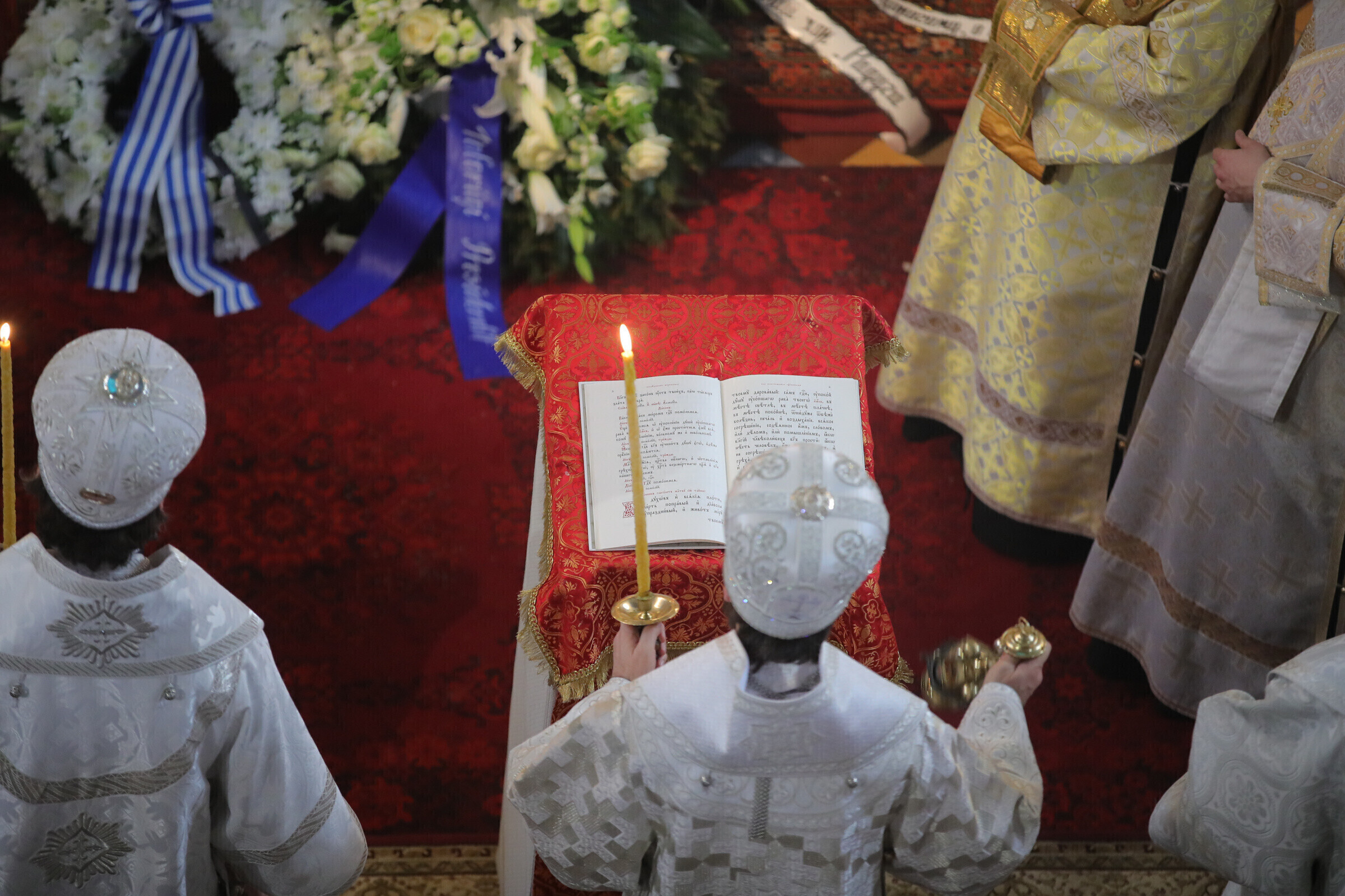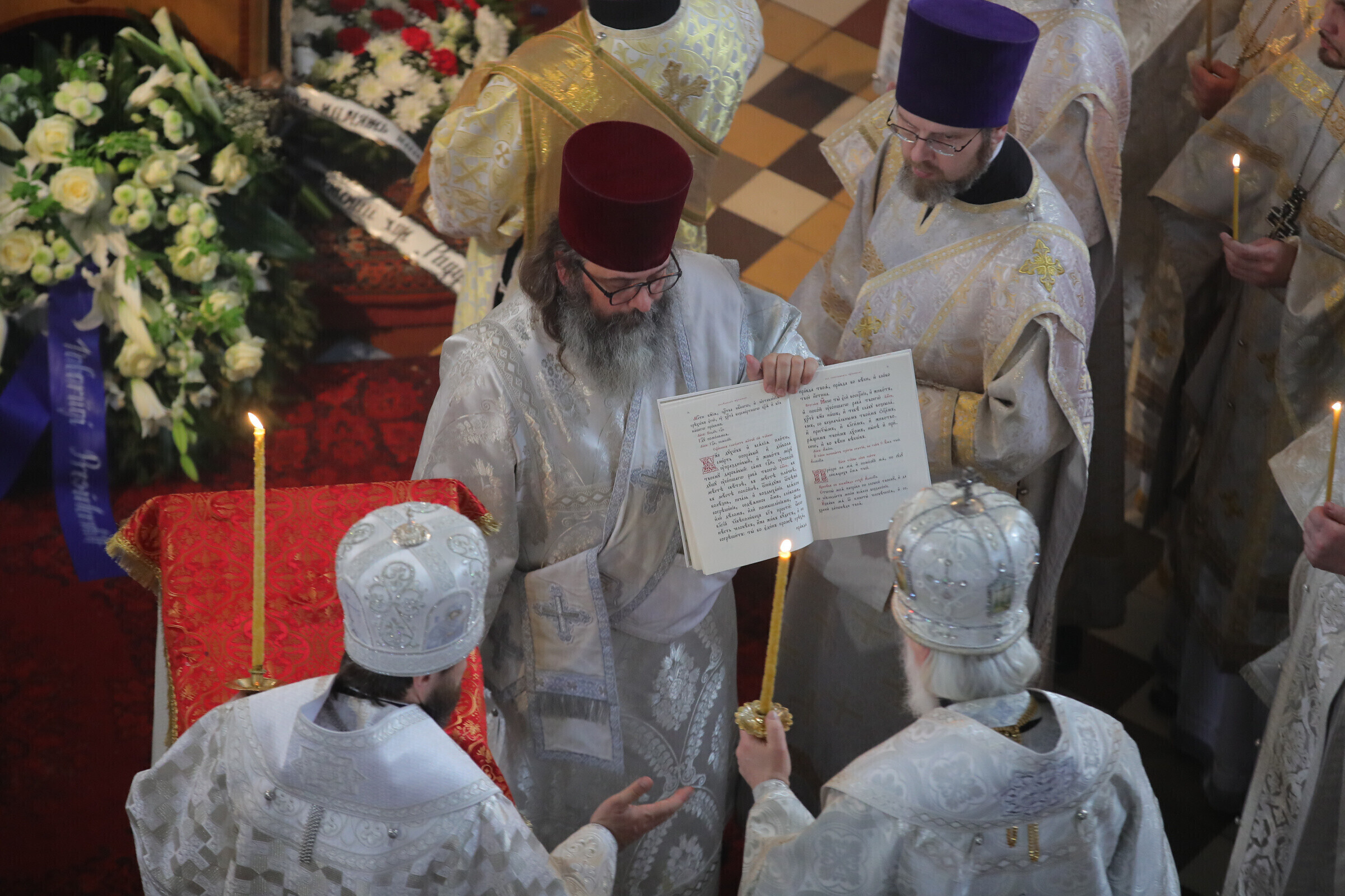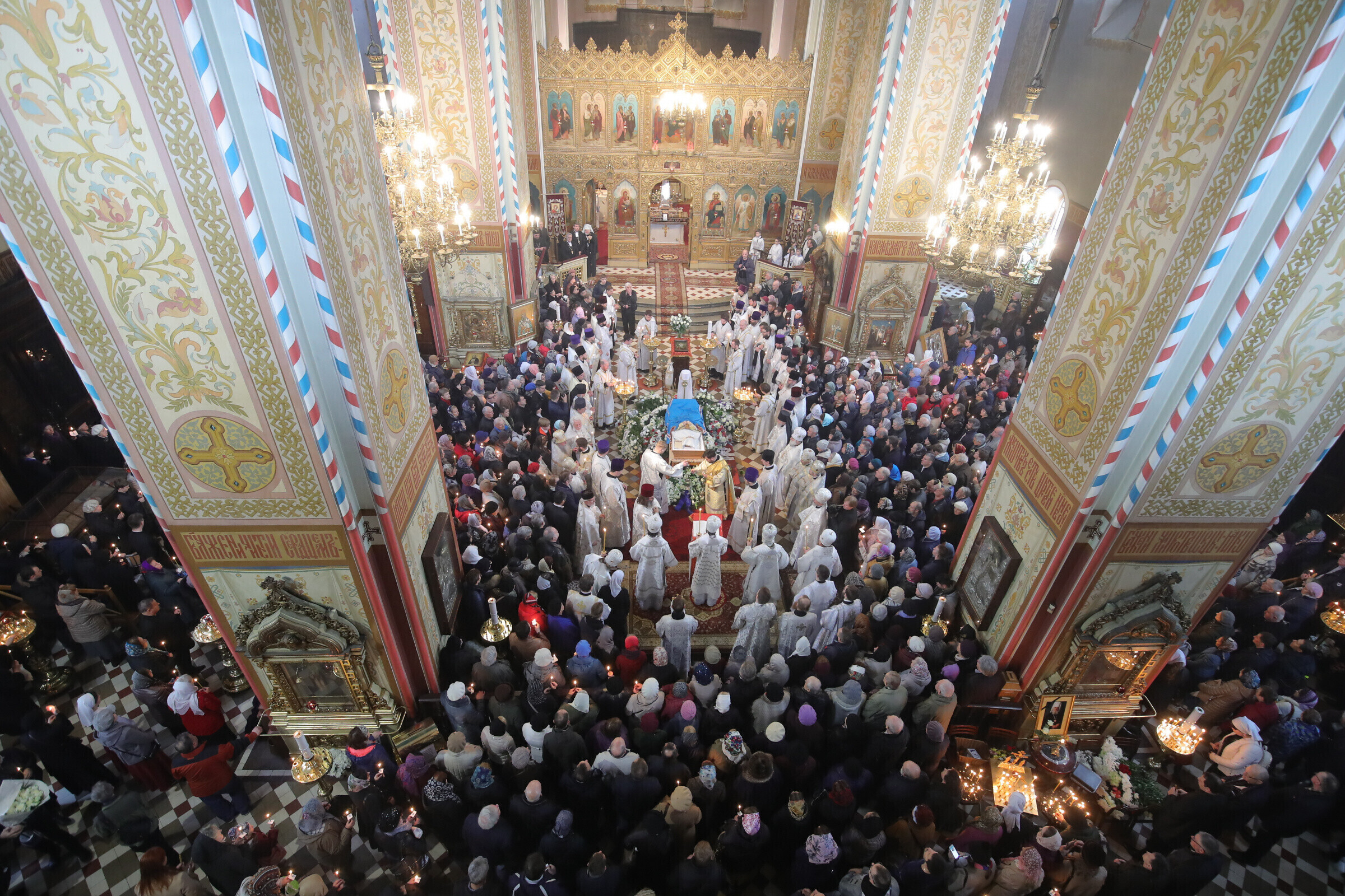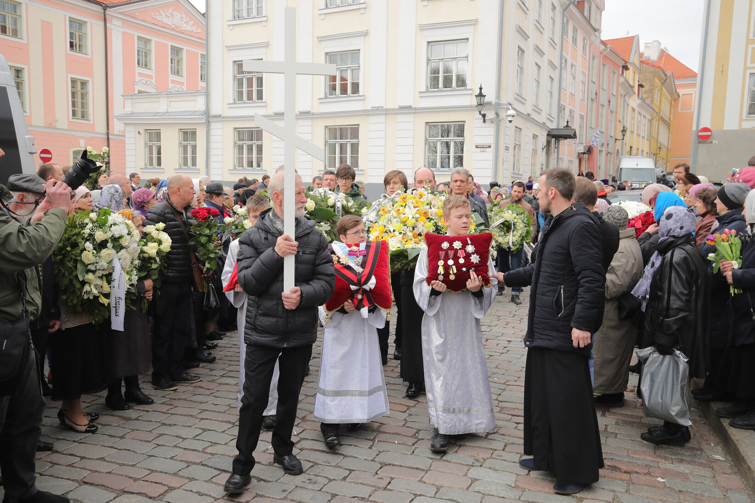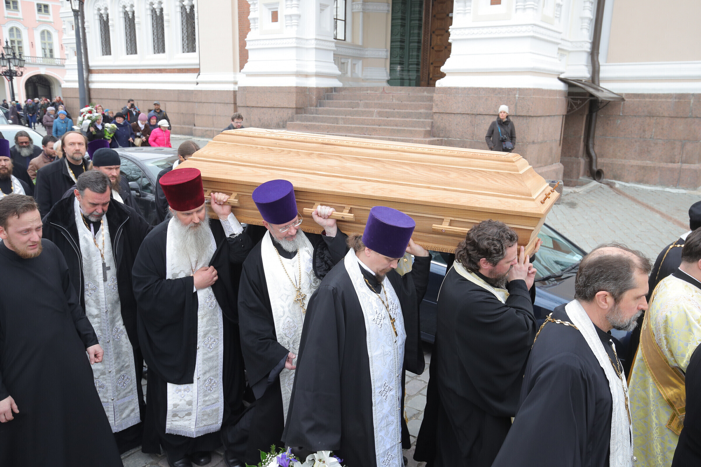 Отпевание возглавил прибывший из Москвы митрополит Волоколамский Иларион - второе лицо Русской православной церкви. Также представлены латвийская и финская православные церкви, прибыло духовенство из Печорского монастыря, присутствует и ректор Московской духовной академии архиепископ Верейский Евгений.