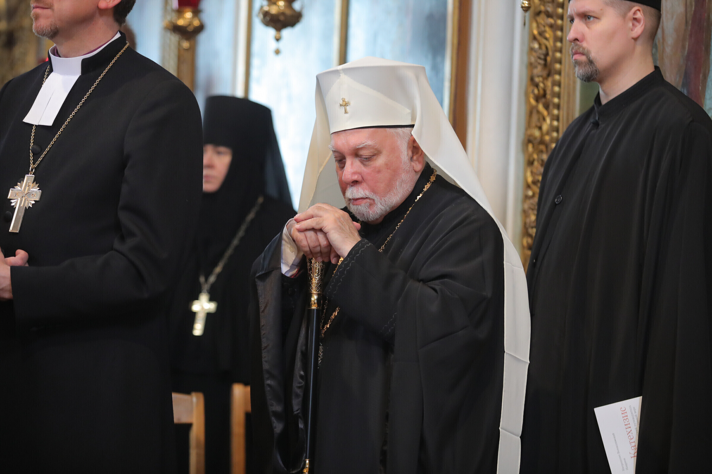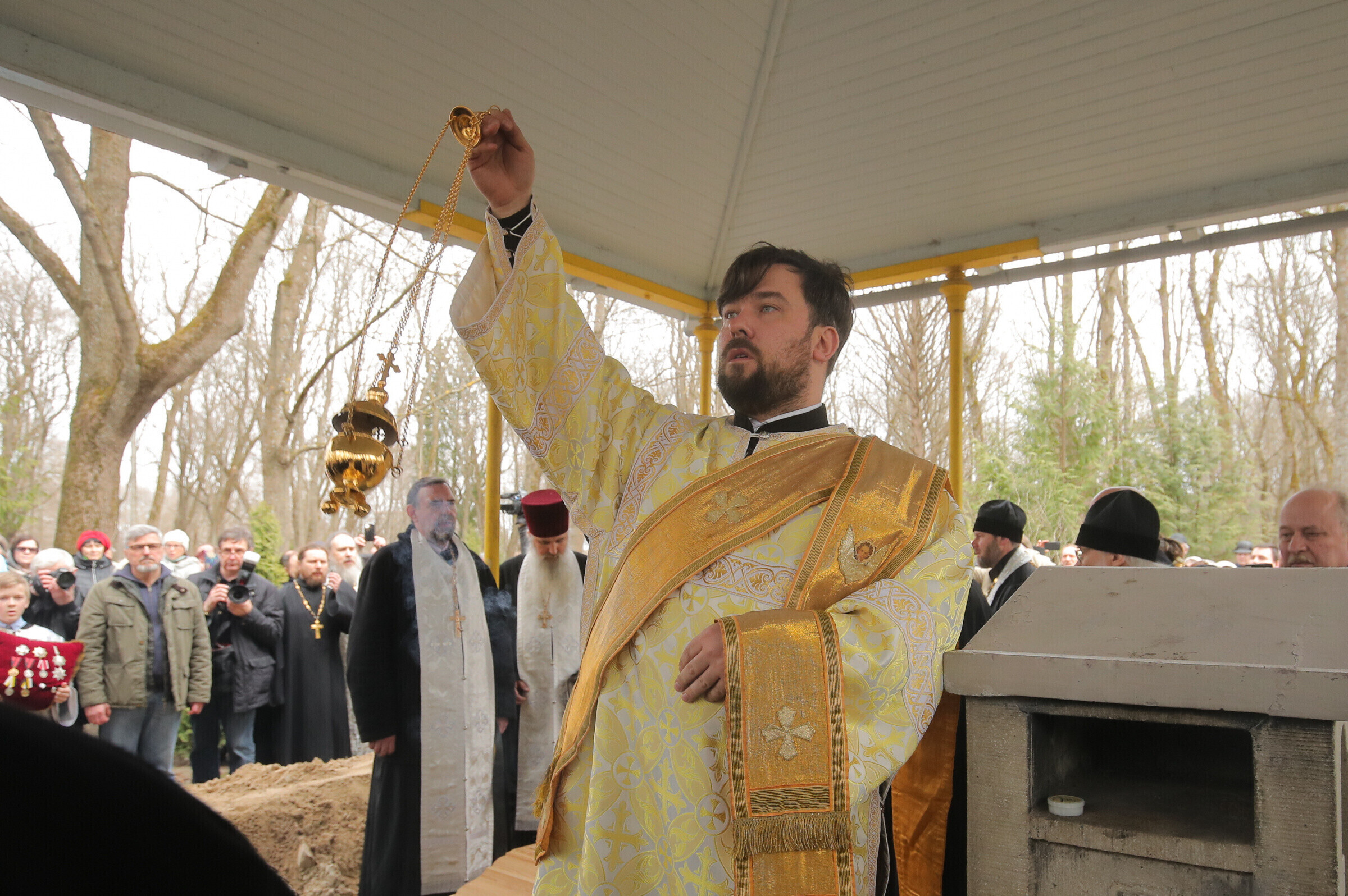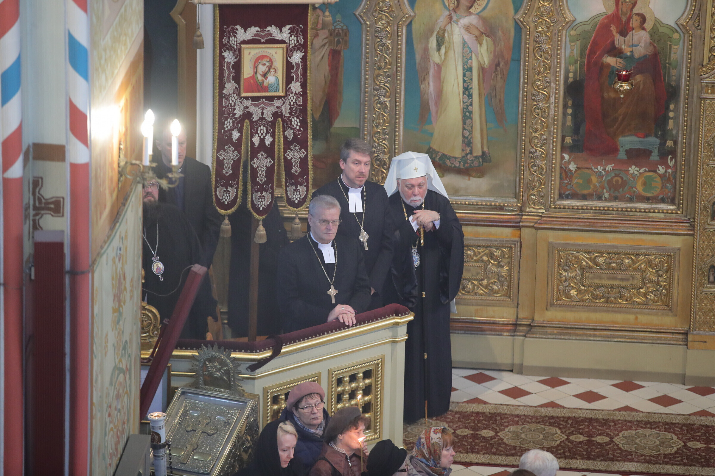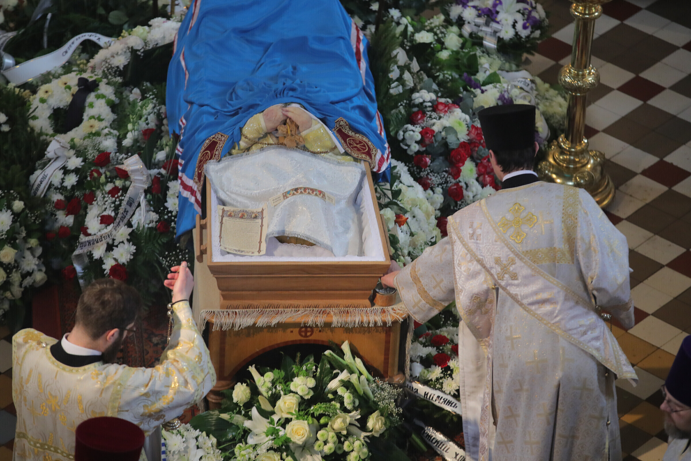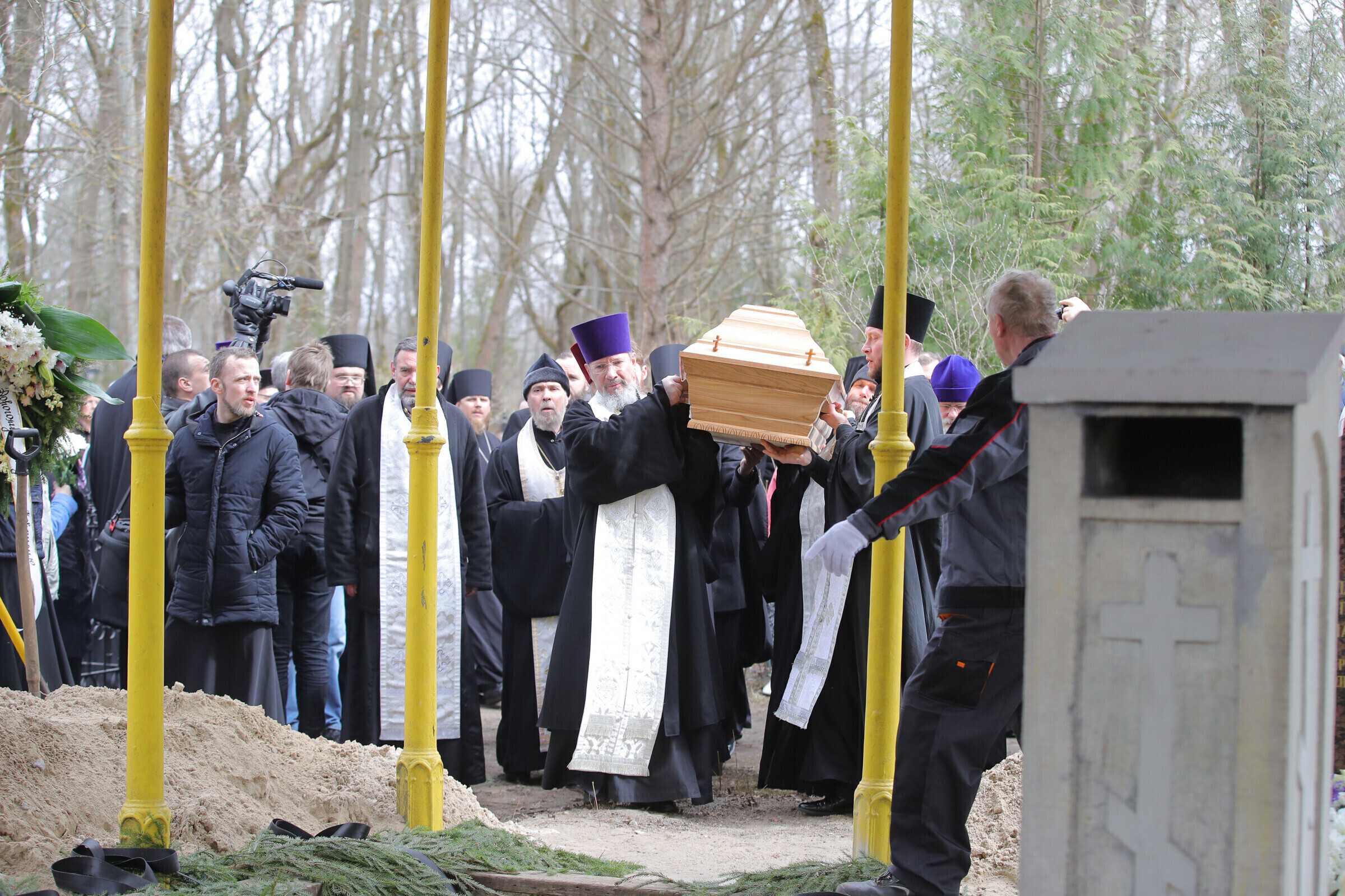 Отпевание возглавил прибывший из Москвы митрополит Волоколамский Иларион - второе лицо Русской православной церкви. Также представлены латвийская и финская православные церкви, прибыло духовенство из Печорского монастыря, присутствует и ректор Московской духовной академии архиепископ Верейский Евгений.