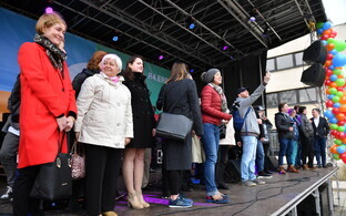 Во вторник, 1 мая, самая популярная русскоязычная радиостанция Эстонии "Радио 4", которая была создана 25 лет назад, отмечает день рождения. Праздник проходит в Нарве. На концерт перед центром культуры Geneva собрались жители города, коллеги и друзья журналистов радиостанции.