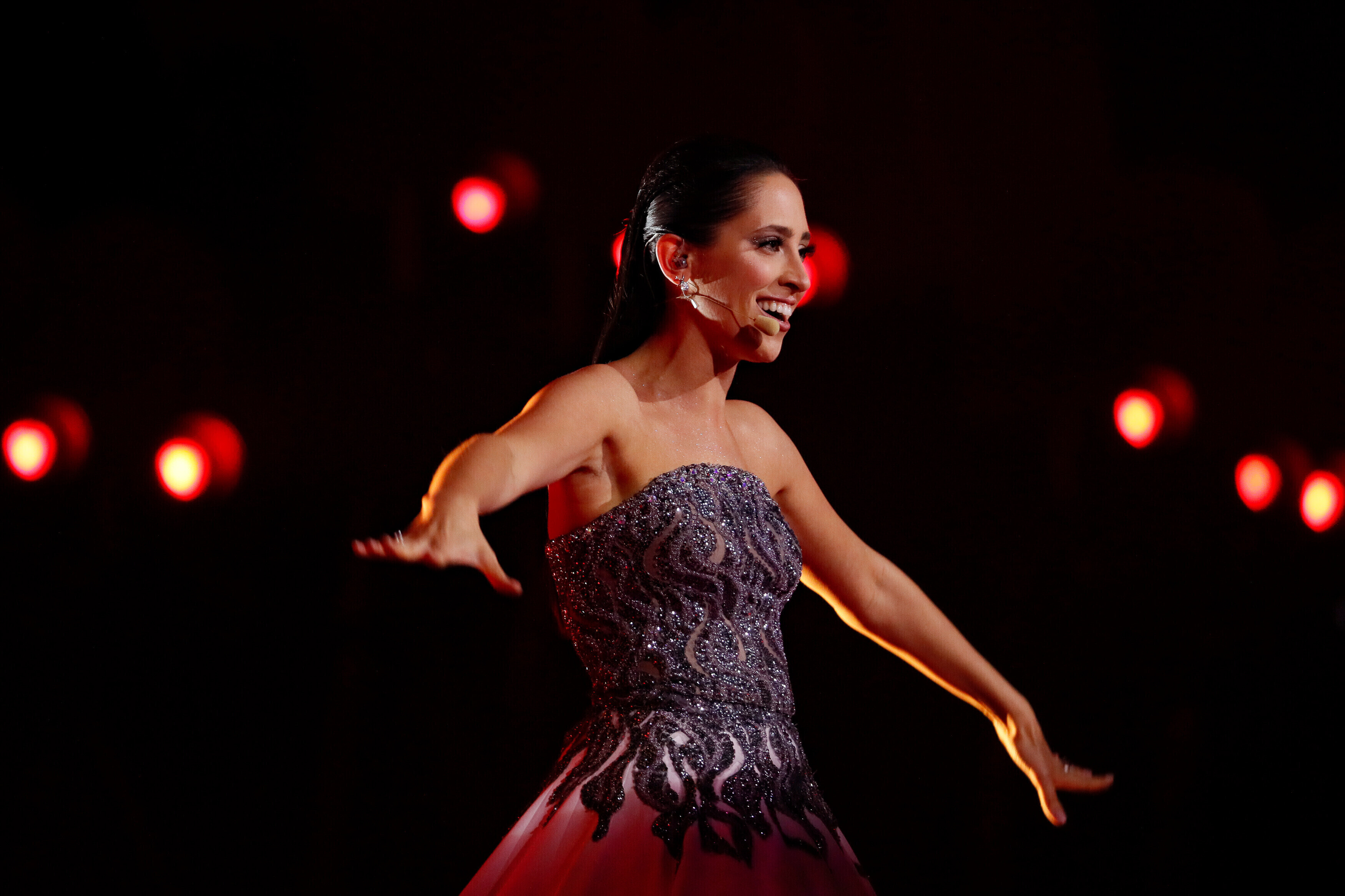 Элина Нечаева прекрасно себя чувствует в свете прожекторов и в центре внимания, ее прическа и макияж остались такими же, как и в финале конкурса Eesti Laul.