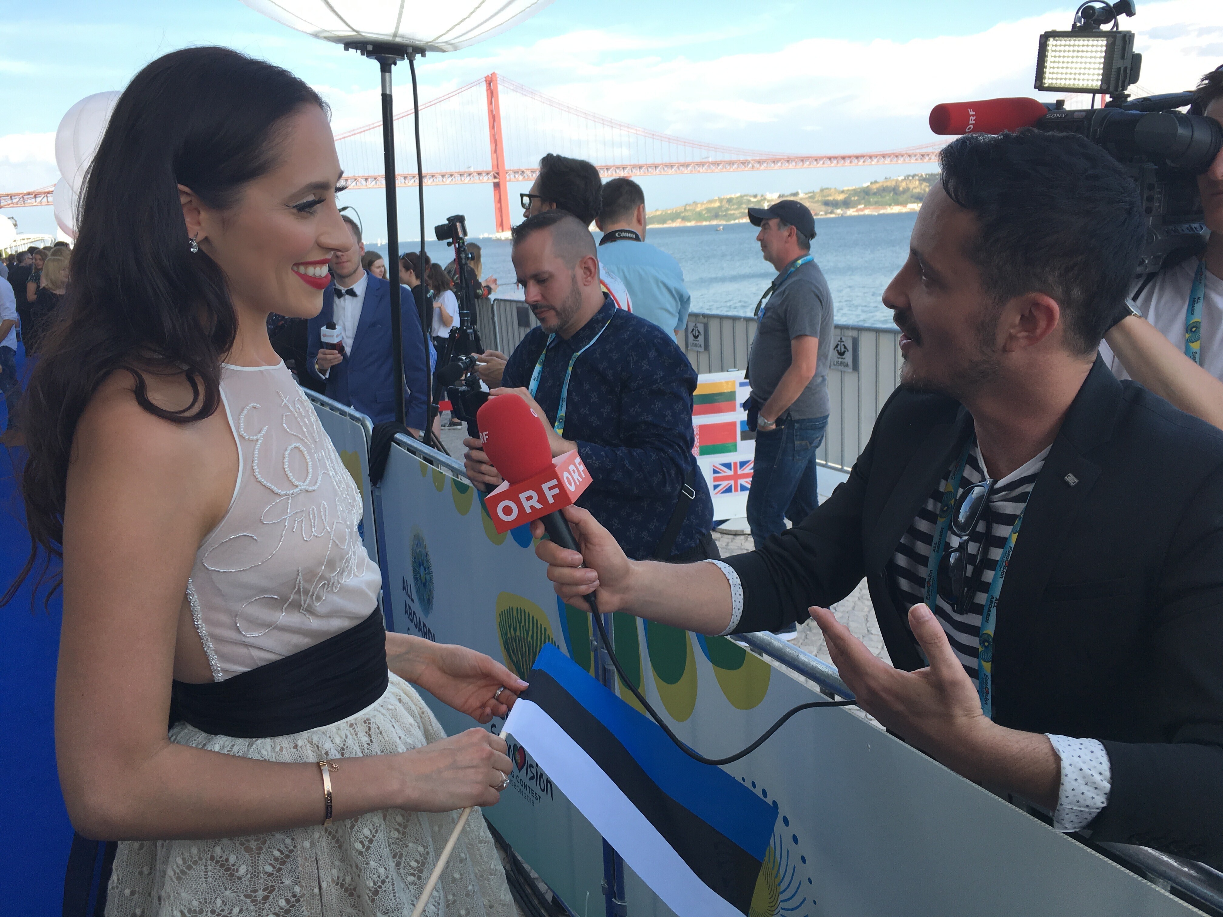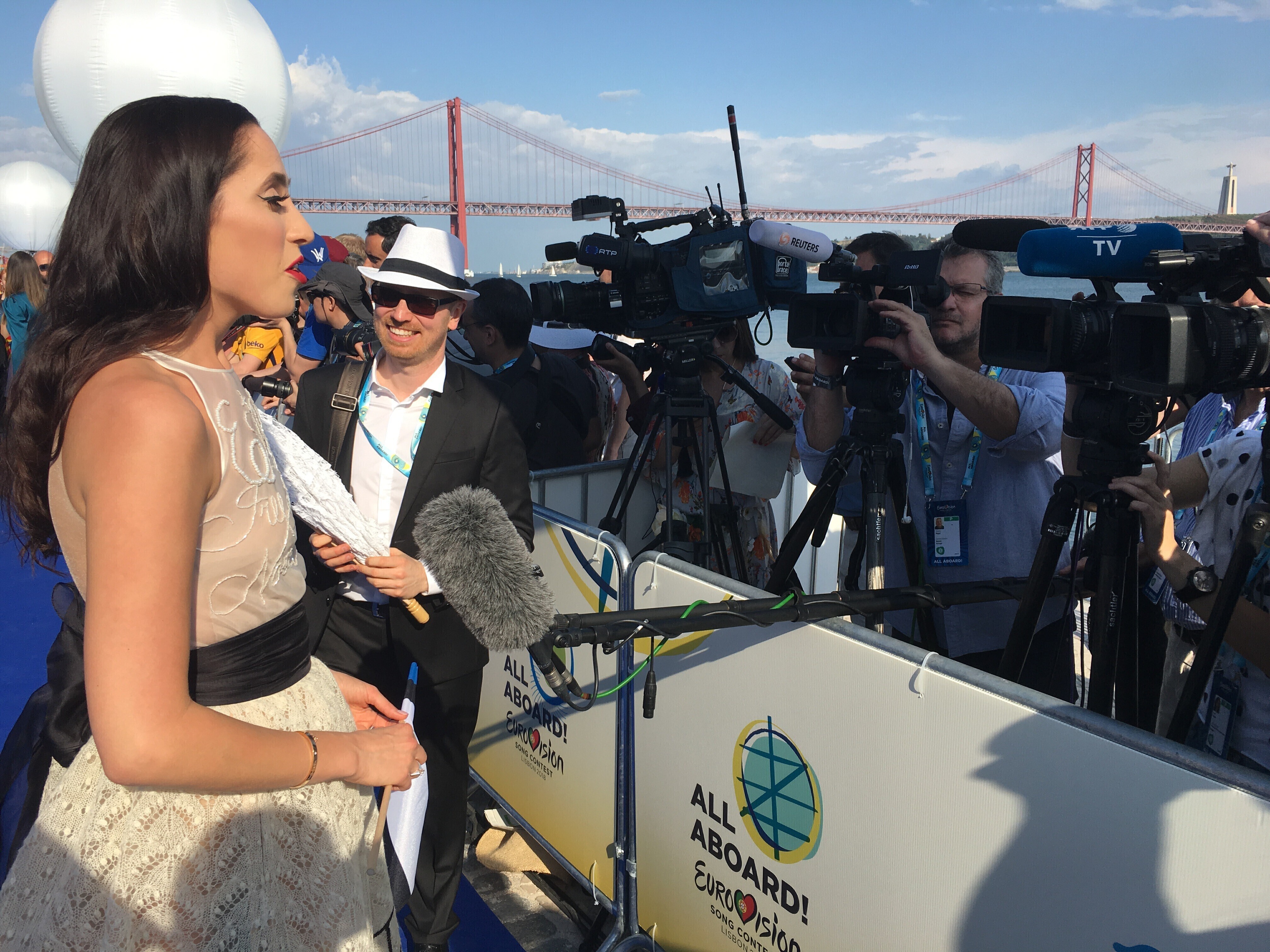 В этом году конкурс проходит под девизом "Все на борт!", а главной темой выбран океан, на берегу которого расположена столица Португалии. В соответствии с этим организаторы даже изменили традиционный красный цвет ковровой дорожки на синий, передает в понедельник служба новостей "Радио 4".