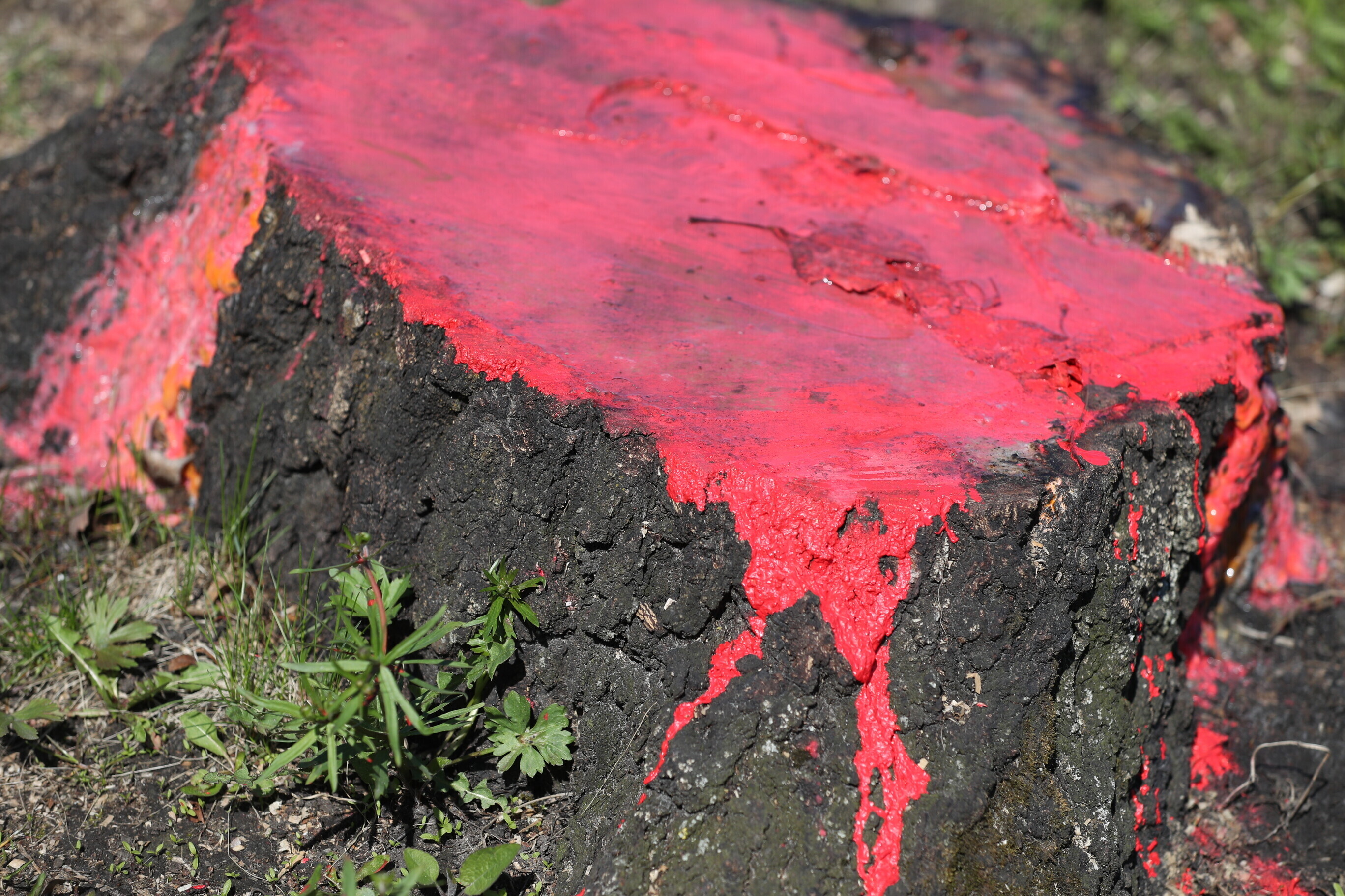 С какой целью были окрашены пни, неизвестно, ERR не удалось выяснить, кто это сделал.