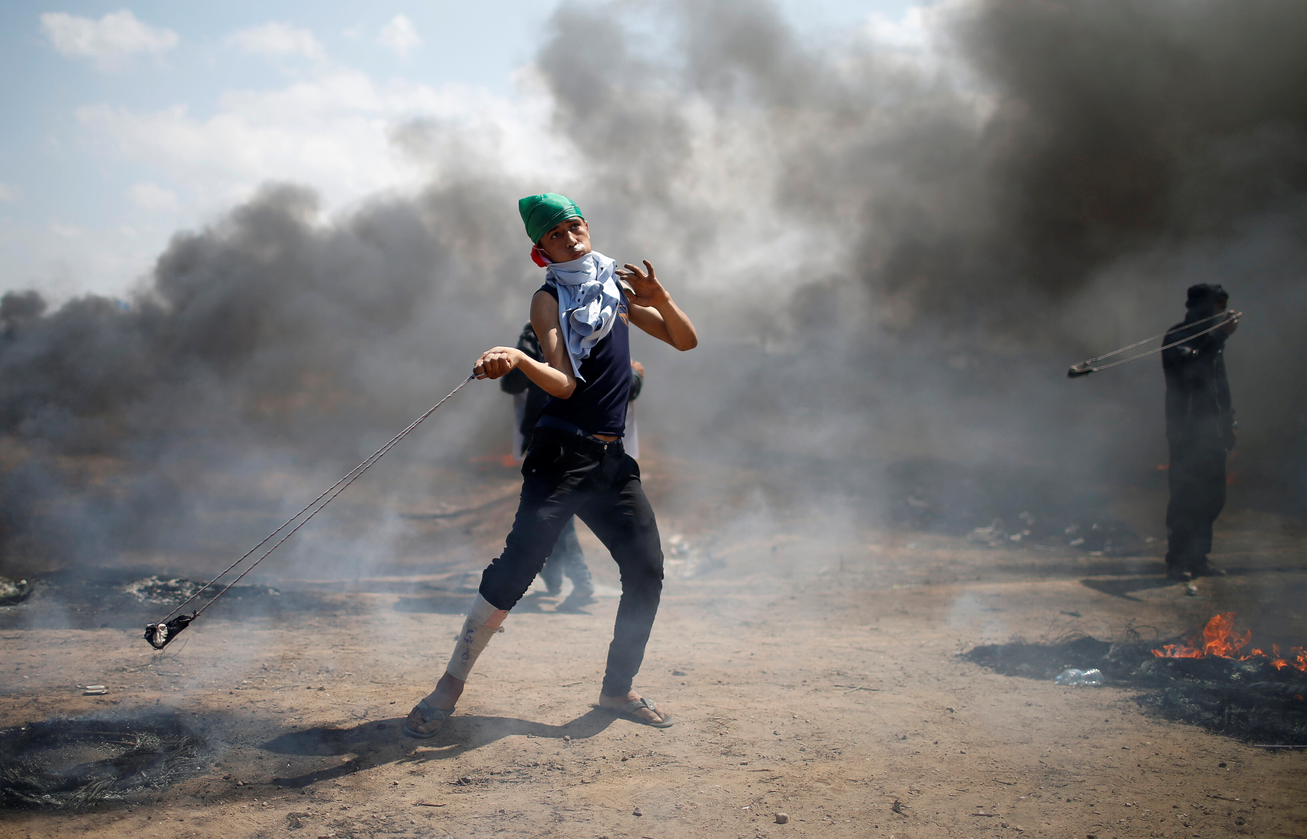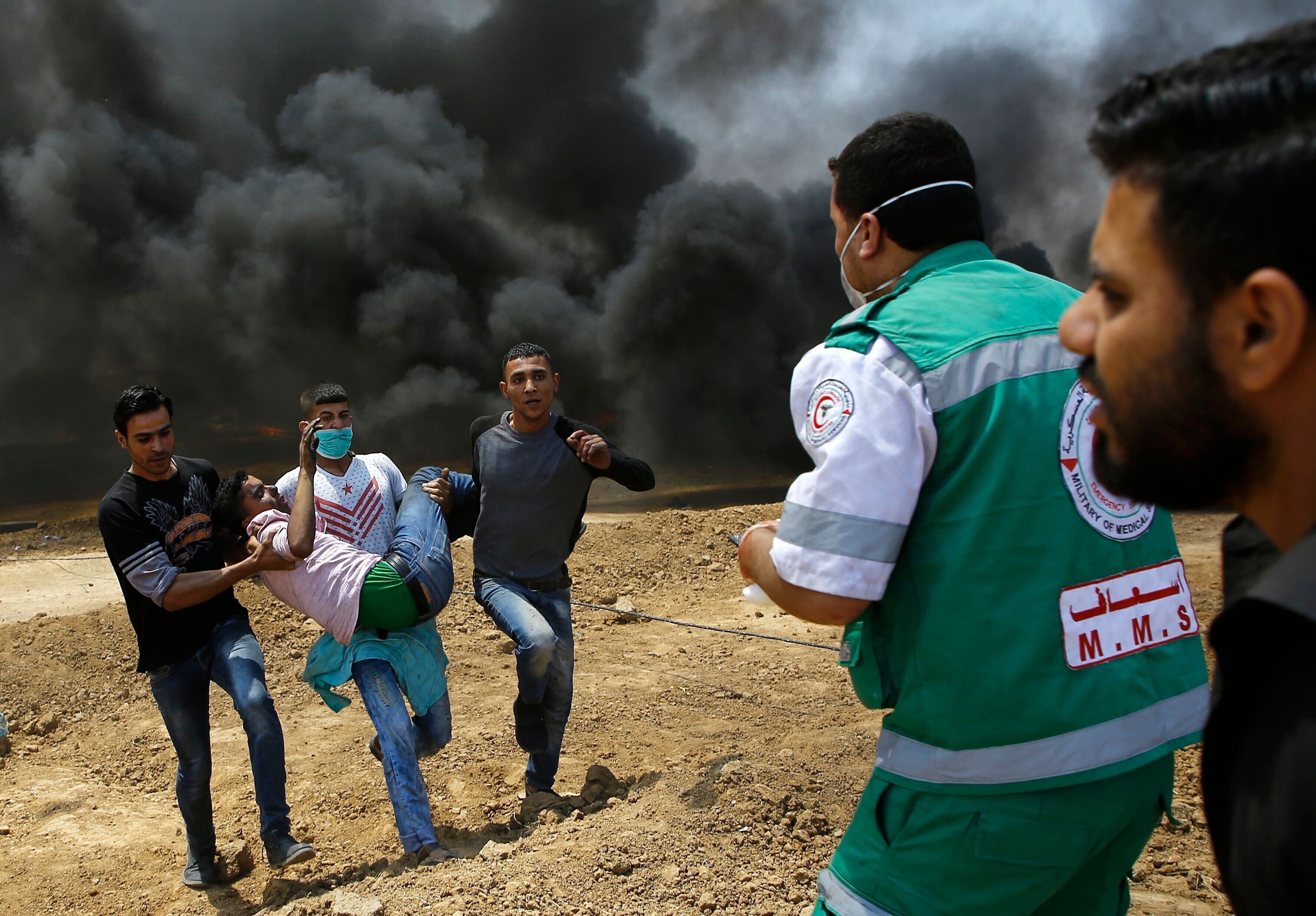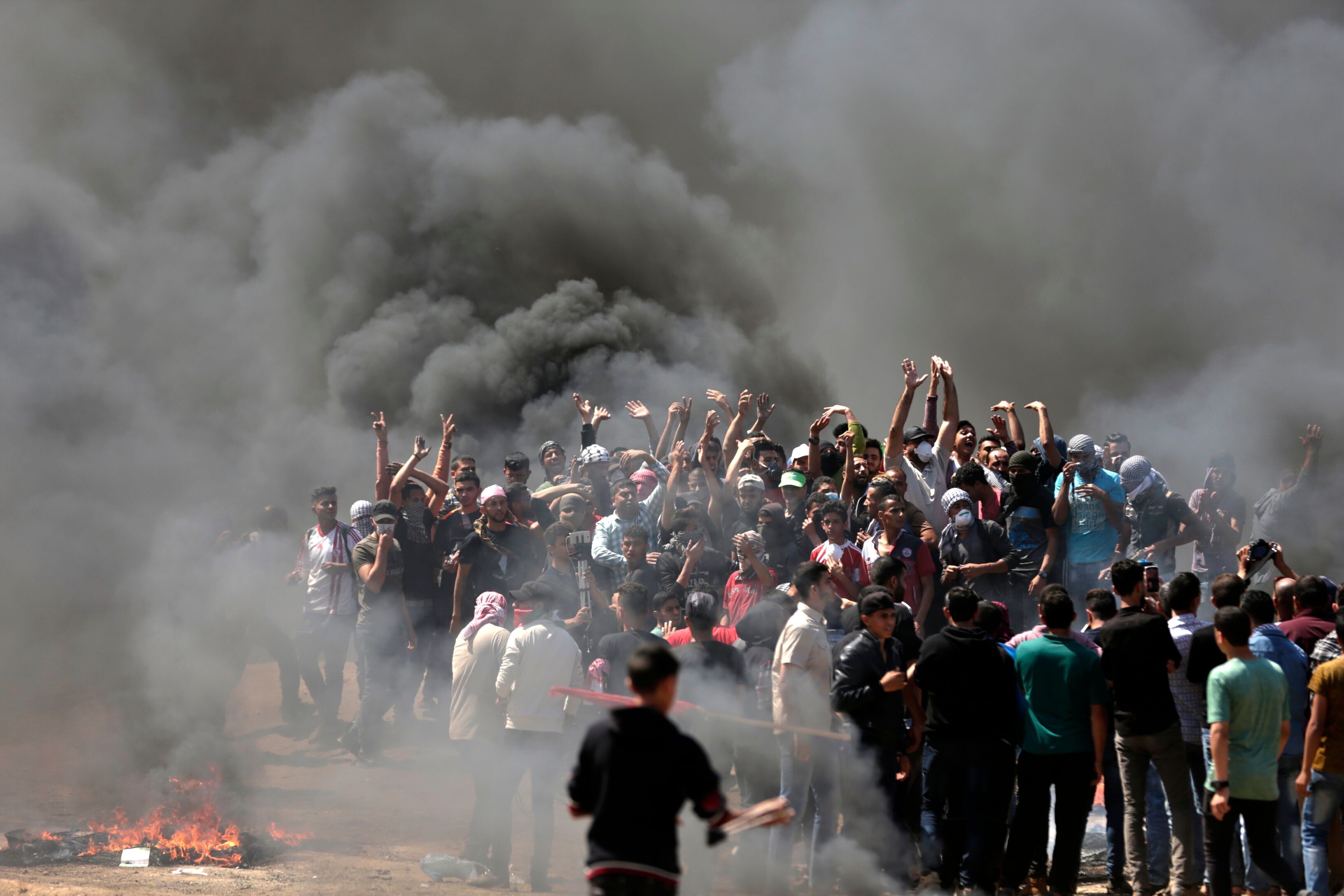 Демонстранты поджигали покрышки и швыряли в сторону границы камни и зажигательные бомбы. С израильской стороны действовали снайперы.