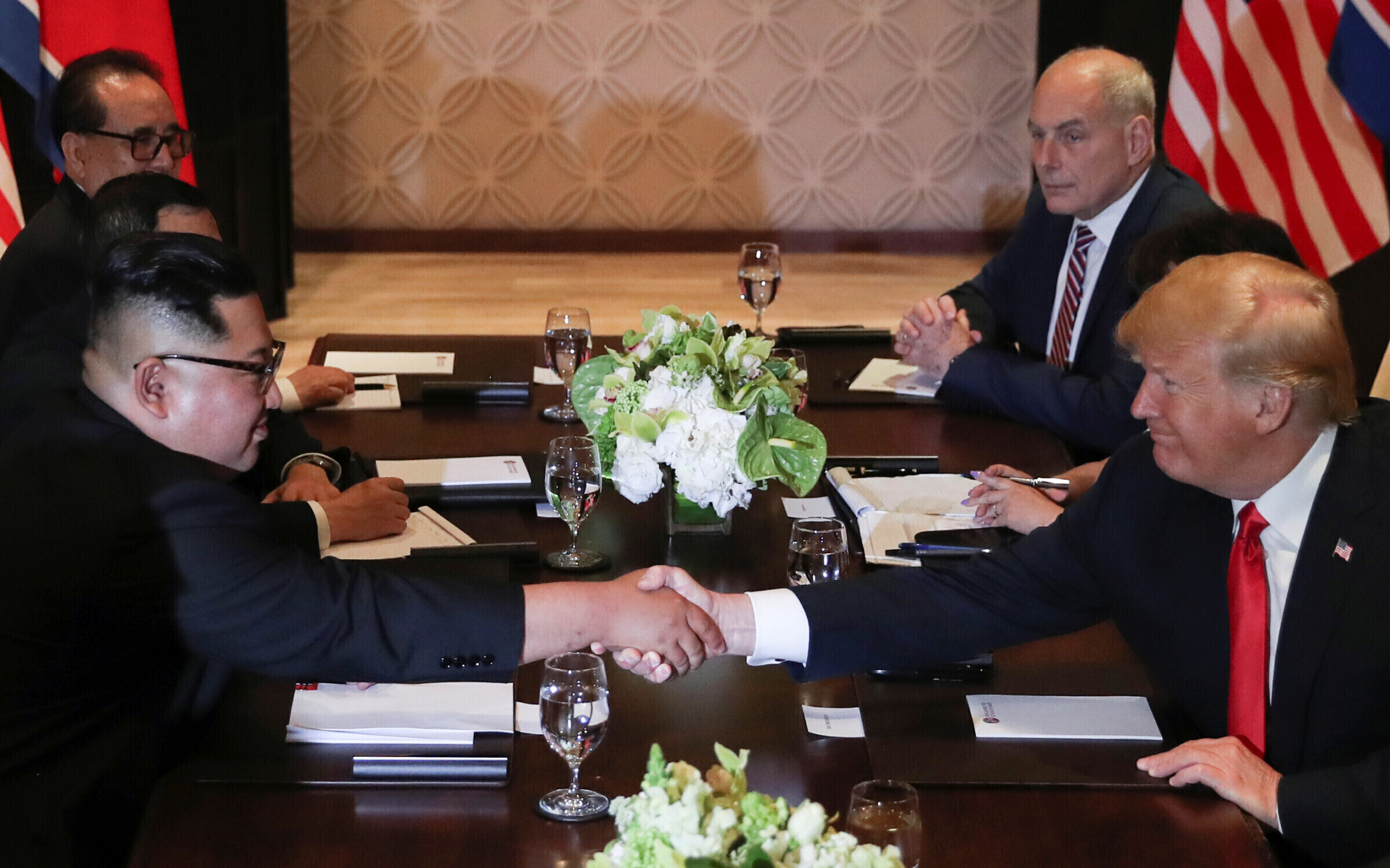 Саммит проходил в пятизвездочном отеле Capella на курортном острове Сентоза. Перед его началом Ким Чен Ын и Дональд Трамп обменялись историческим рукопожатием, сообщила Русская служба Би-би-си.
