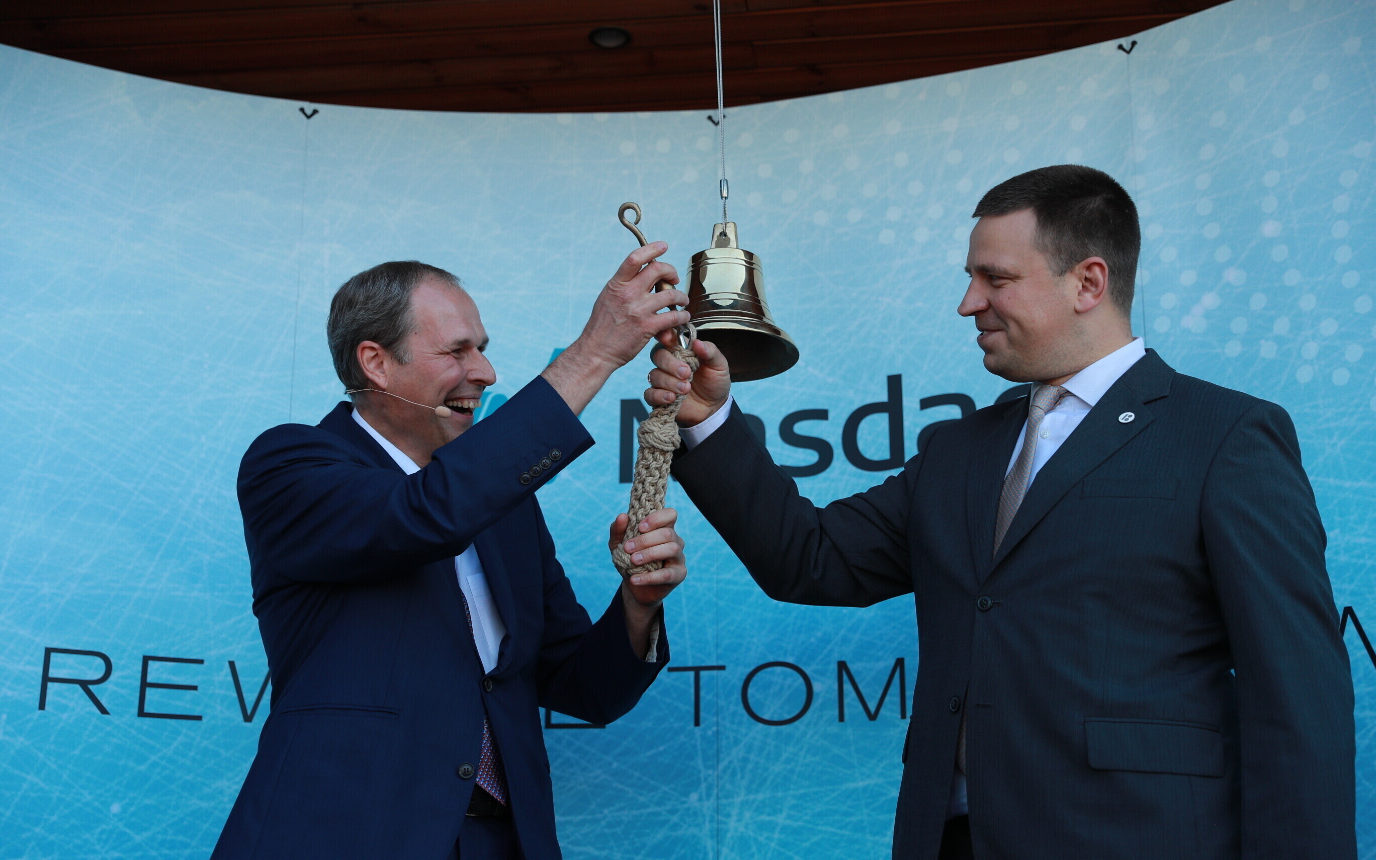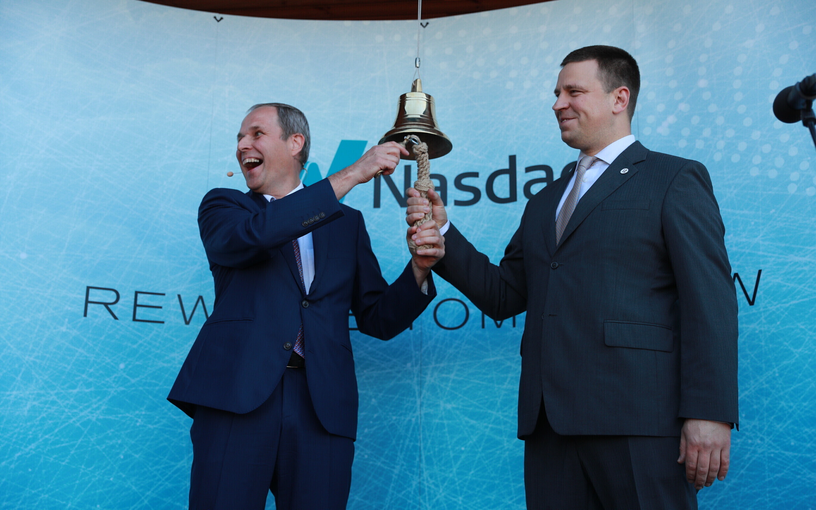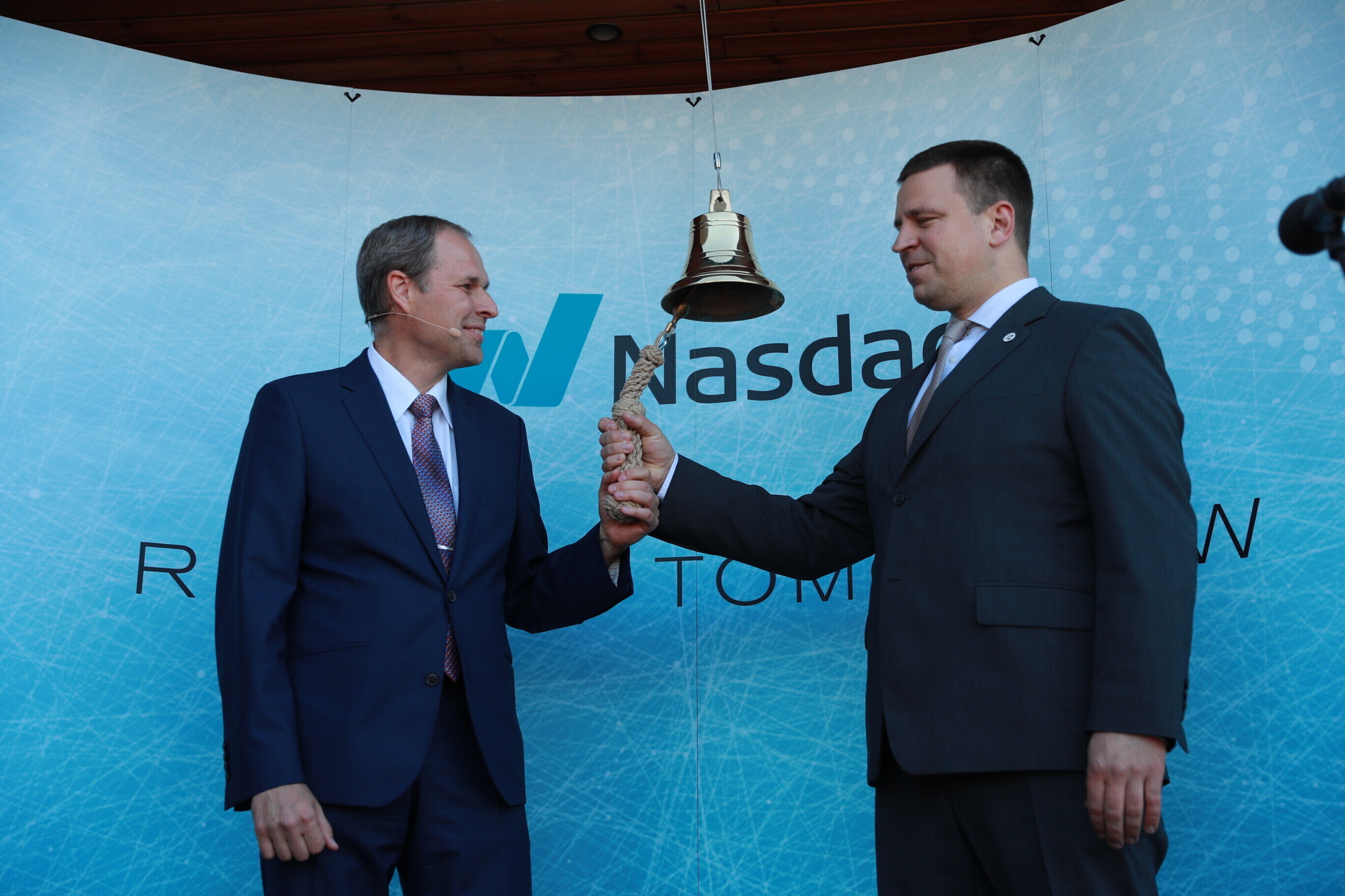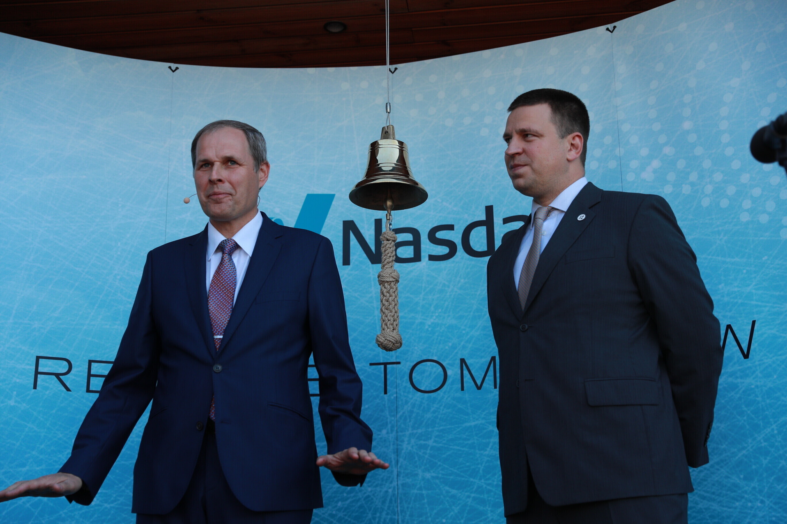 В дающий сигнал к началу торгов колокол ударили председатель правления Таллиннского порта Валдо Калм и премьер-министр Юри Ратас.