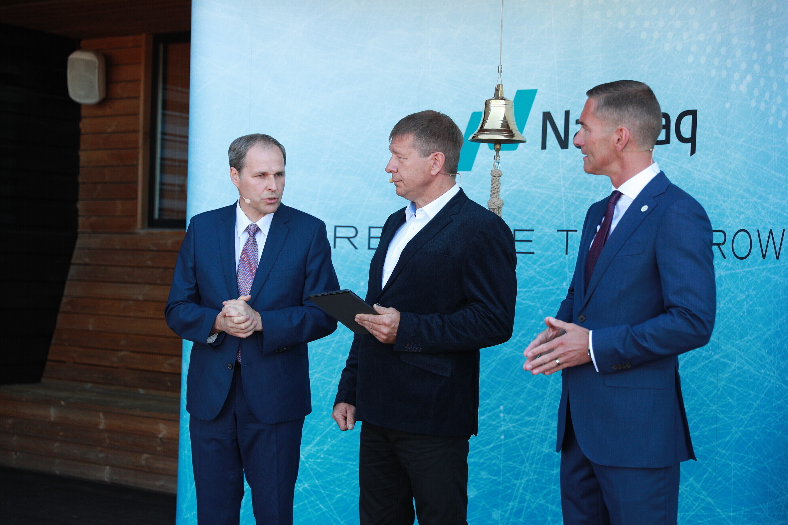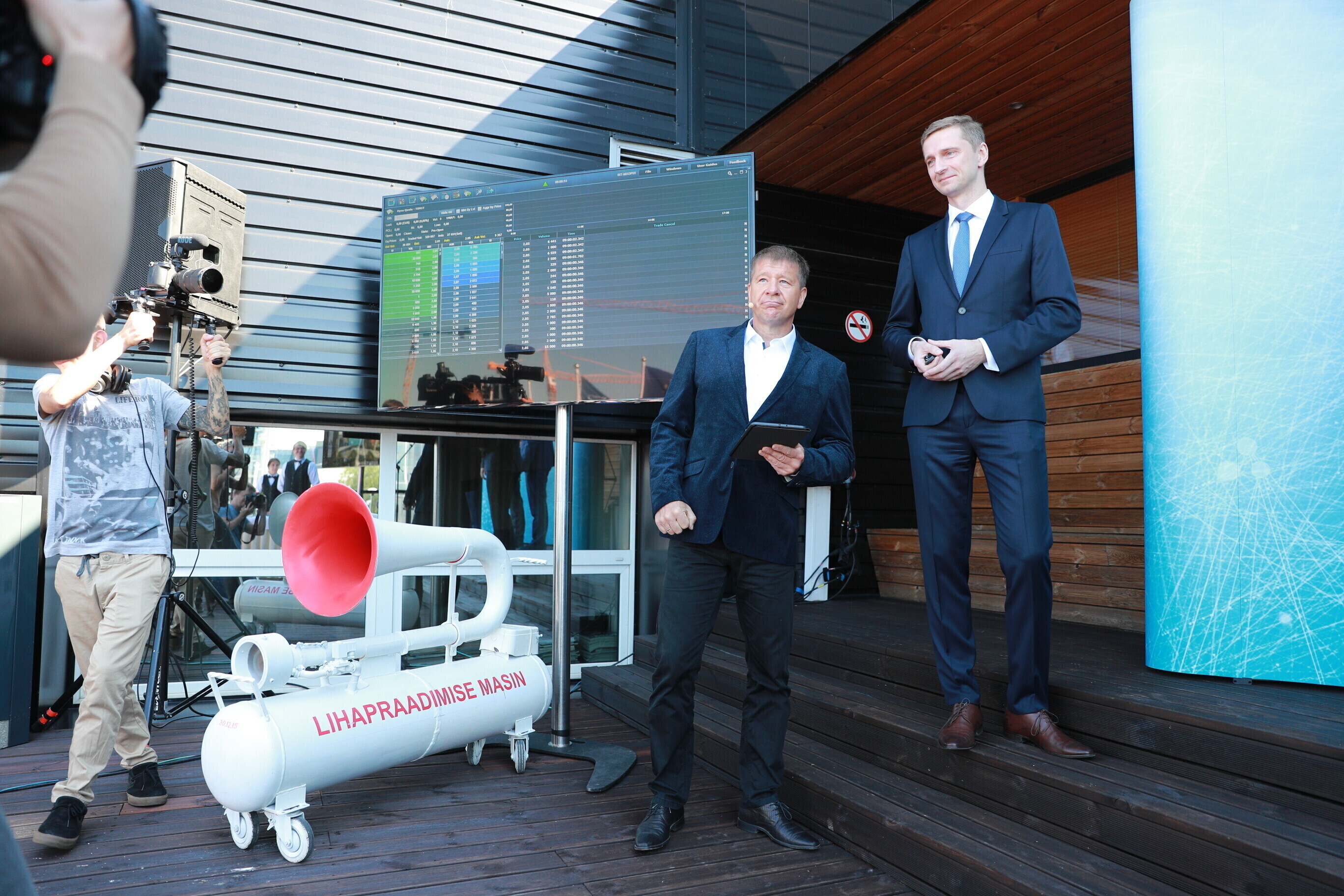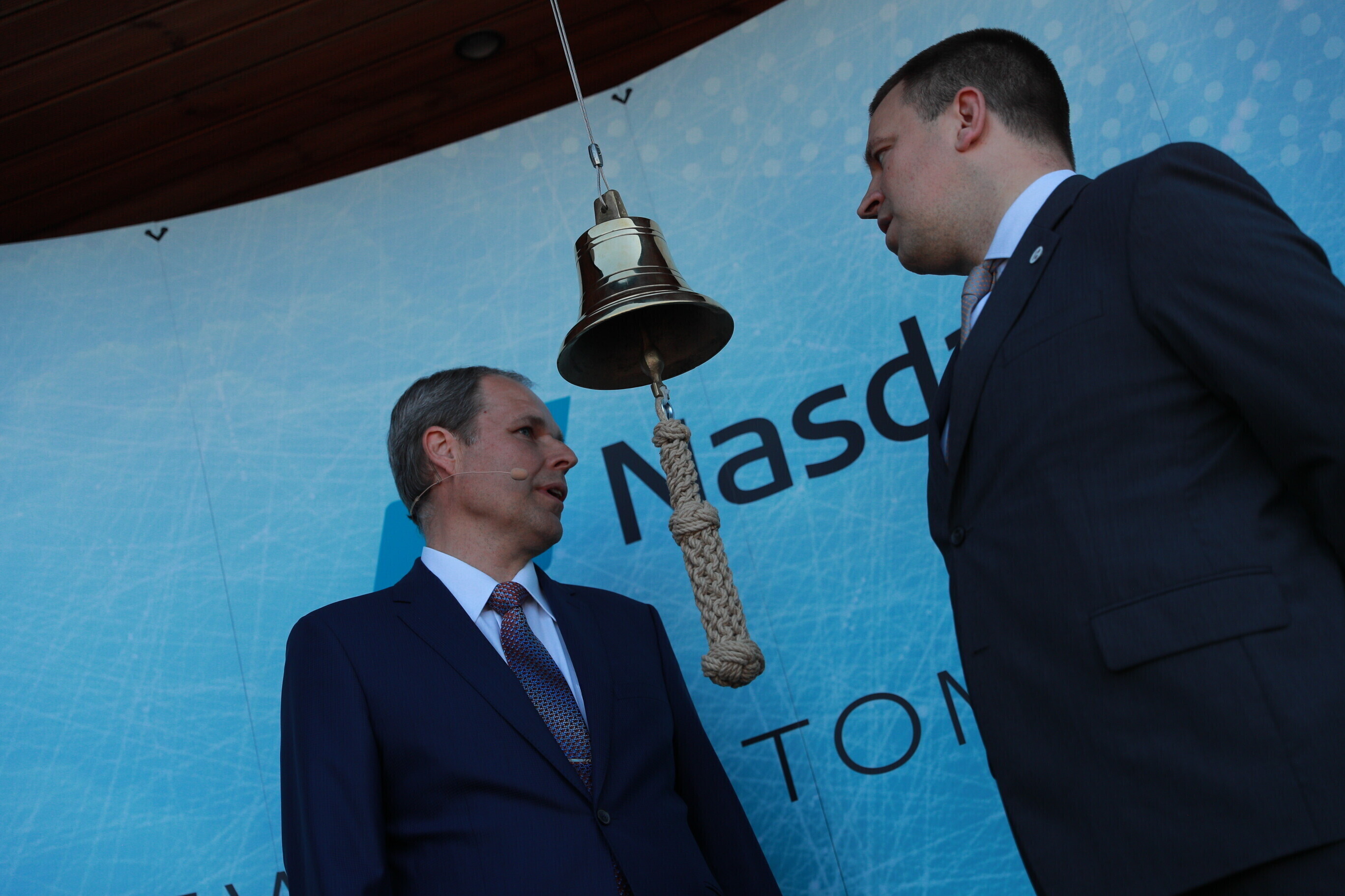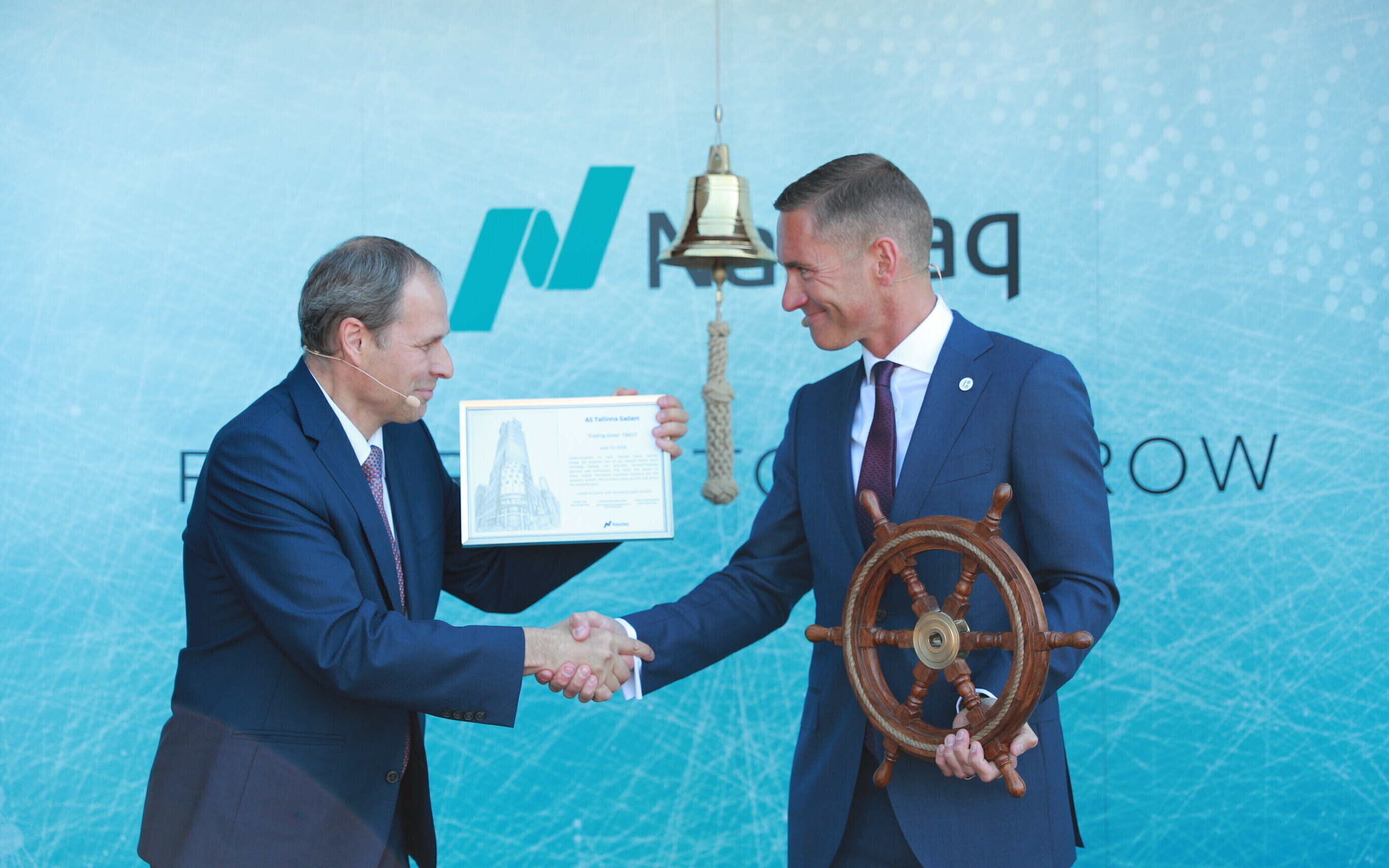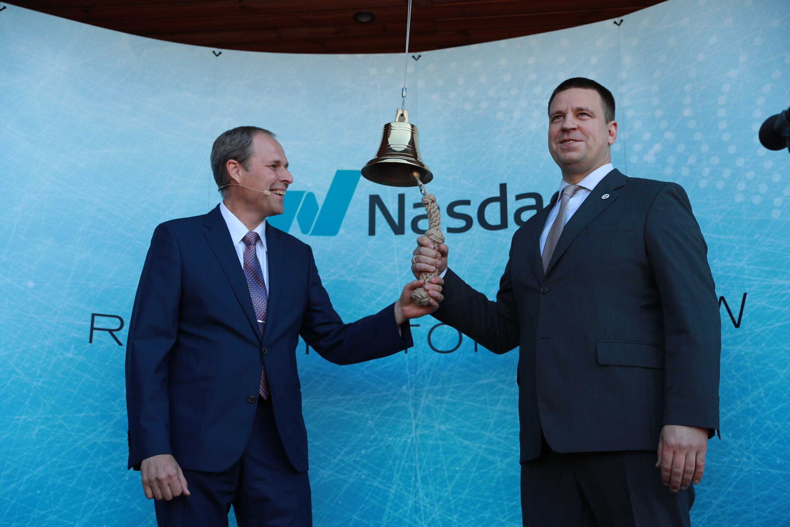 В дающий сигнал к началу торгов колокол ударили председатель правления Таллиннского порта Валдо Калм и премьер-министр Юри Ратас.