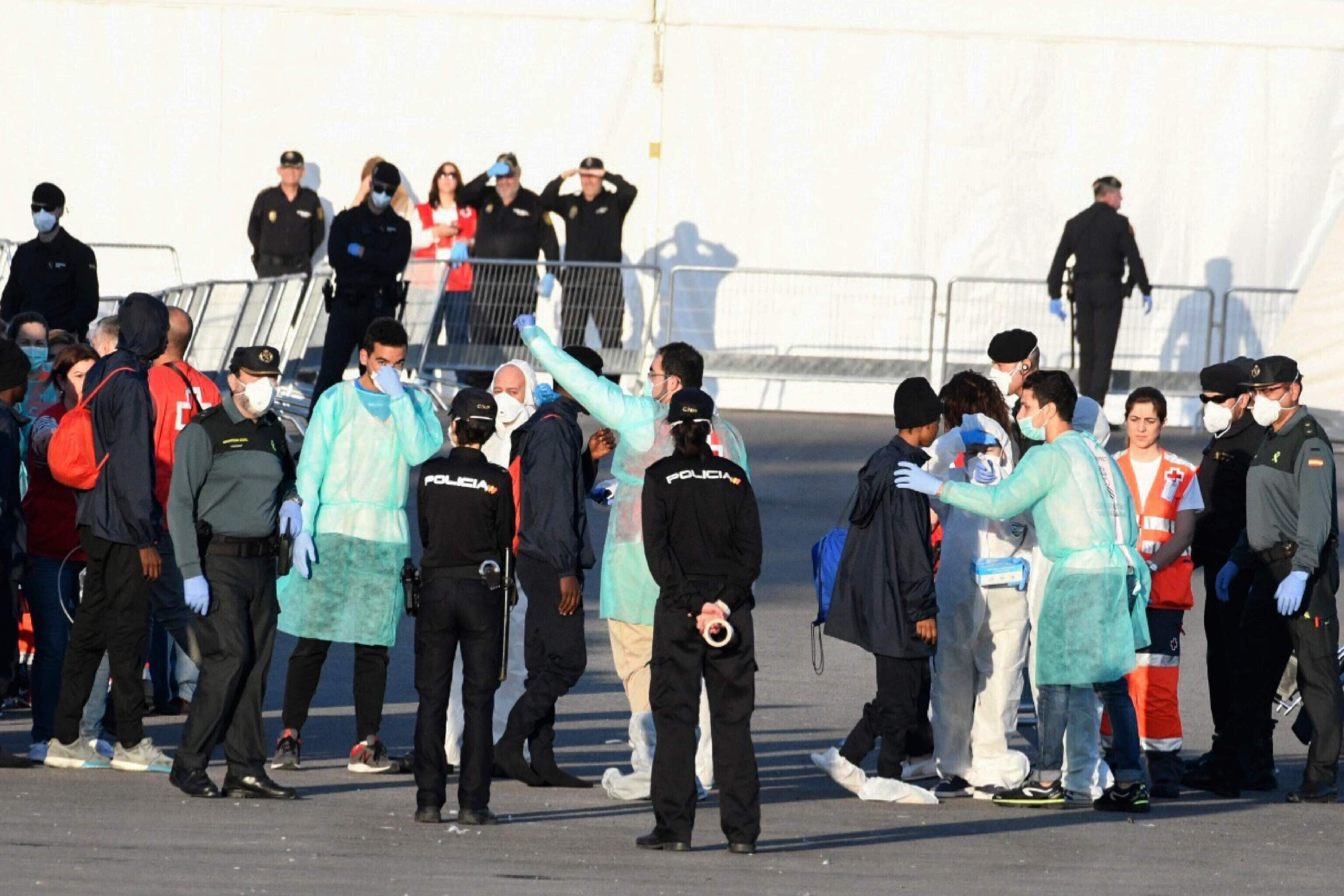 Отмечается, что в порту Валенсии расположены две палатки Красного Креста, в которых прибывающим мигрантам организуют первые медицинские обследования.