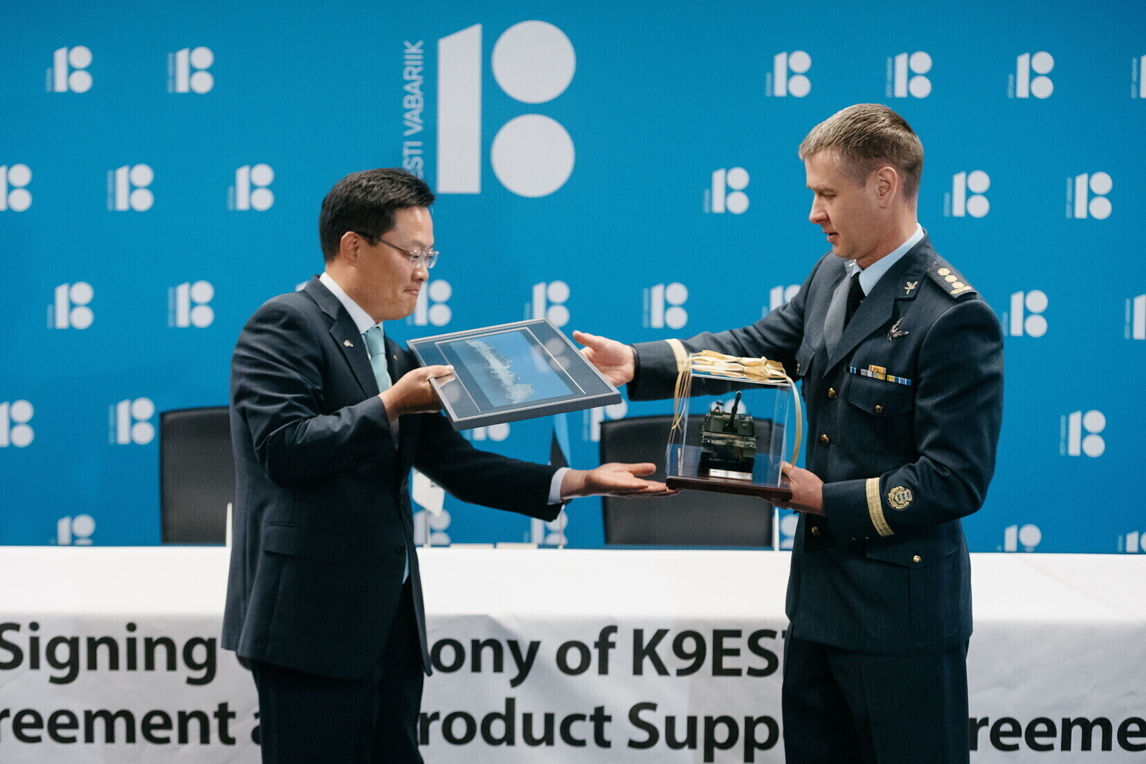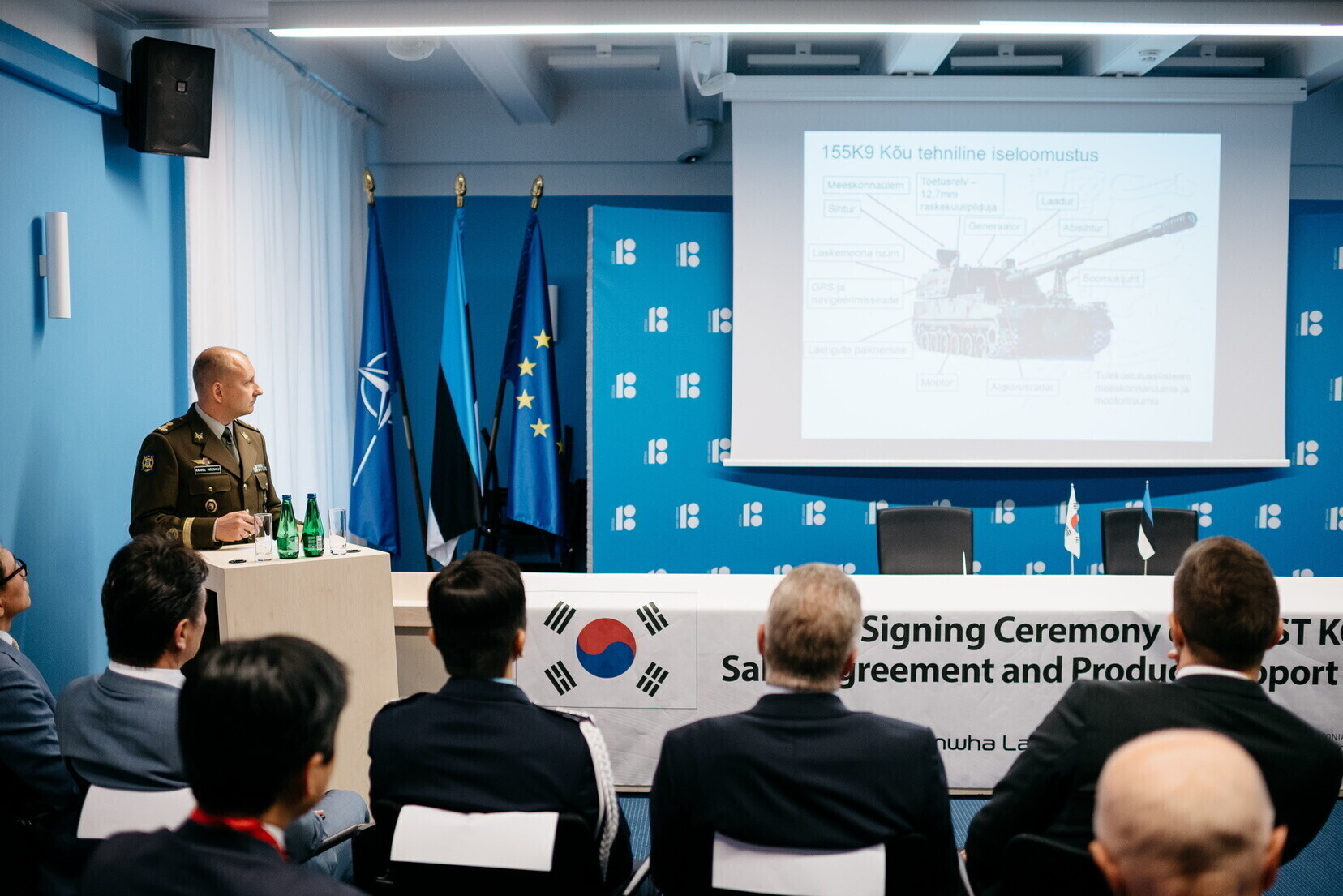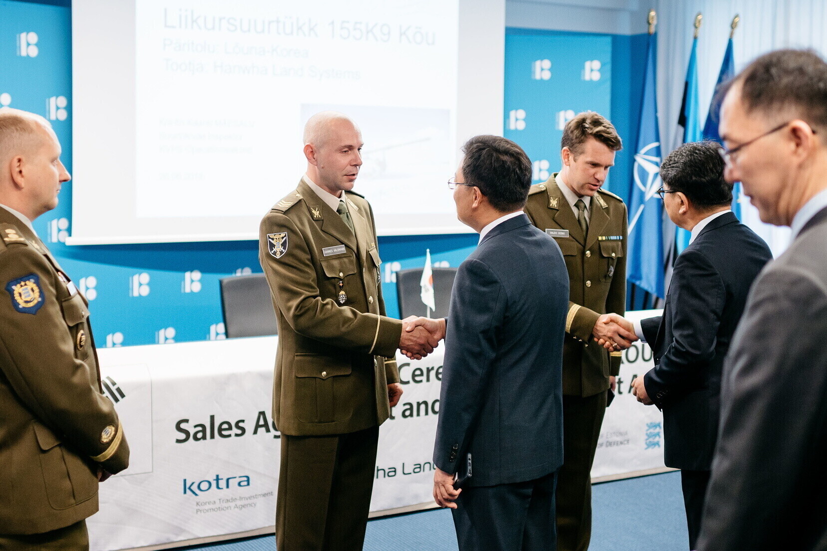 Договор подписали 26 июня директор Центра оборонных инвестиций полковник Рауно Сирк, главы корейской организации поддержки торговли и инвестиций и компании оборонной промышленности Hanhwa Land Systems Син Донджун и Сон Джэль.