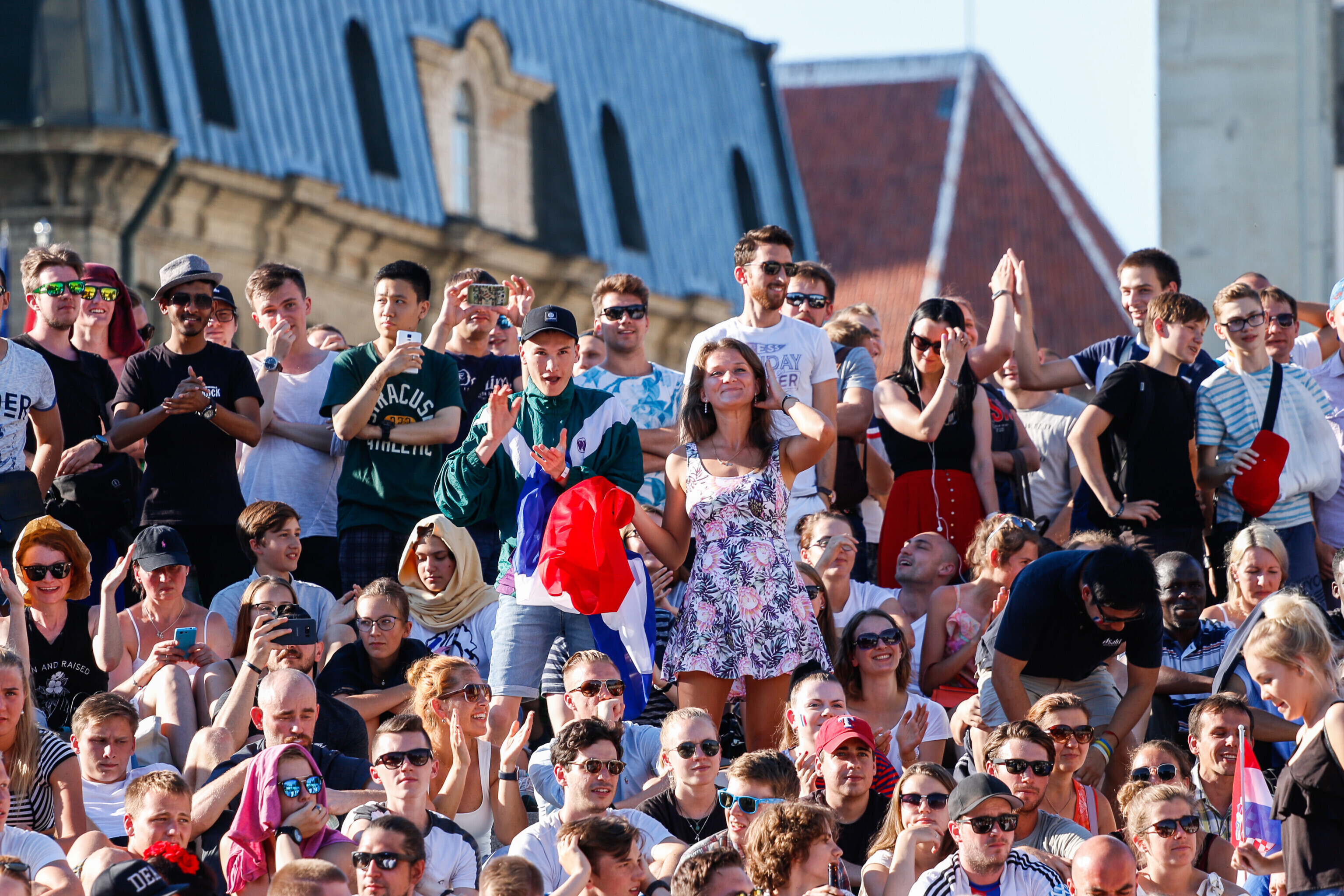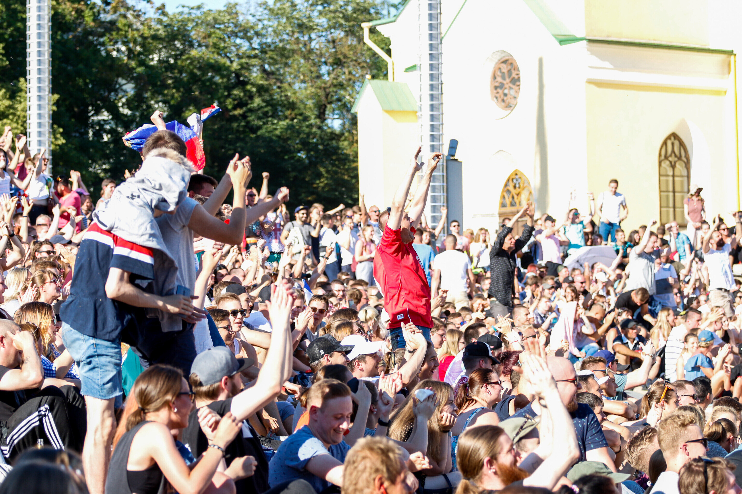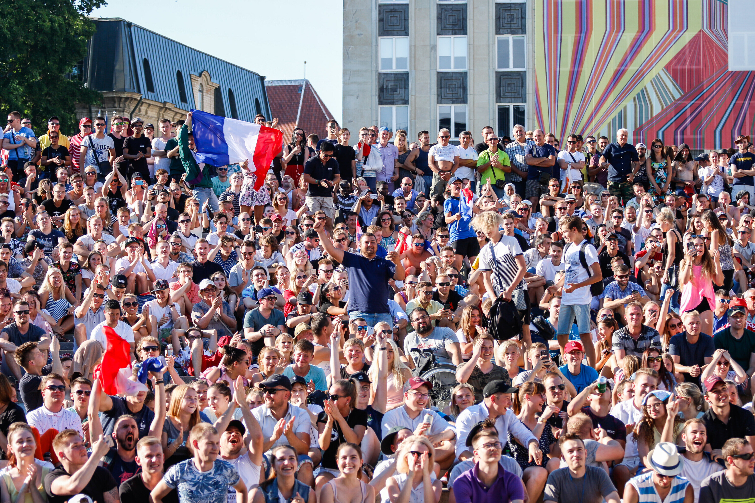 В воскресенье вечером любители футбола собрались в центре Таллинна на площади Вабадузе, чтобы посмотреть финальный поединок чемпионата мира-2018 между сборными Франции и Хорватии.