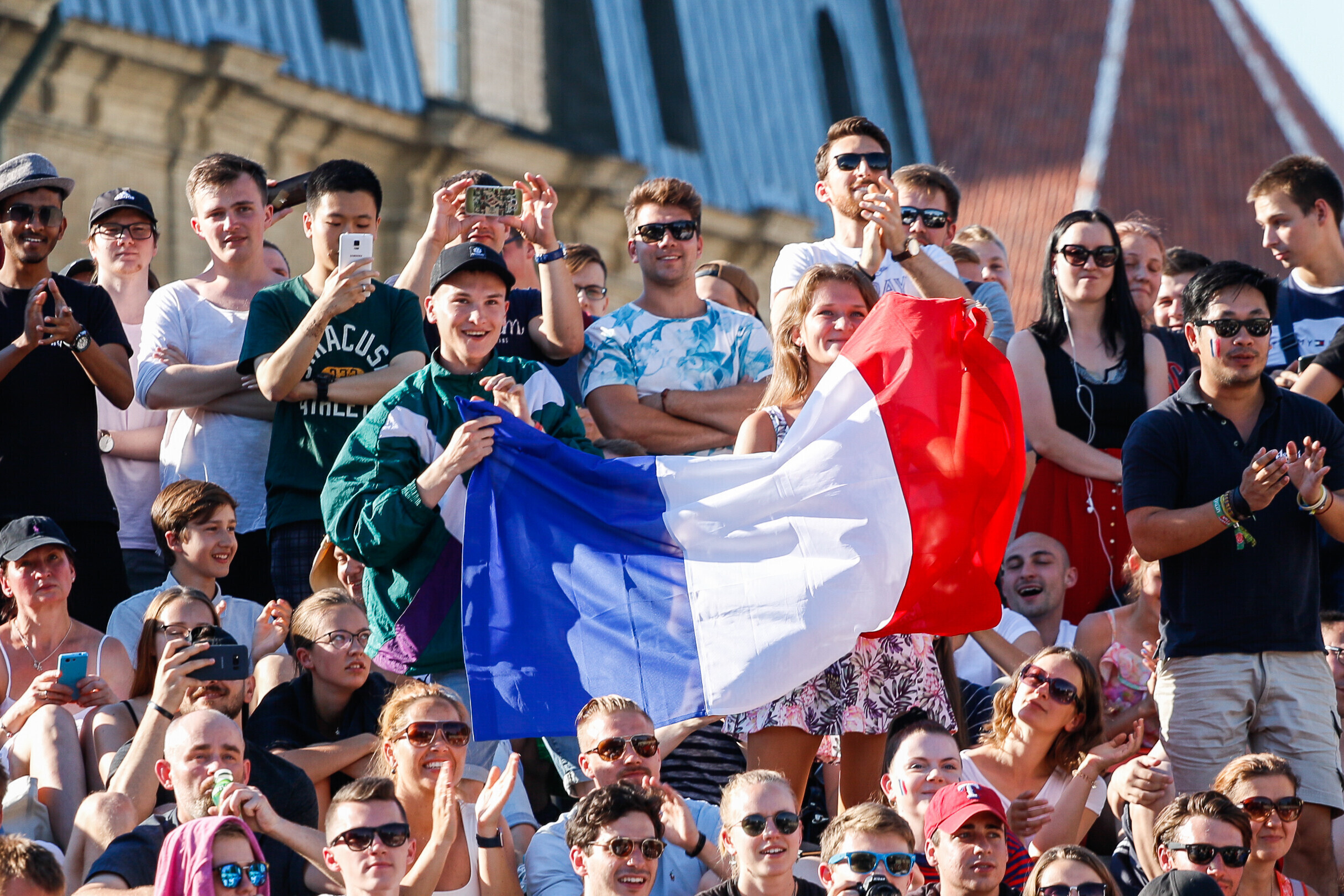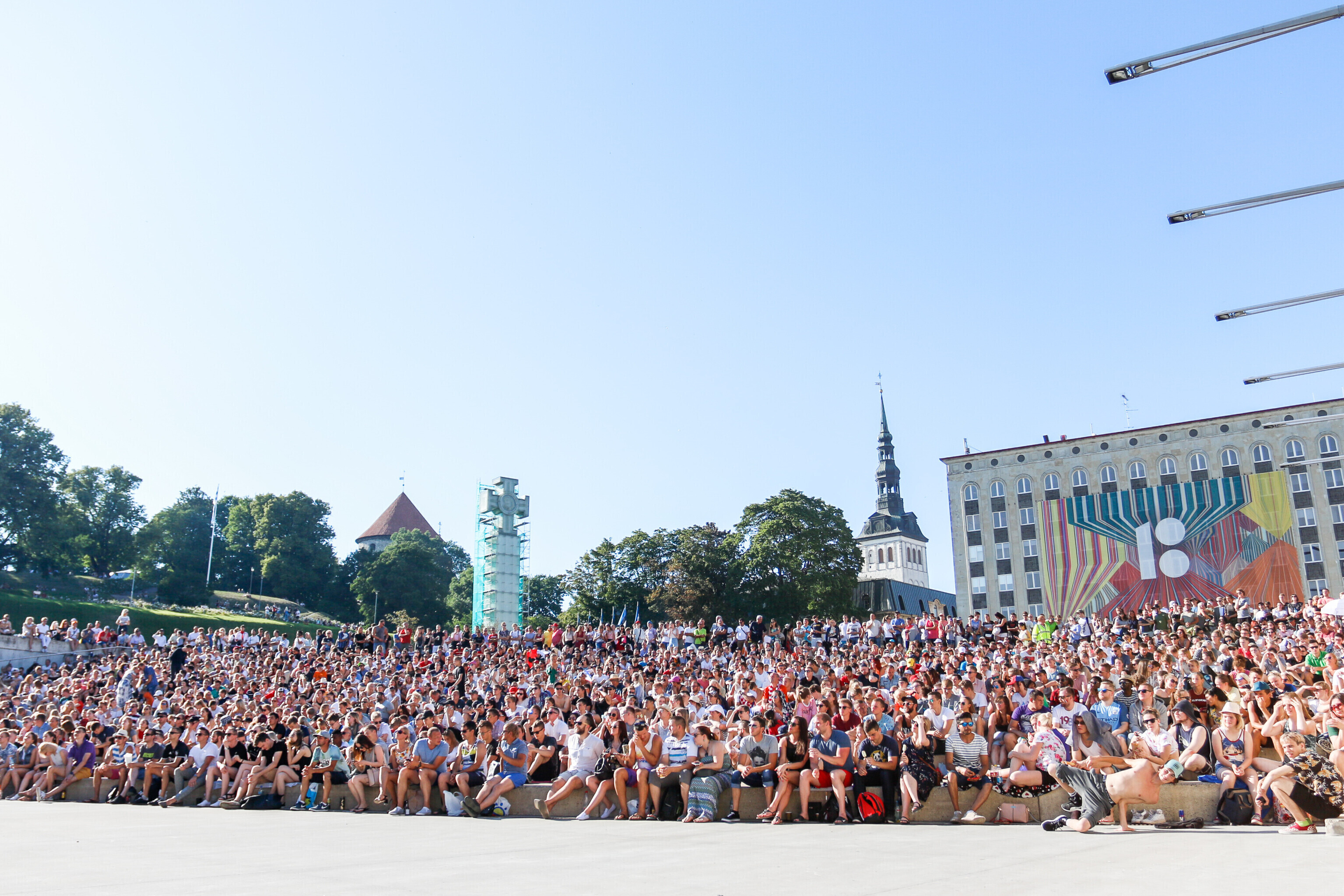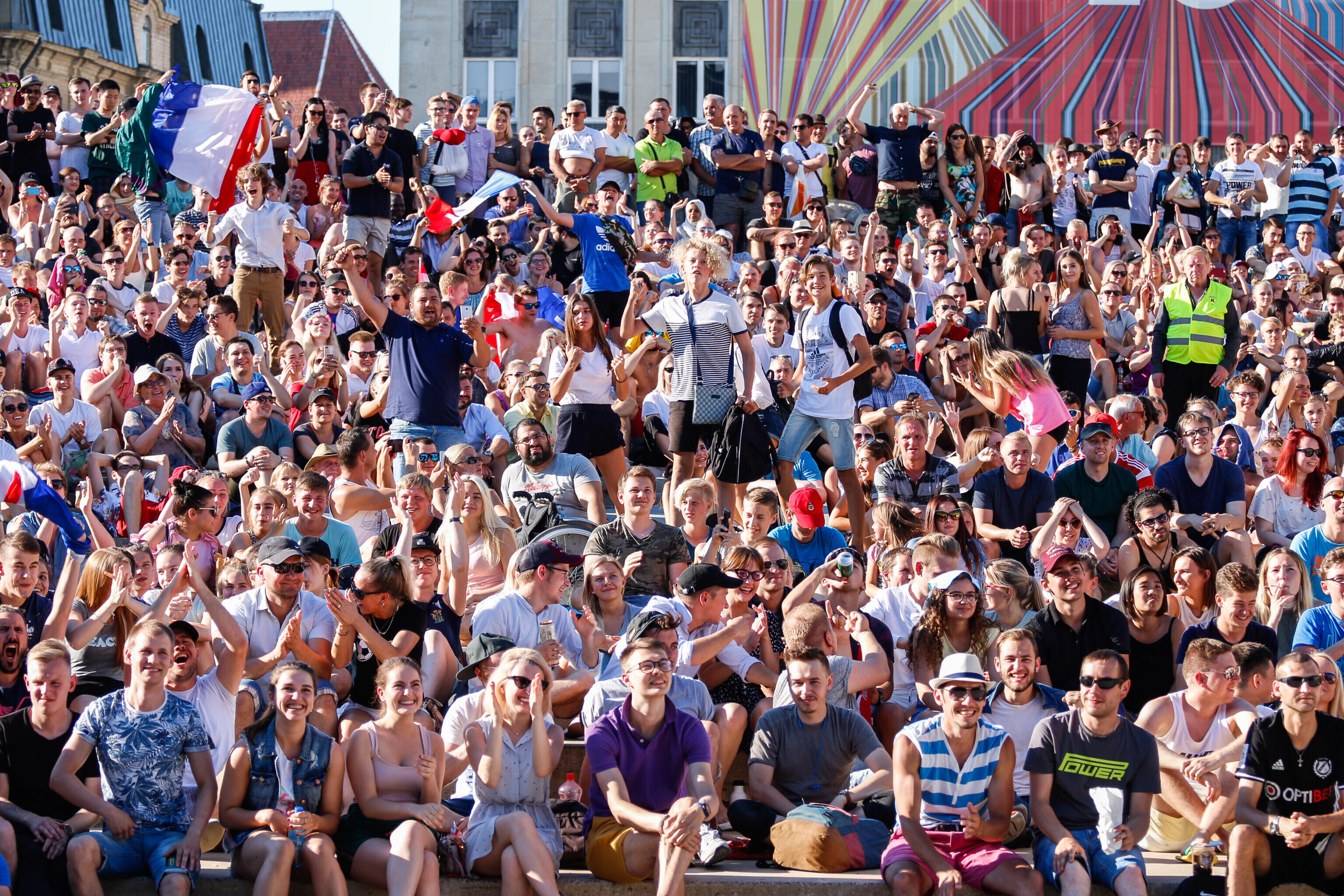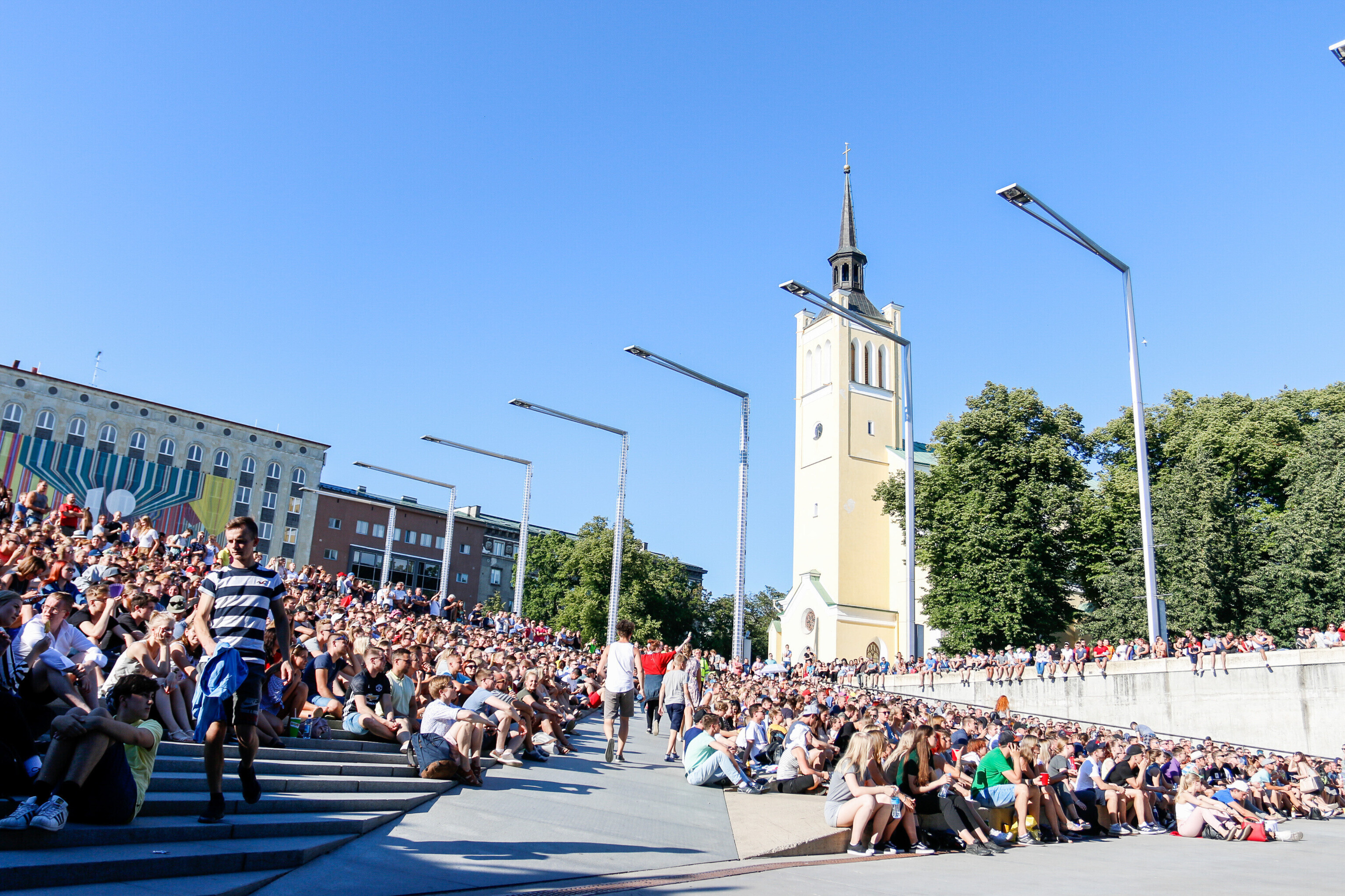 В воскресенье вечером любители футбола собрались в центре Таллинна на площади Вабадузе, чтобы посмотреть финальный поединок чемпионата мира-2018 между сборными Франции и Хорватии.