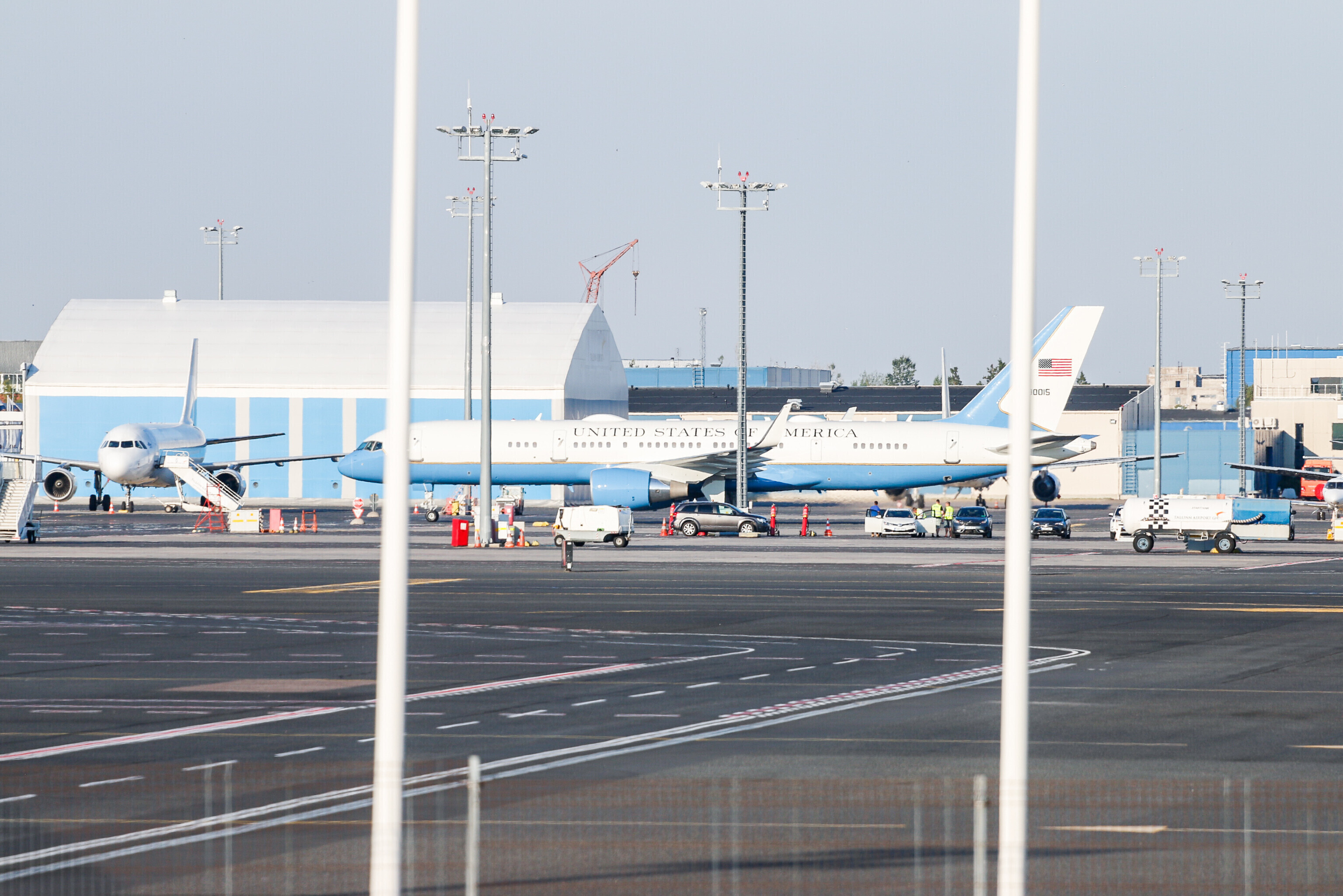 В воскресенье, 15 июля, в Таллиннском аэропорту приземлились запасной самолет президента США Дональда Трампа и сопровождающий его транспортный самолет.