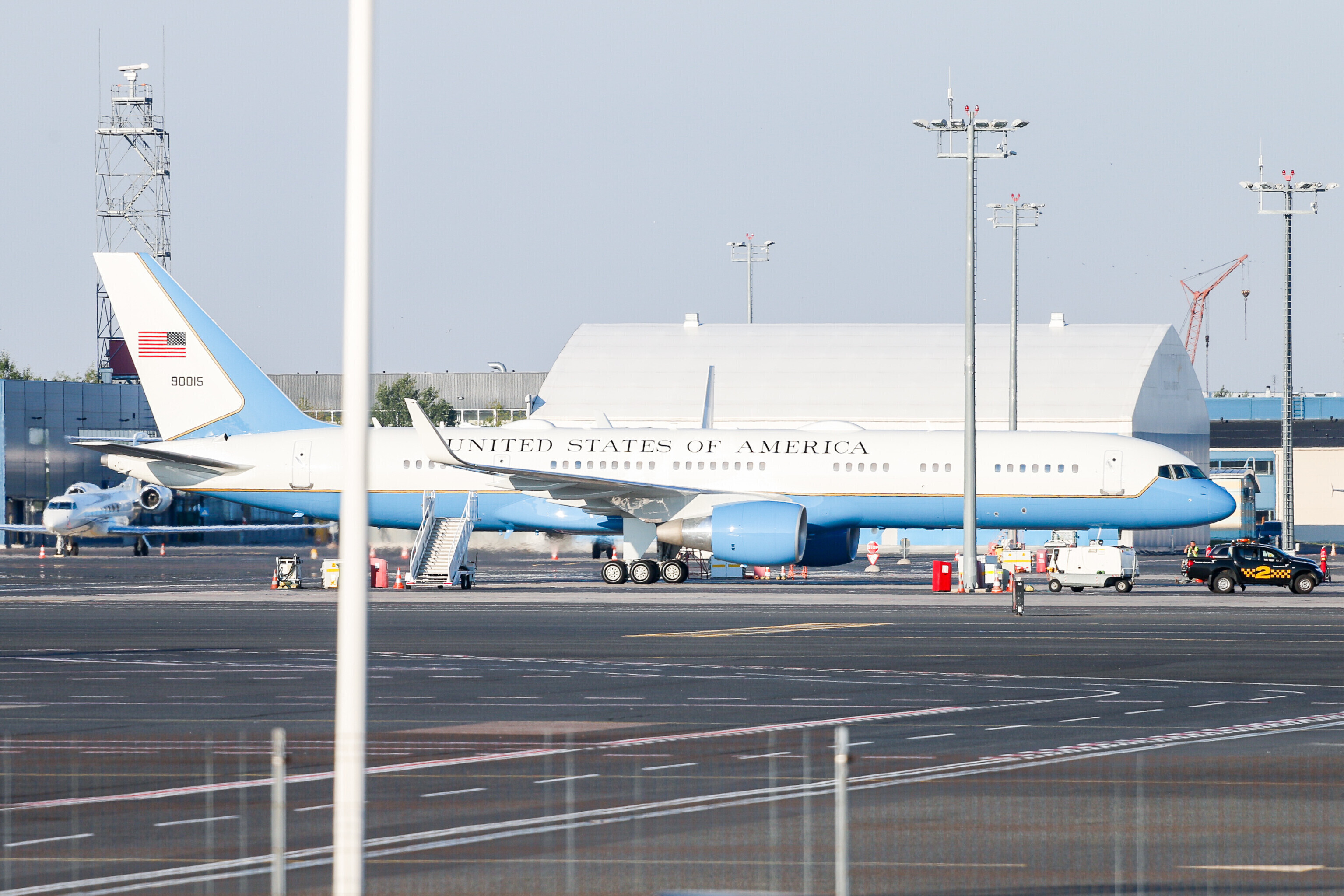 Оба воздушных судна - транспортный самолет Военно-воздушных сил США, а также запасной борт американского лидера Boeing C-32 - пробудут в режиме ожидания в Таллиннском аэропорту до завершения саммита в Хельсинки в понедельник.