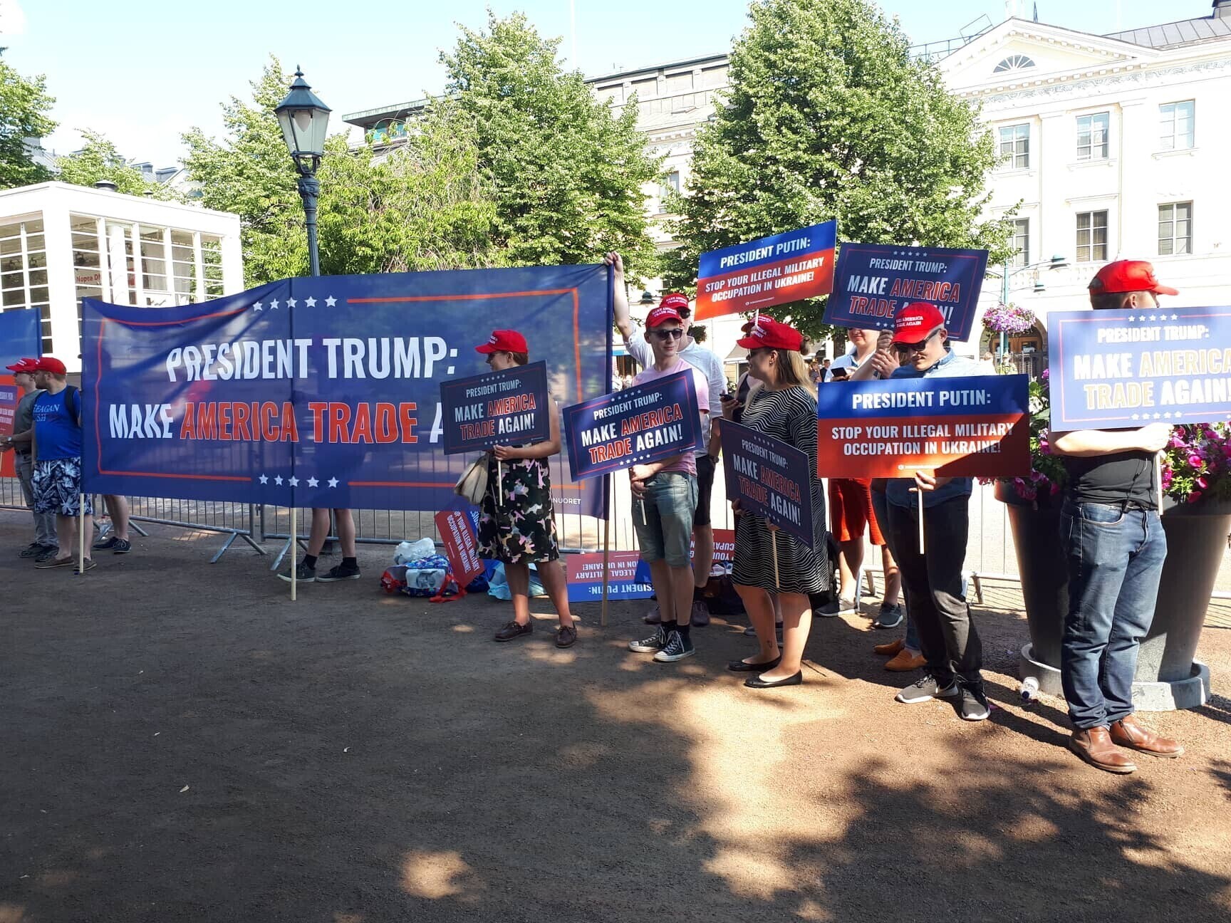 Кроме митингов, на остановках крупнейшая финская газета Helsingin Sanomat разместила плакаты, указывающие на то, что президенты США и России не любят СМИ: "Господин президент! Добро пожаловать в страну свободной прессы!", "Путин снова старается подчинить СМИ", "Трамп назвал СМИ врагом народа", "Журналисты, которые задают вопросы Путину, попадают в неприятности".