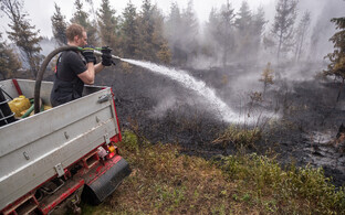 В городе Нарва-Йыэсуу Ида-Вируского уезда в пятницу возник лесной пожар на площади 5-6 гектаров, который к настоящему моменту удалось взять под контроль благодаря оперативным действиям спасателей и привлечению вертолета Департамента полиции и погранохраны. Поскольку для тушения пожара происходит забор воды из реки Нарва, водителей просят не пользоваться шоссе между Нарвой и Нарва-Йыэсуу.