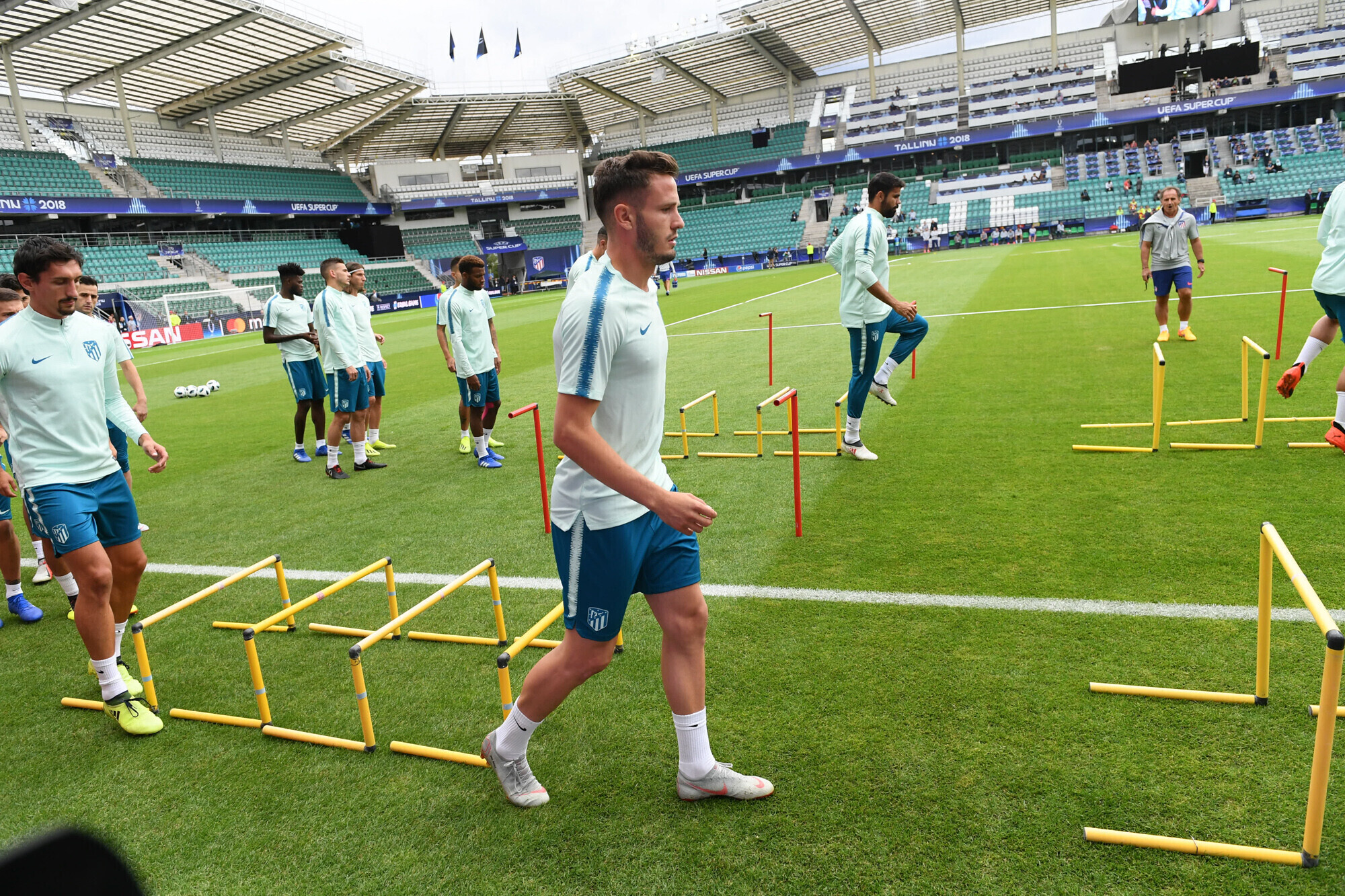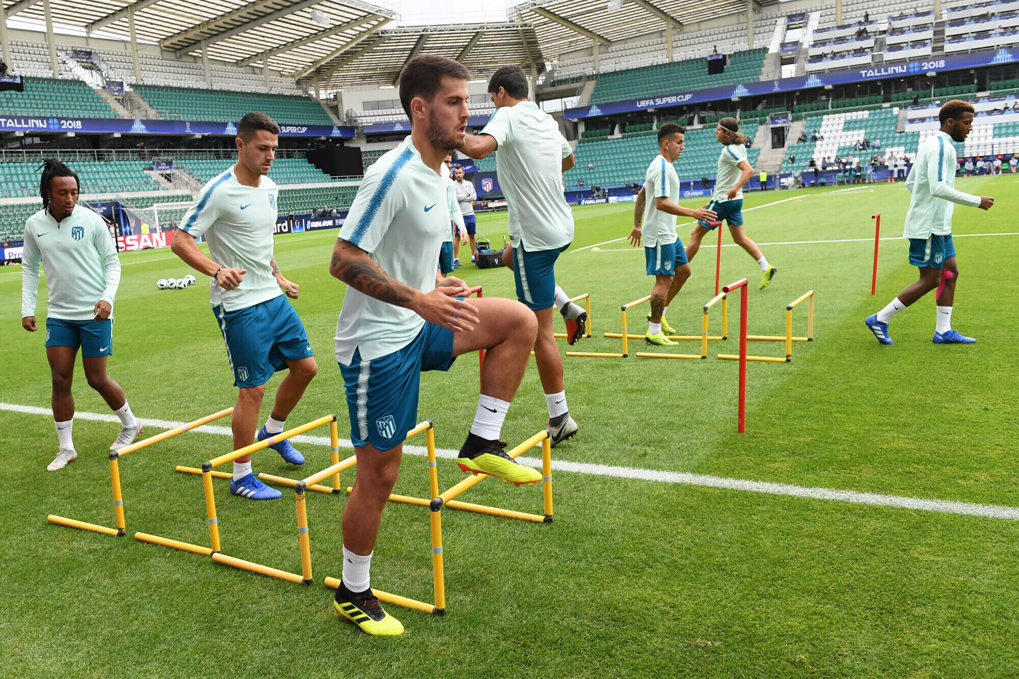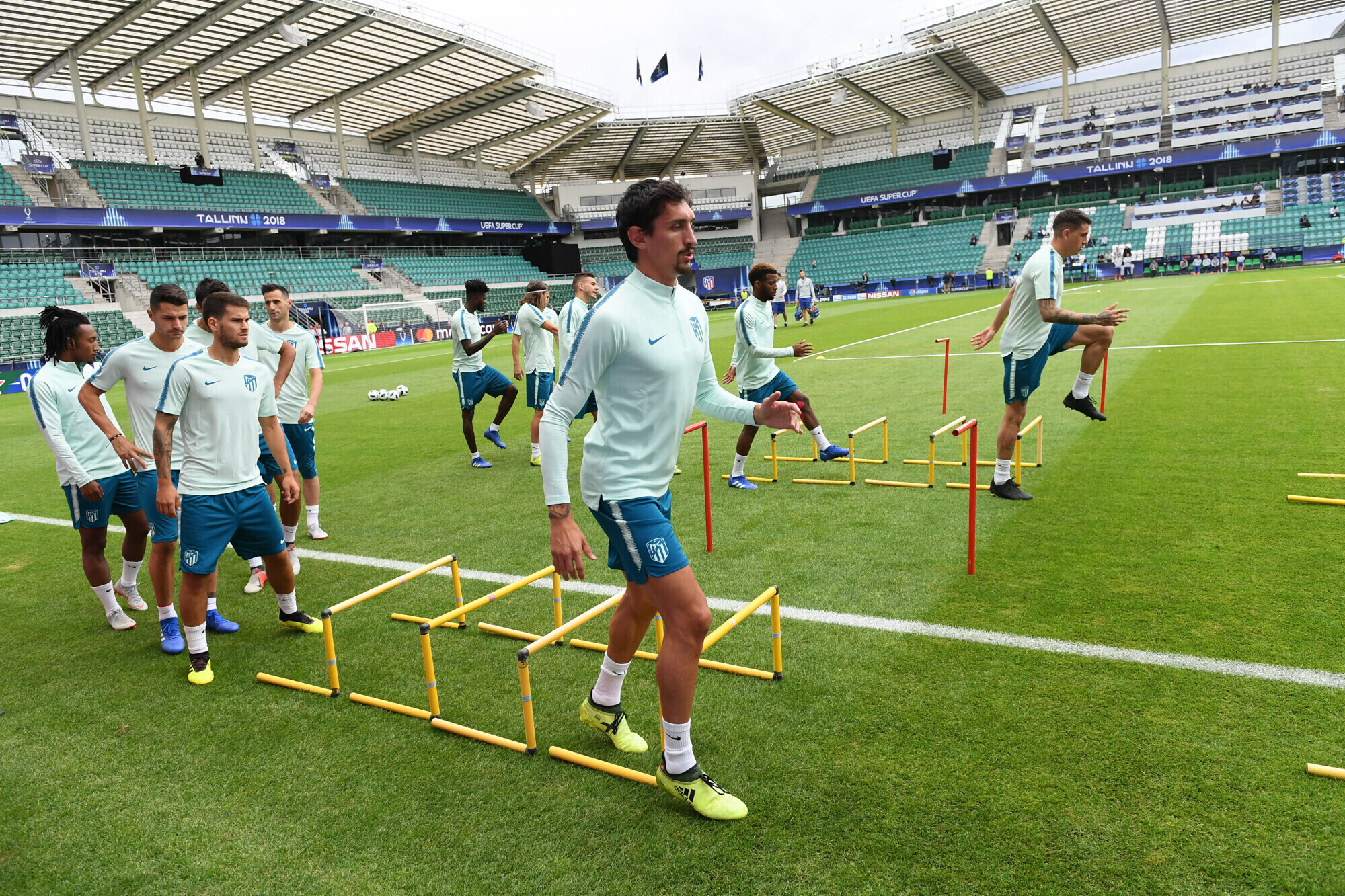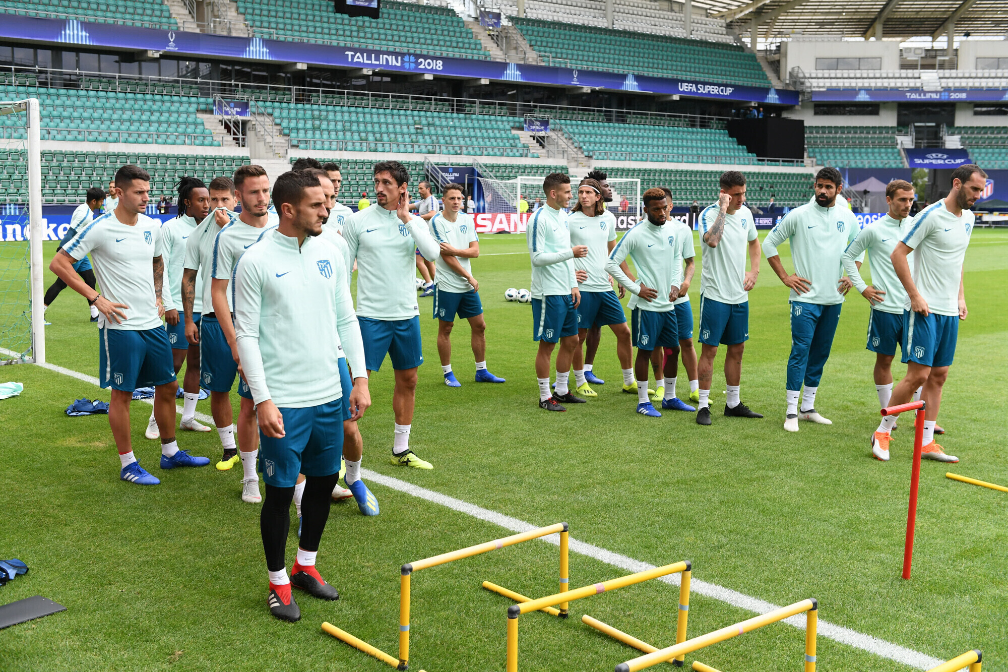 Накануне вечером футболисты "Атлетико" в рамках подготовки к матчу за Суперкубок УЕФА против "Реала" провели тренировку на стадионе "А. Ле Кок Арена" в Таллинне.