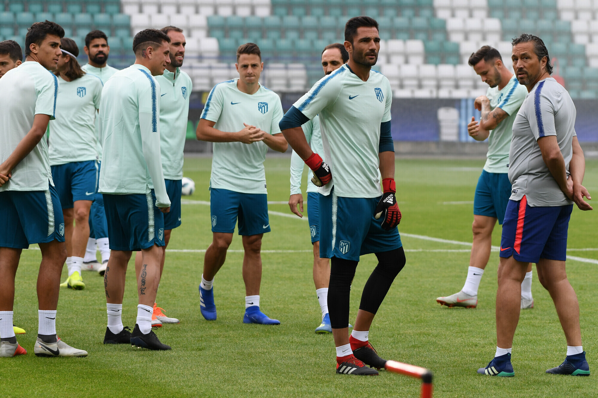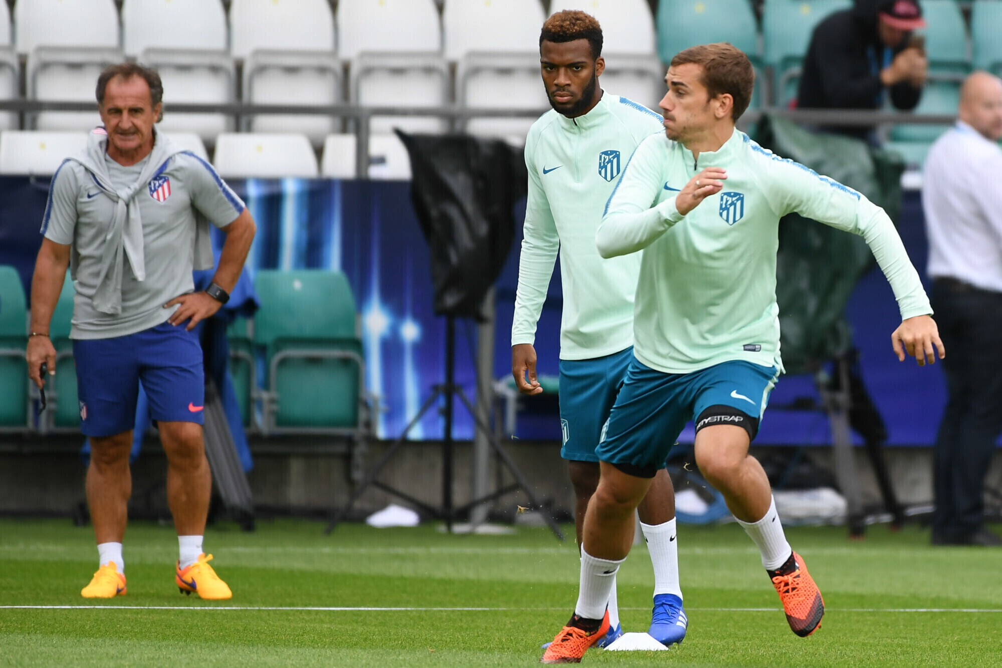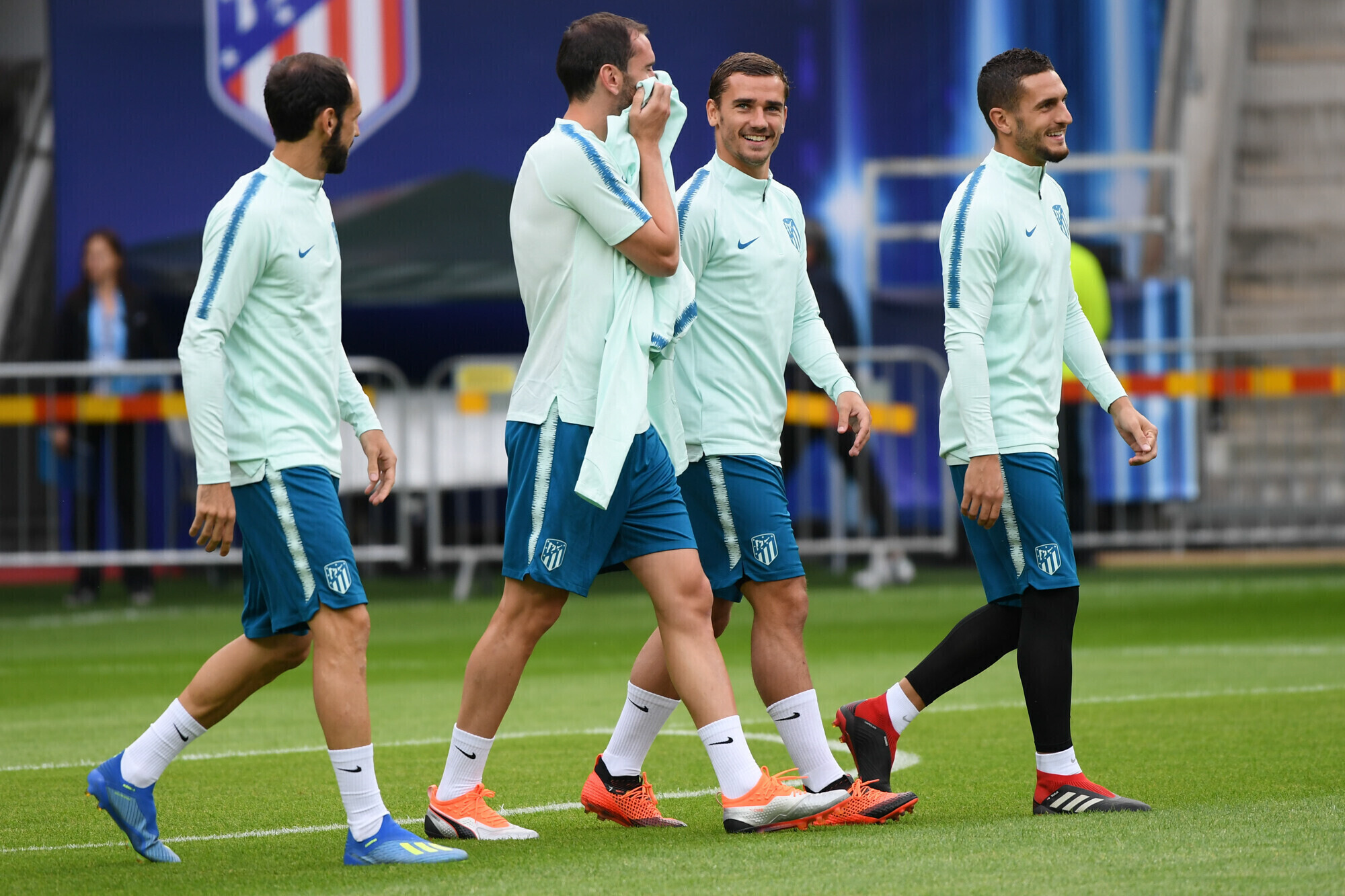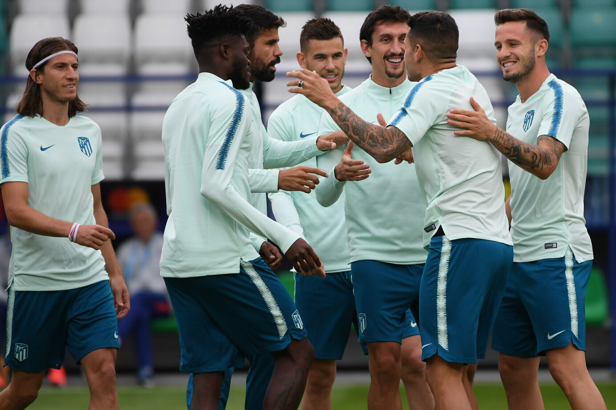 Накануне вечером футболисты "Атлетико" в рамках подготовки к матчу за Суперкубок УЕФА против "Реала" провели тренировку на стадионе "А. Ле Кок Арена" в Таллинне.