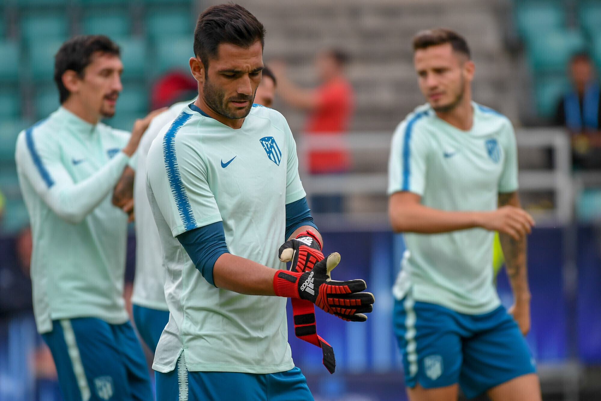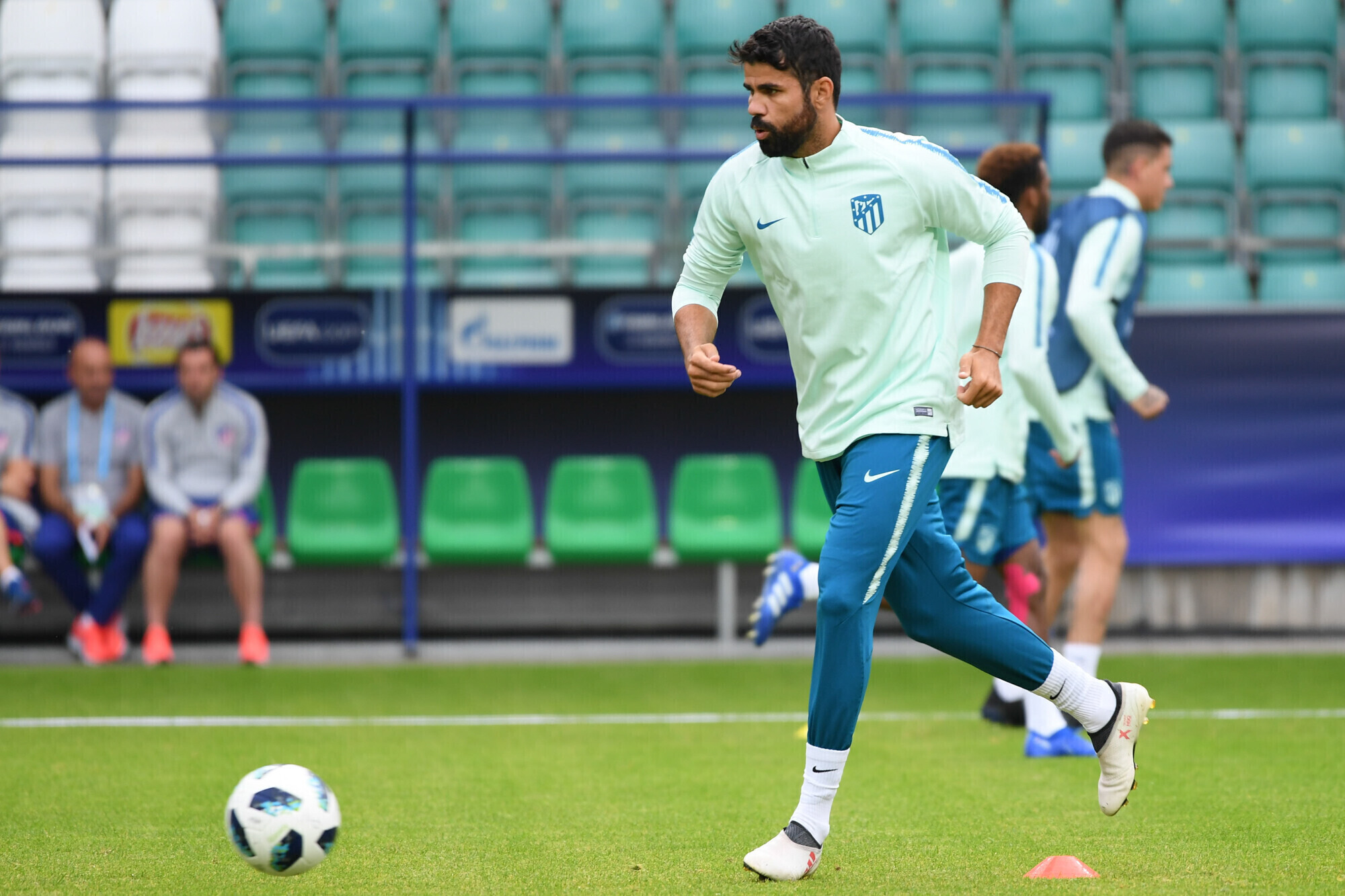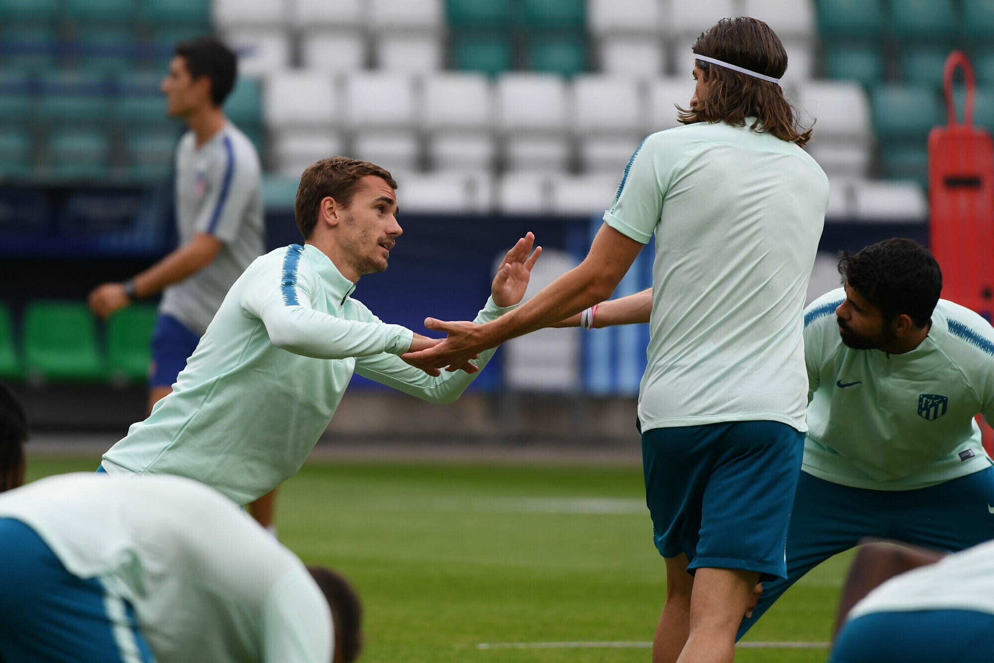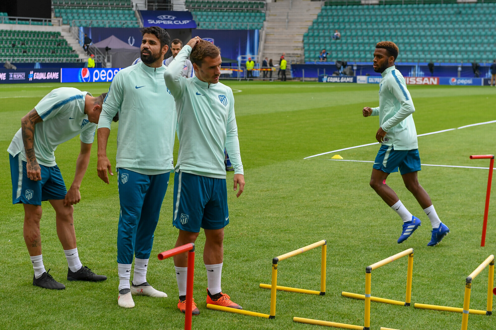 Накануне вечером футболисты "Атлетико" в рамках подготовки к матчу за Суперкубок УЕФА против "Реала" провели тренировку на стадионе "А. Ле Кок Арена" в Таллинне.
