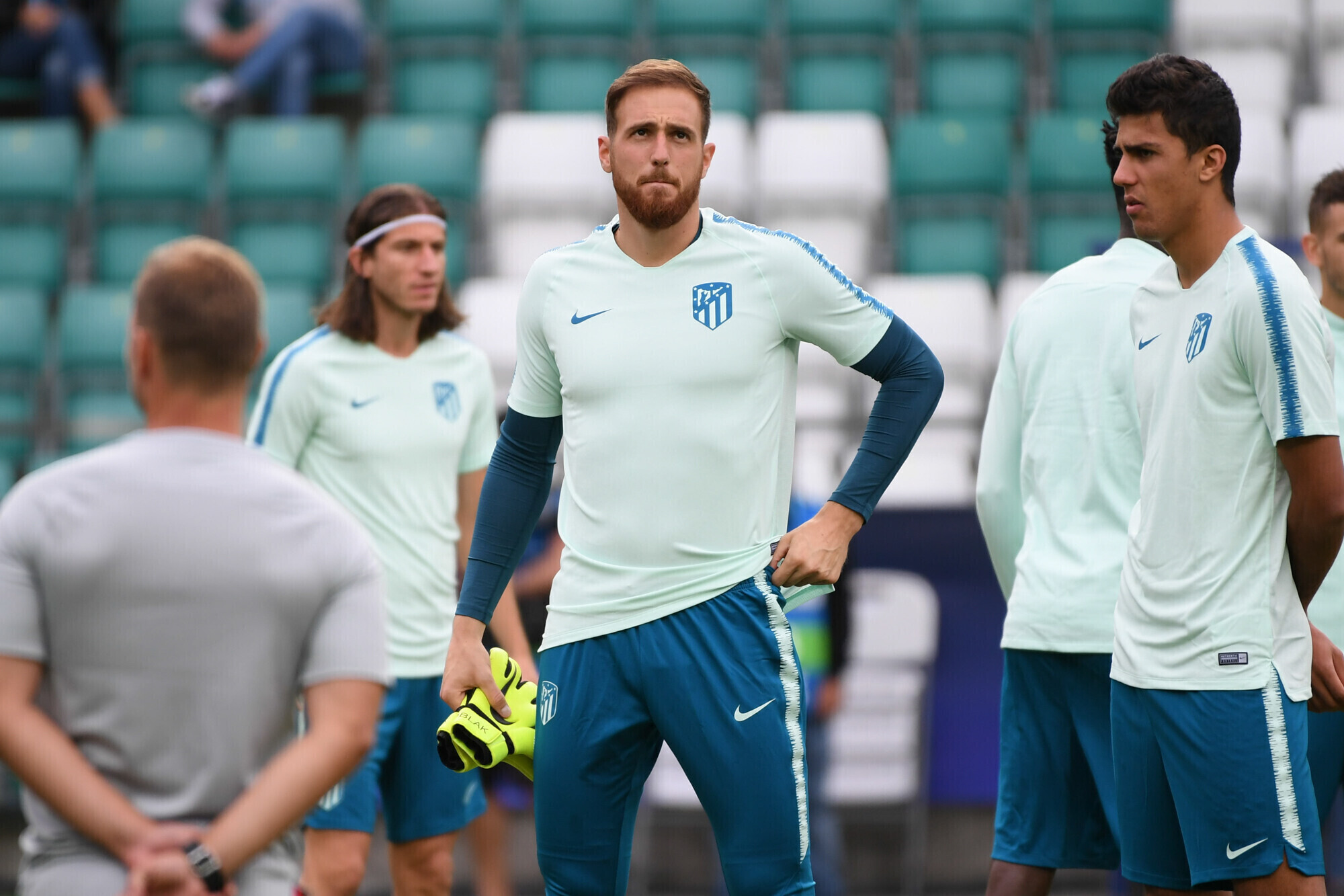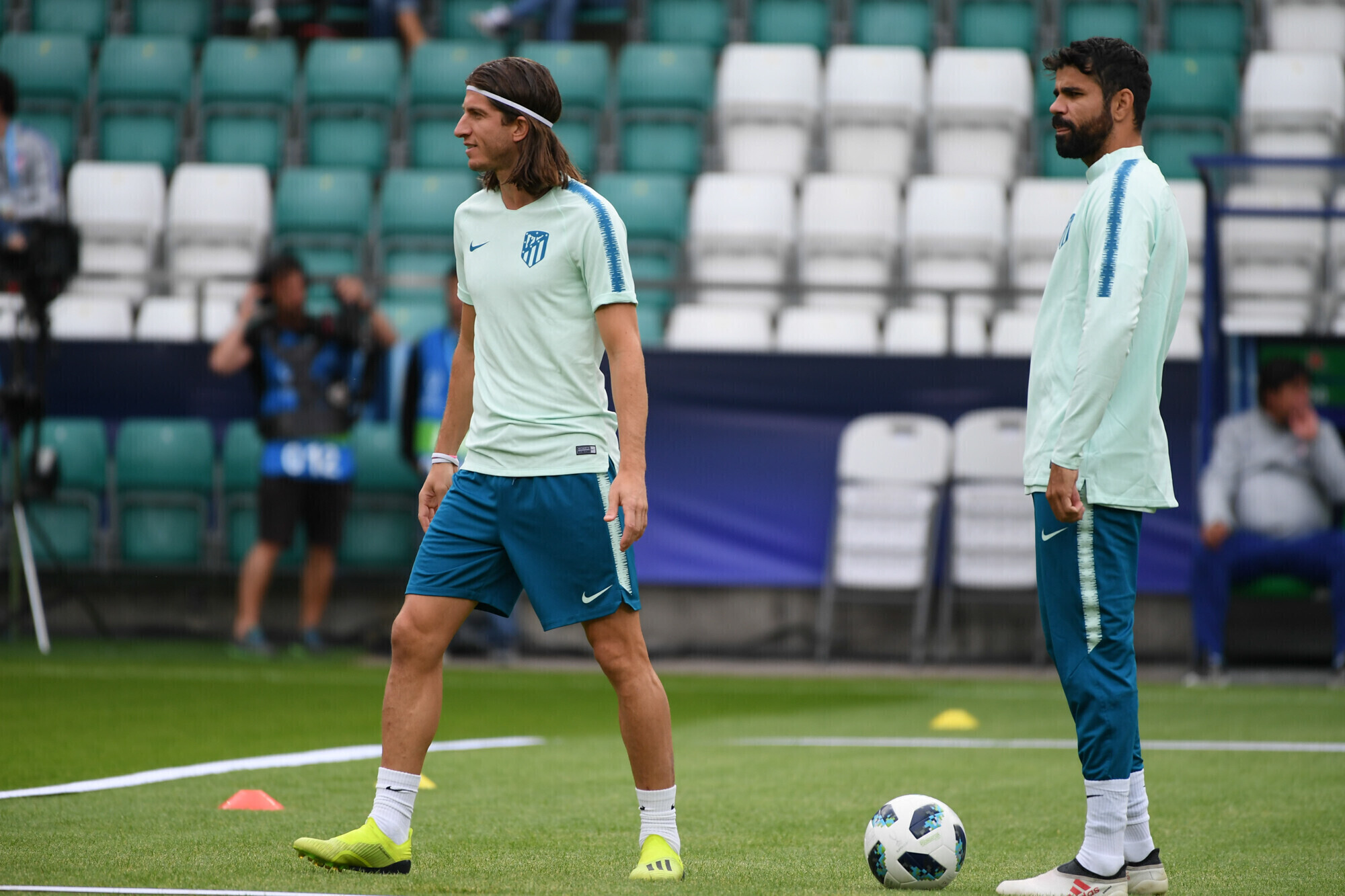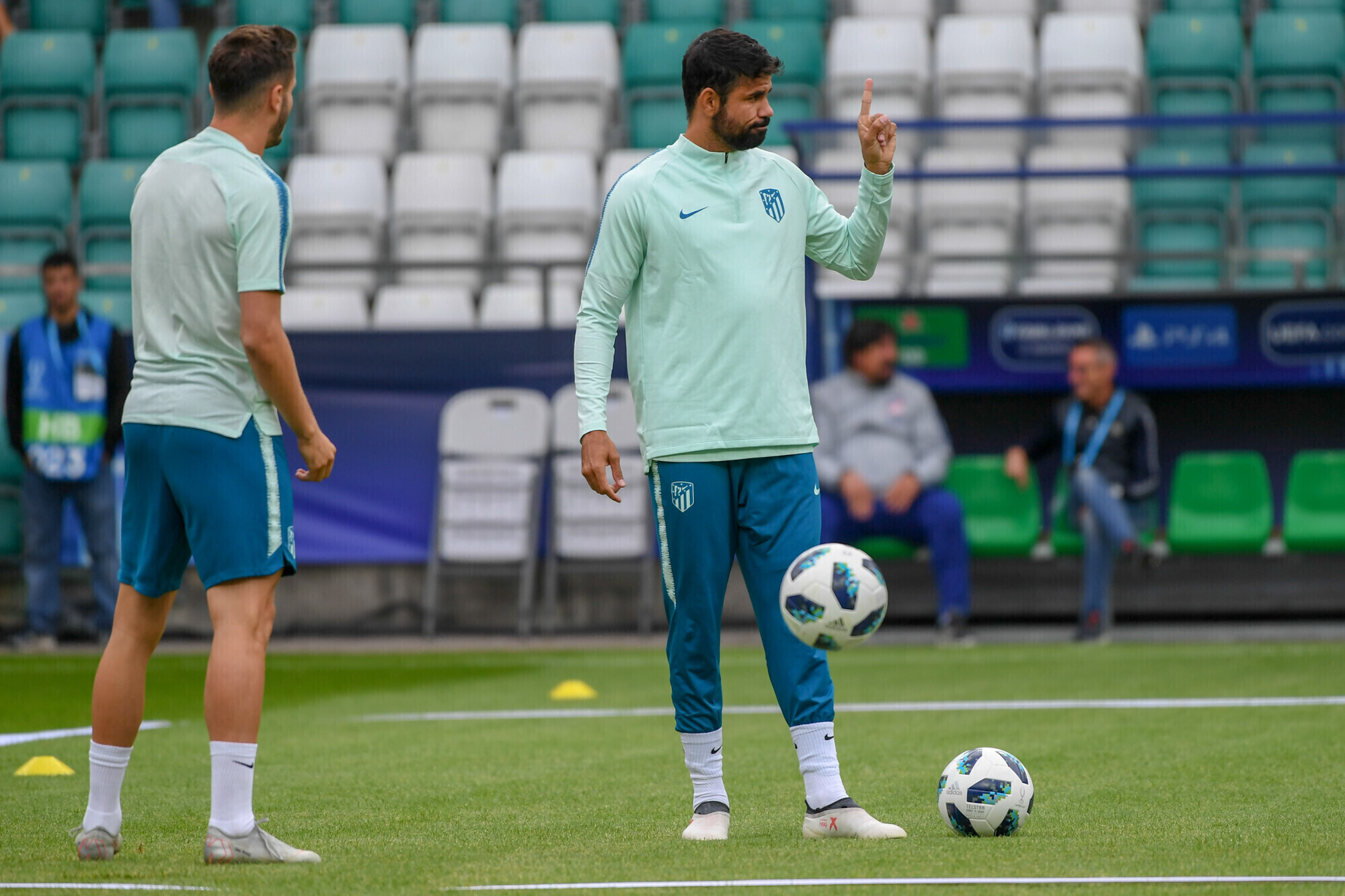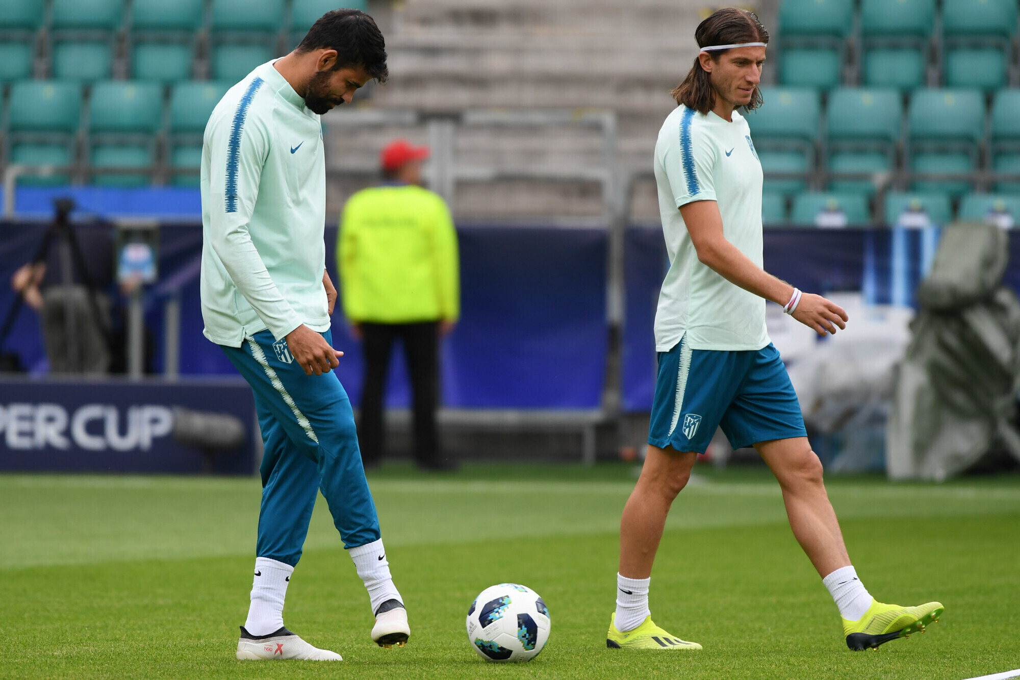 Накануне вечером футболисты "Атлетико" в рамках подготовки к матчу за Суперкубок УЕФА против "Реала" провели тренировку на стадионе "А. Ле Кок Арена" в Таллинне.
