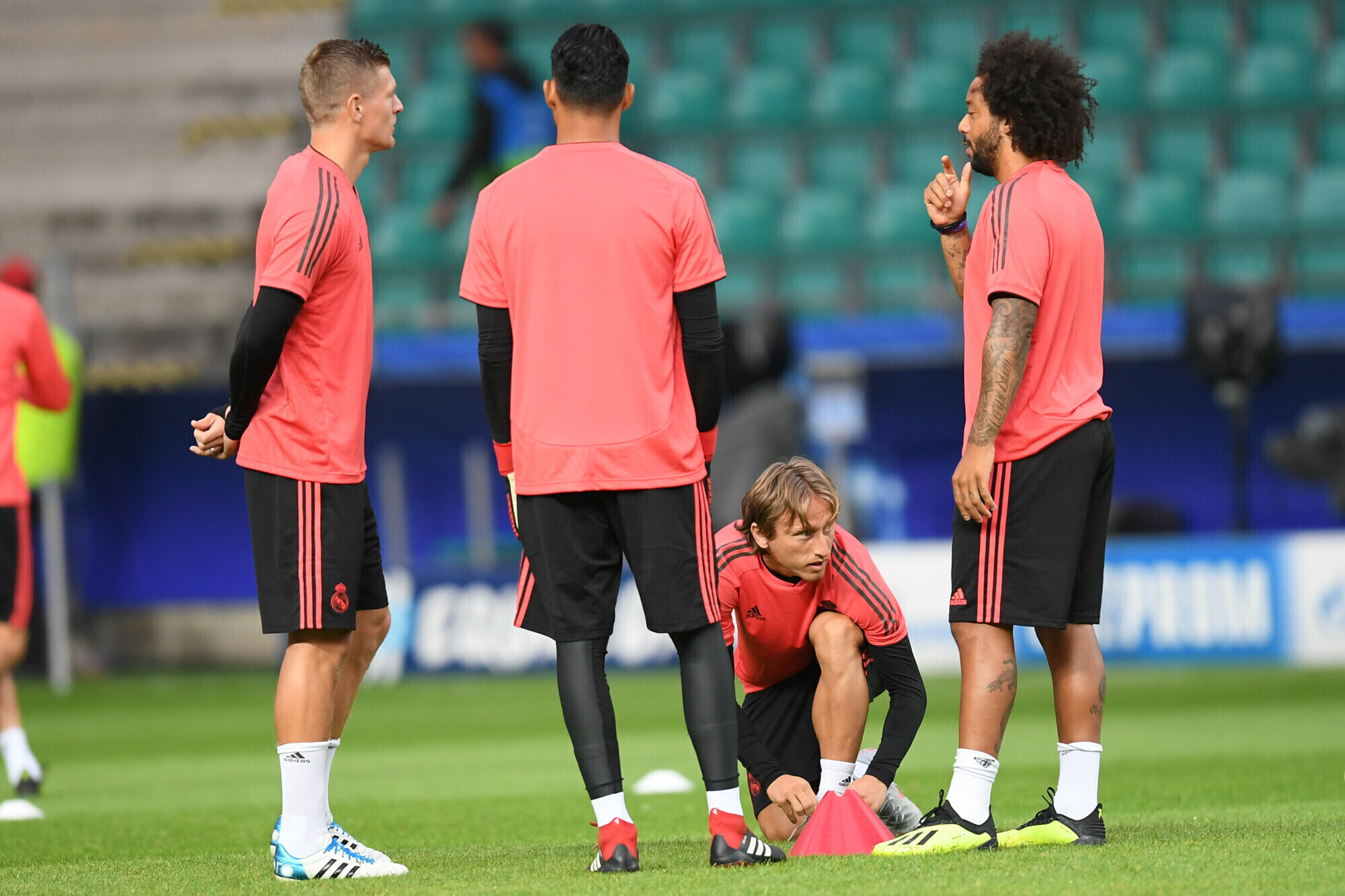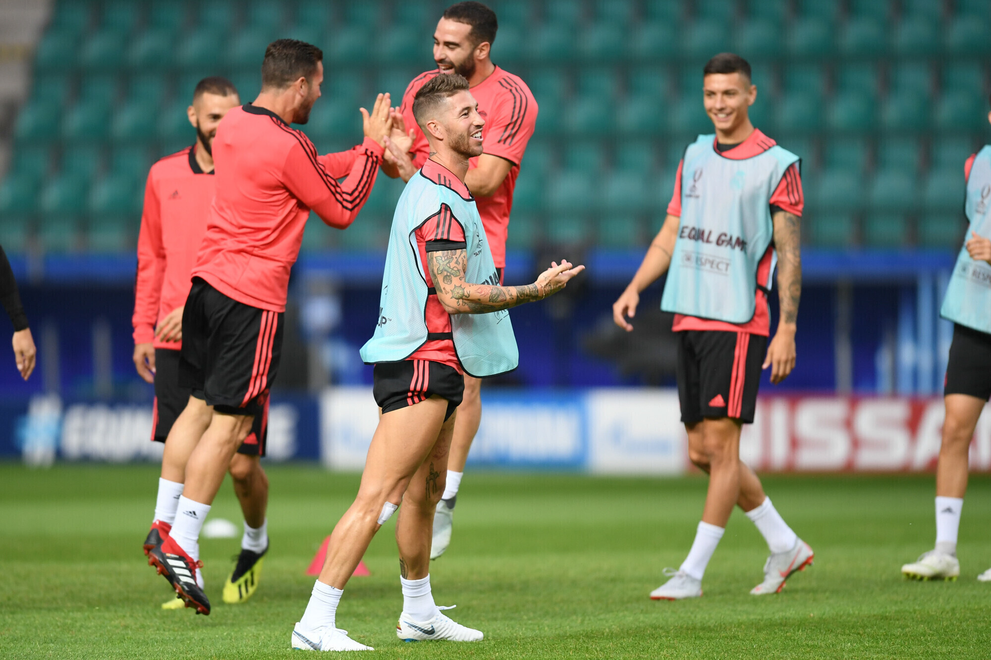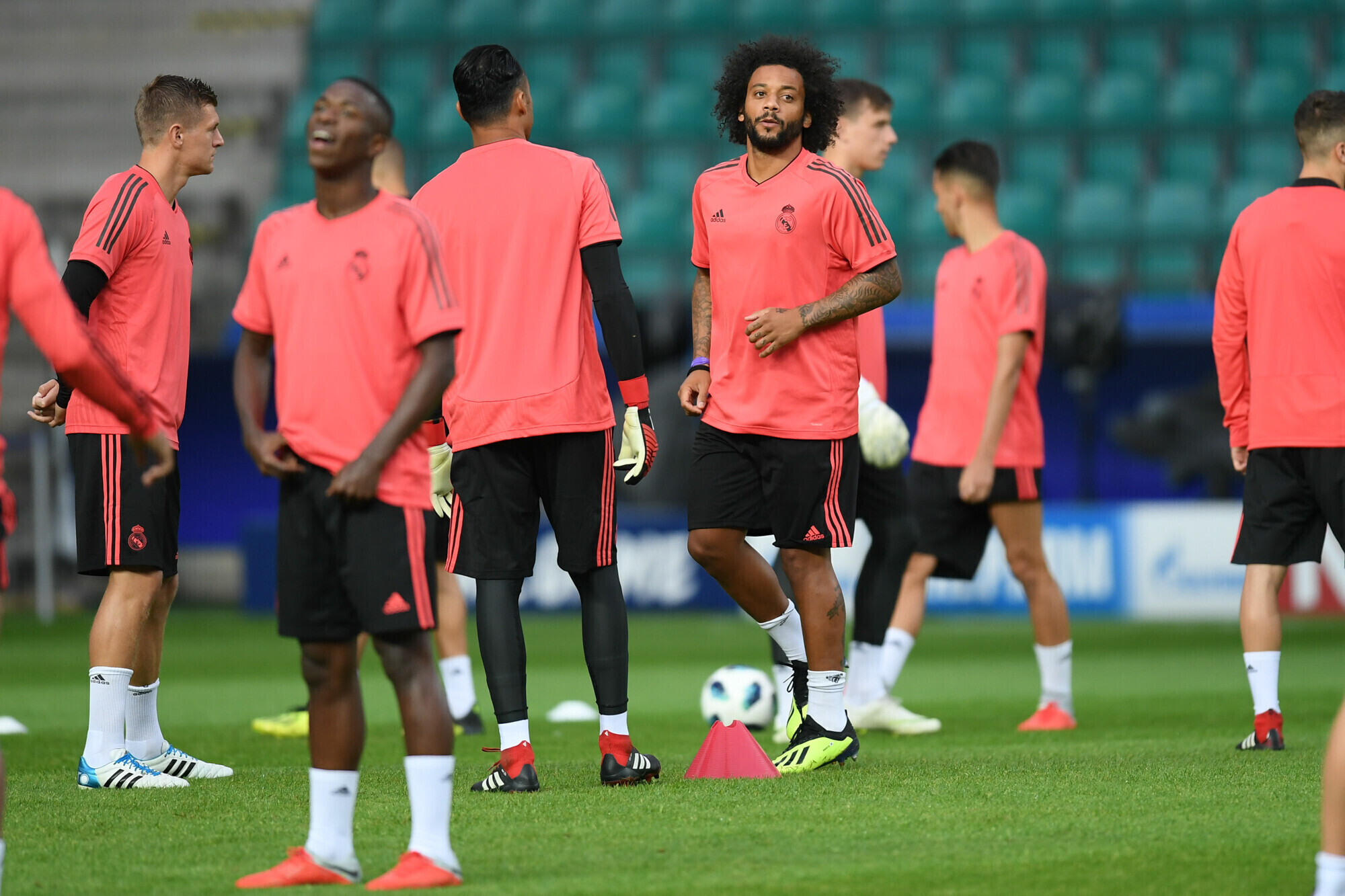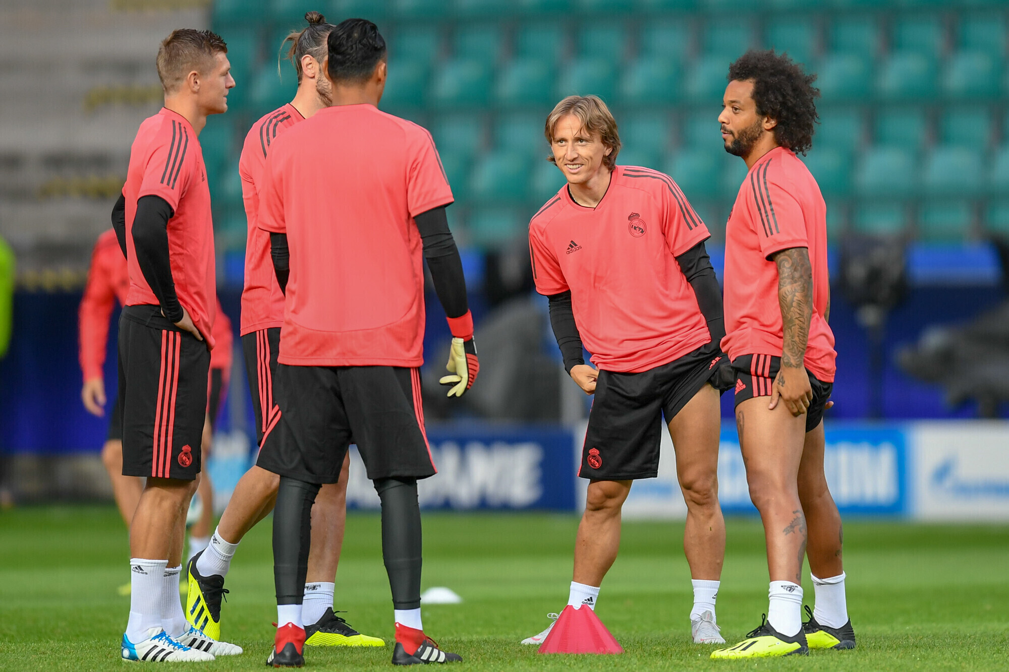 Накануне вечером футболисты "Реала" в рамках подготовки к матчу за Суперкубок УЕФА против "Атлетико" провели тренировку на стадионе "А. Ле Кок Арена" в Таллинне.
