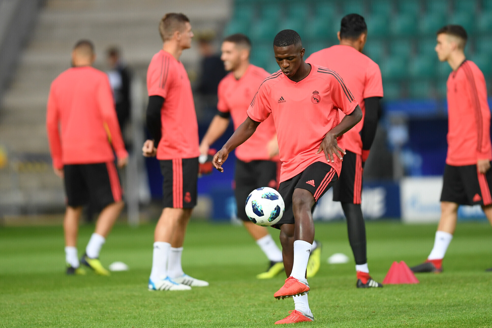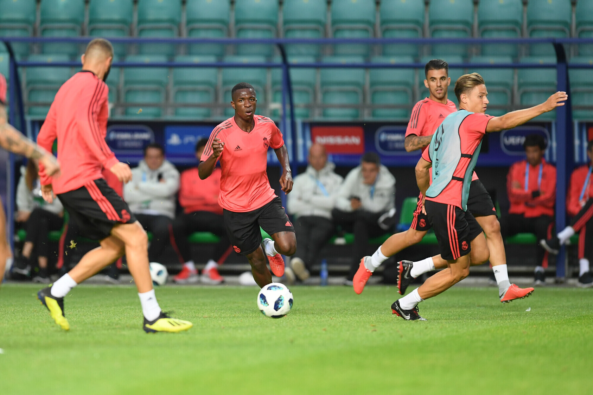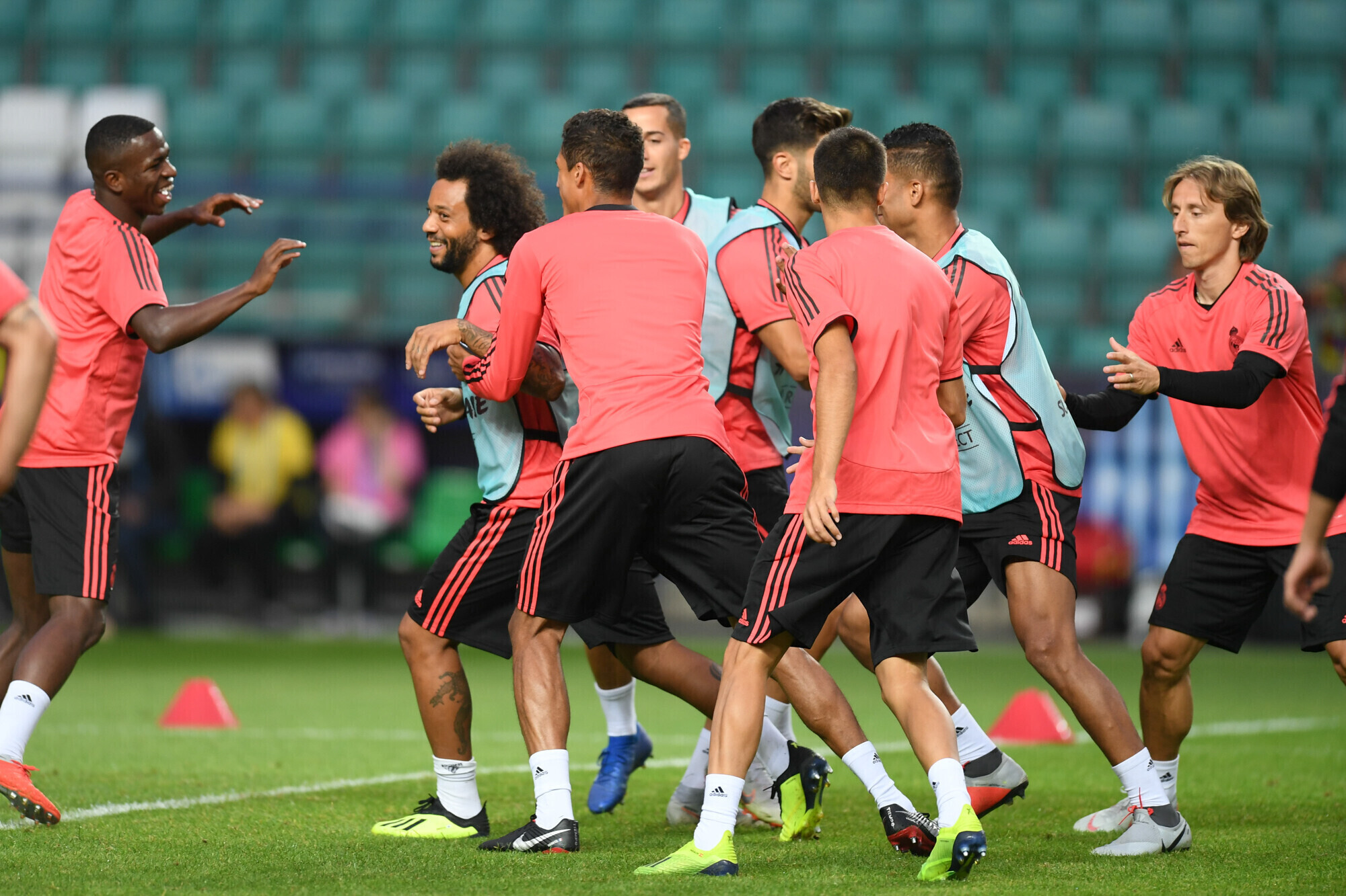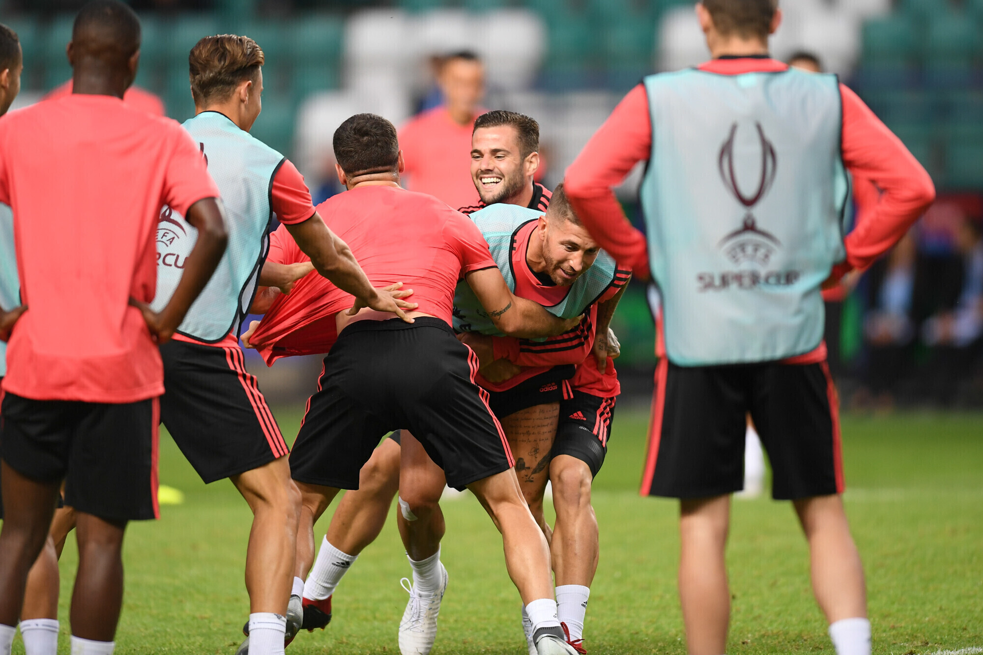 Накануне вечером футболисты "Реала" в рамках подготовки к матчу за Суперкубок УЕФА против "Атлетико" провели тренировку на стадионе "А. Ле Кок Арена" в Таллинне.