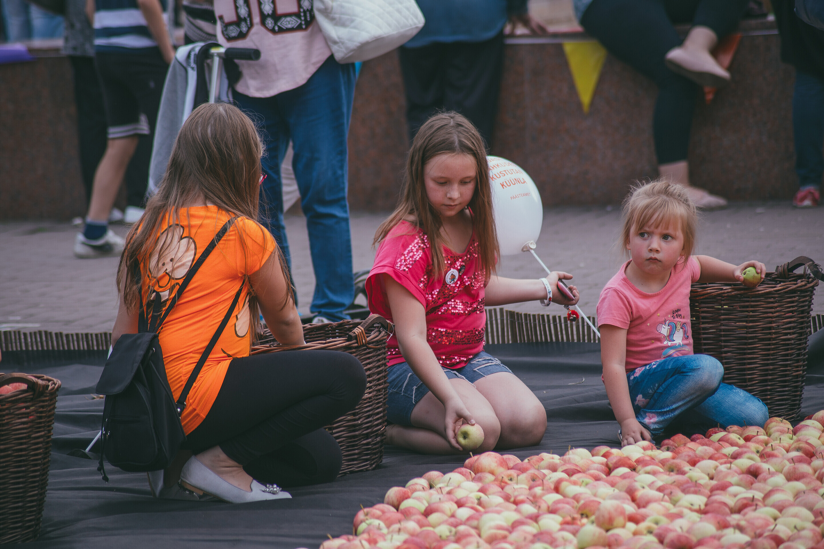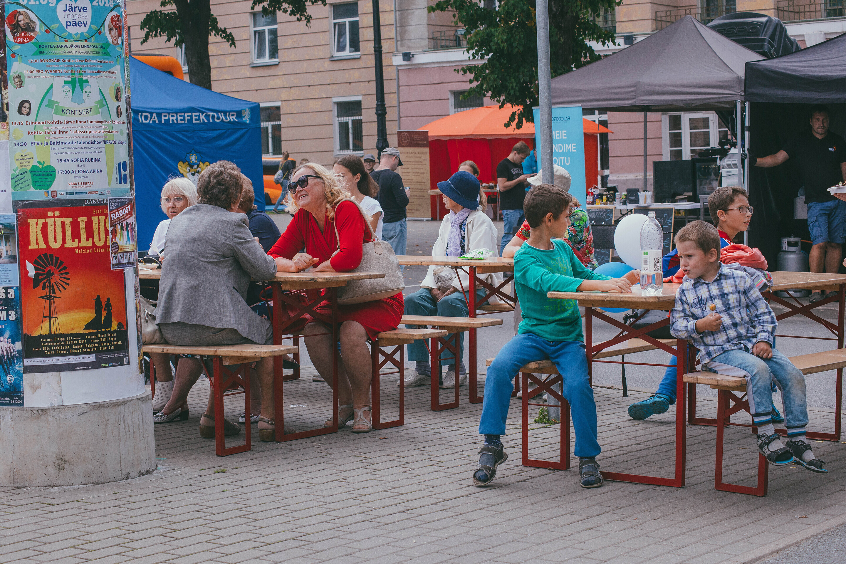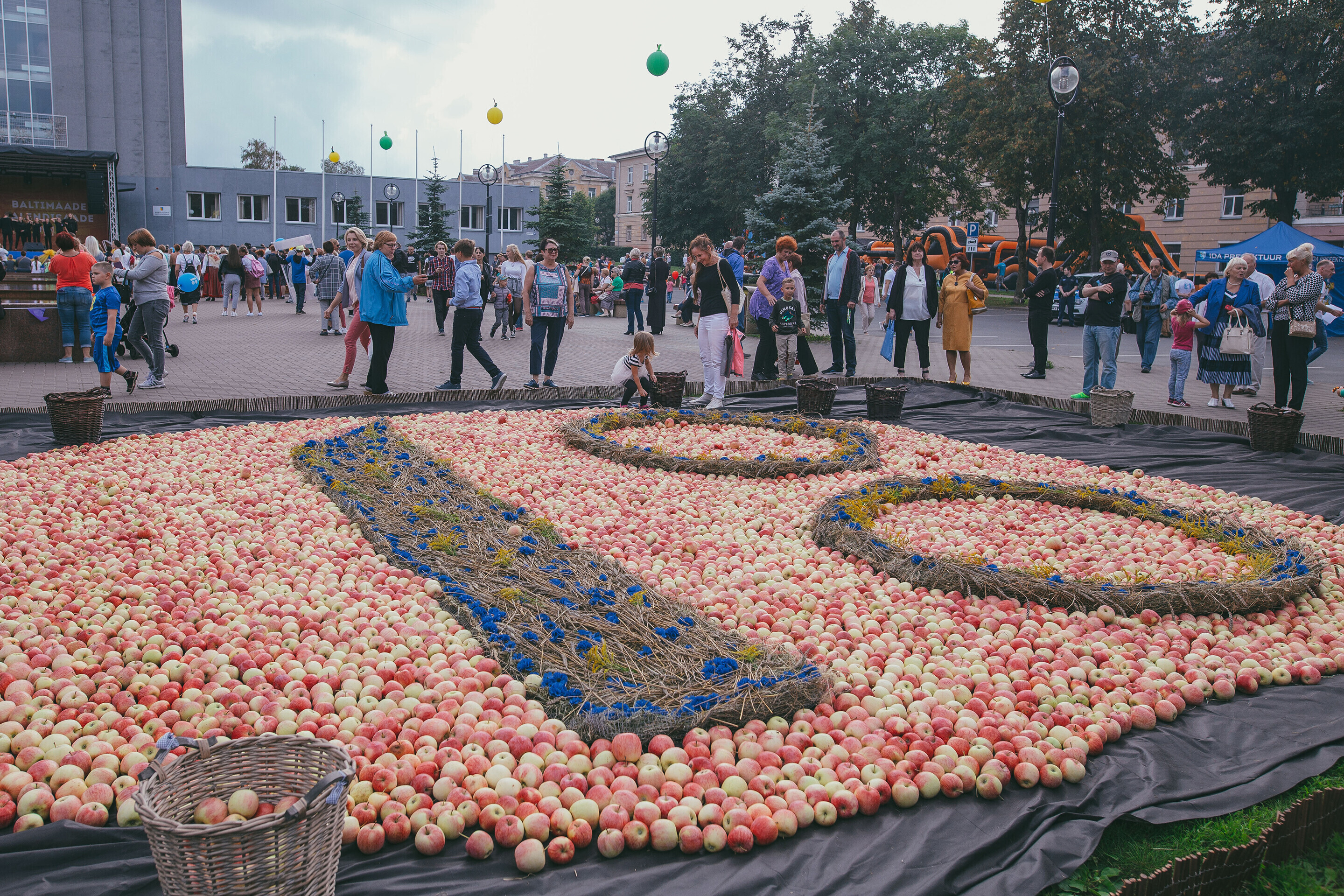 Участники постарше смогли насладиться уличной едой на "Ярмарке вкуса", которая впервые прошла в Ида-Вирумаа. Кульминацией вечера стала церемония выкладывания "яблочного ковра": одна тонна яблок, привезенных на праздник с разных уголков Эстонии, была выложена в полотно в форме логотипа "Эстонская Республика 100".