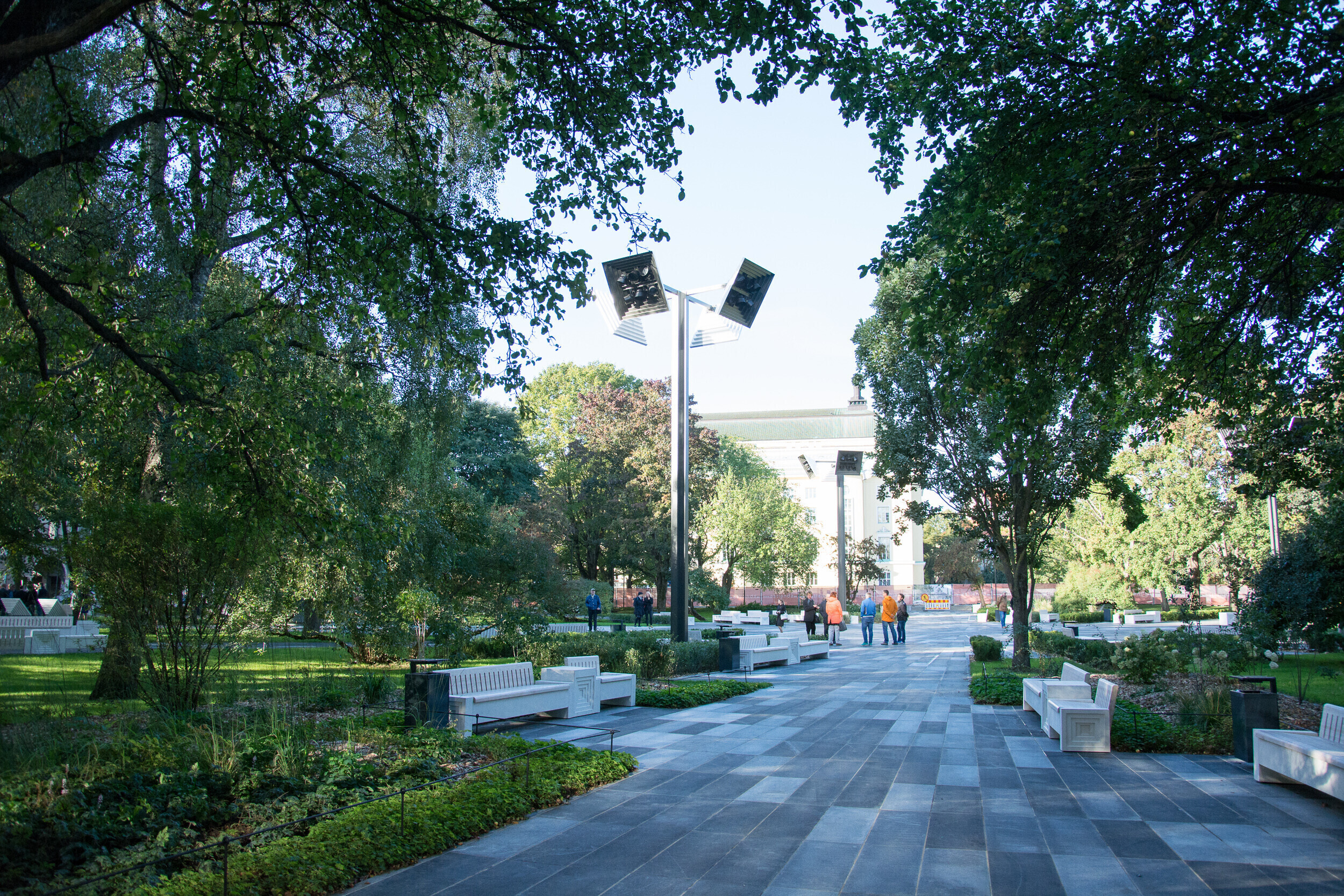 В парке было высажено около 80 лип и десятки других декоративных деревьев, а также 400 кустарников.
