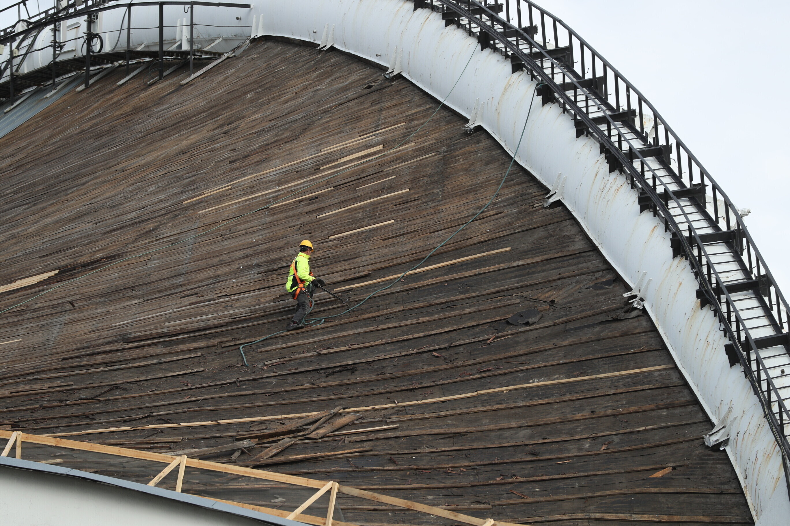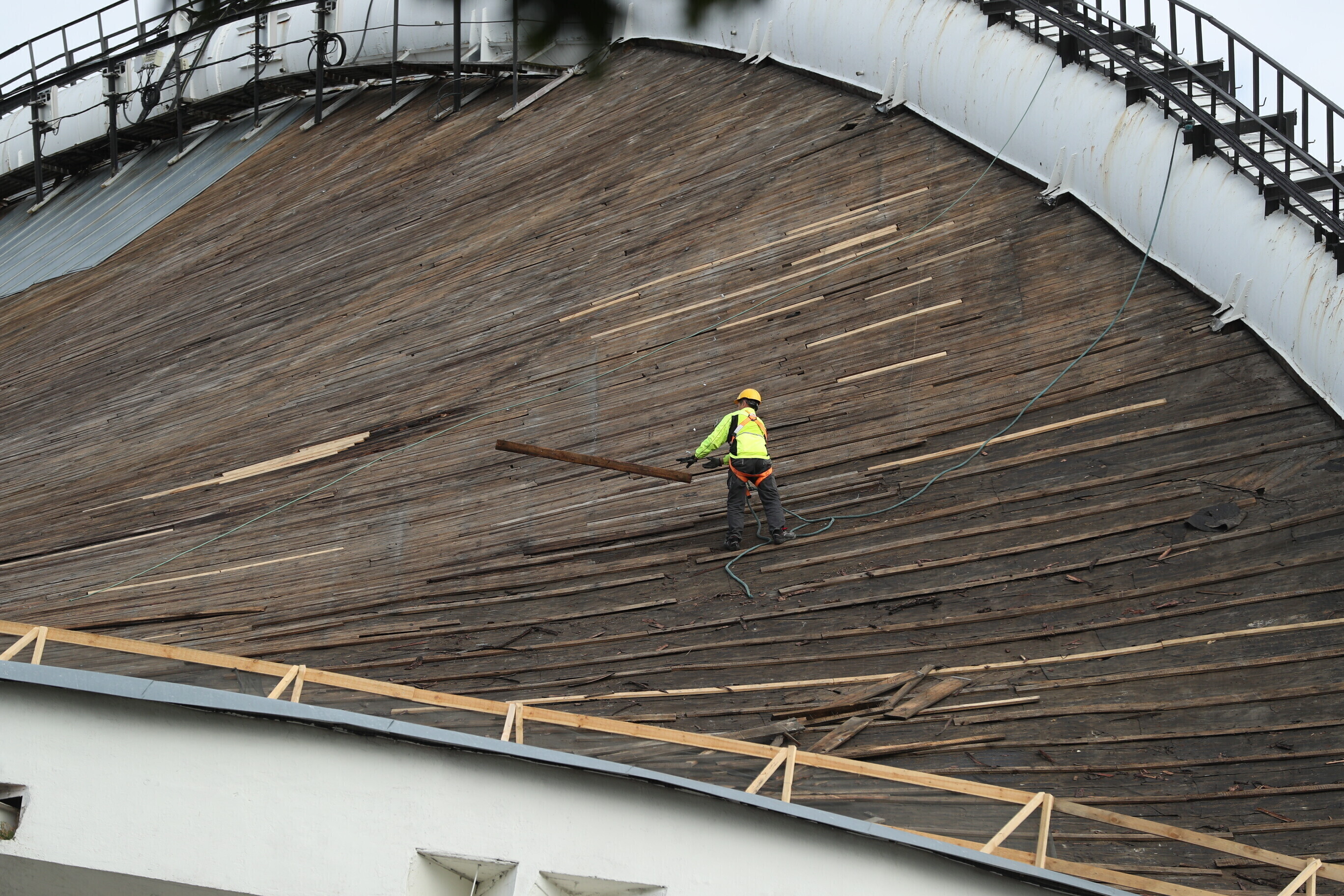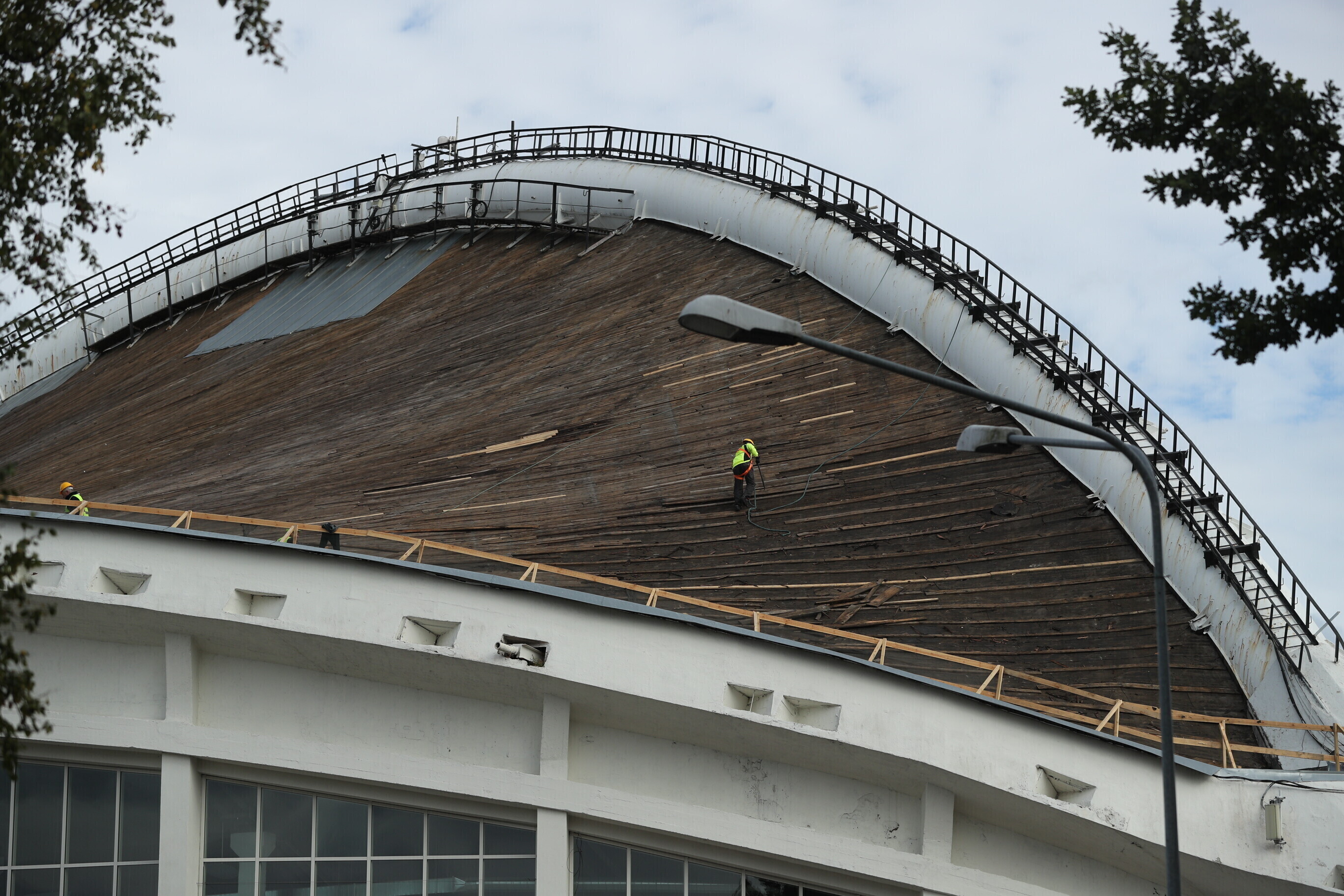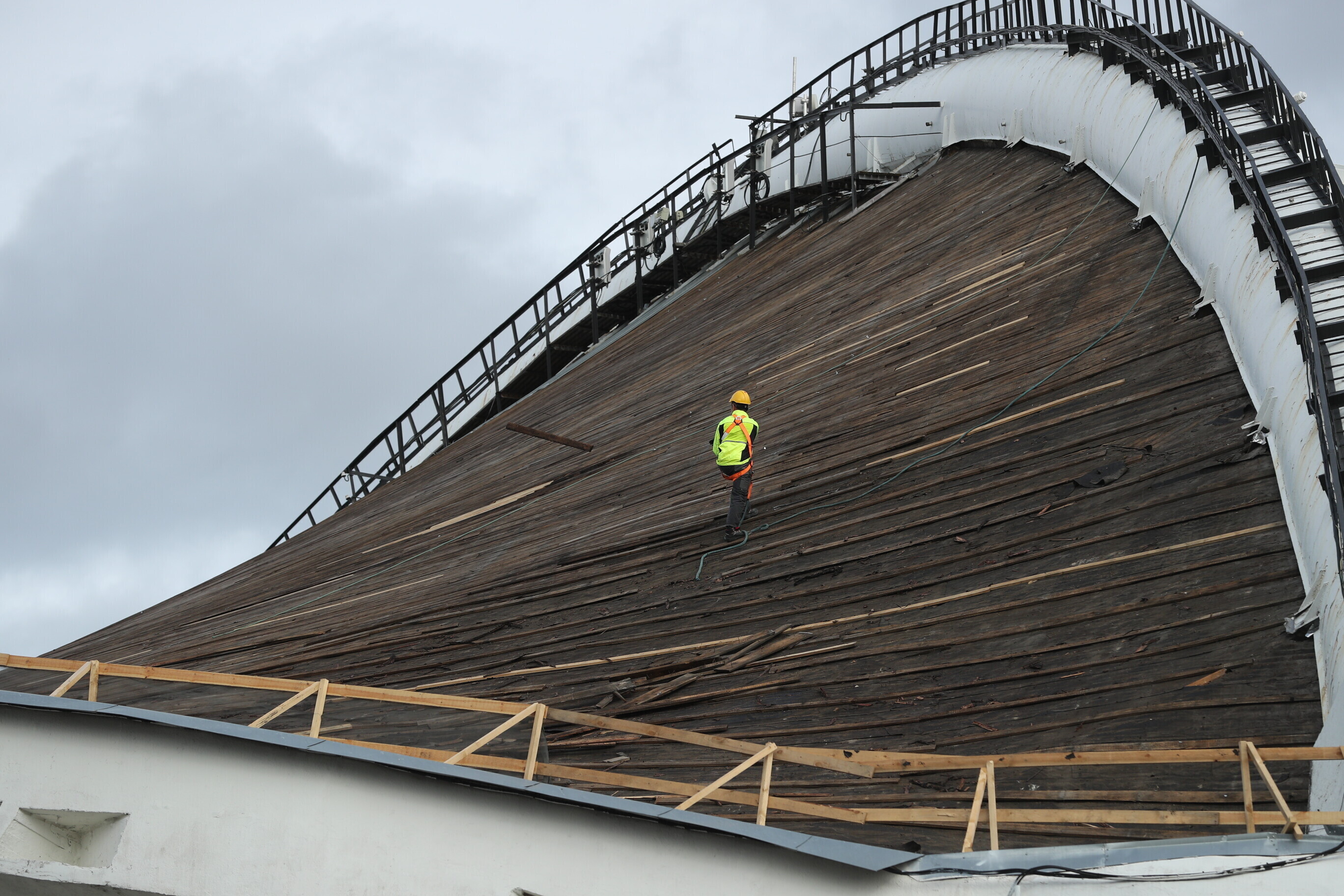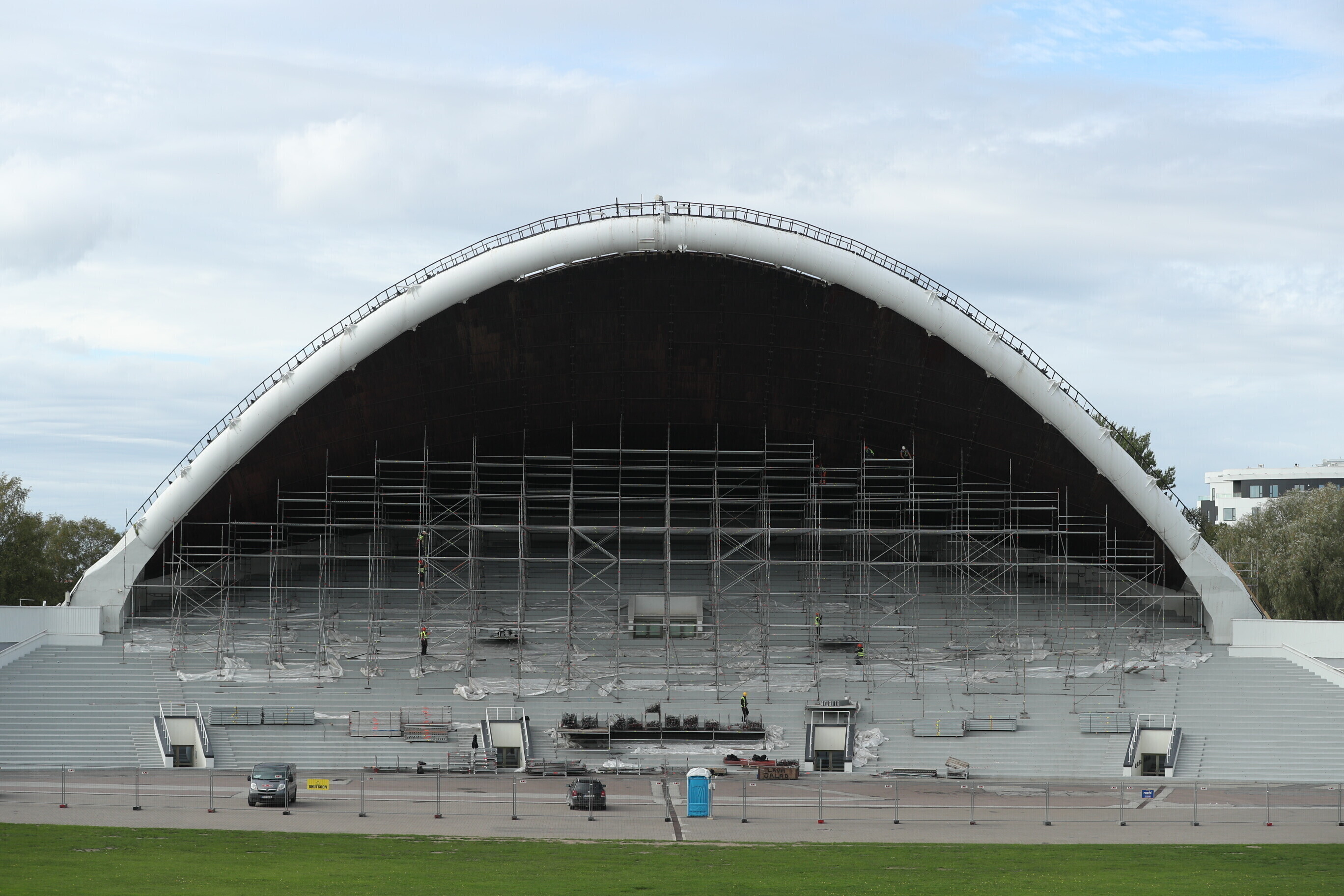 На Певческом поле в Таллинне начались работы по замене дощатого настила Певческой арки, который не меняли с момента постройки сцены 55 лет назад.