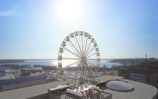 На крыше будет расположено колесо обозрения, максимальная высота обзора - 120 метров над уровнем моря.