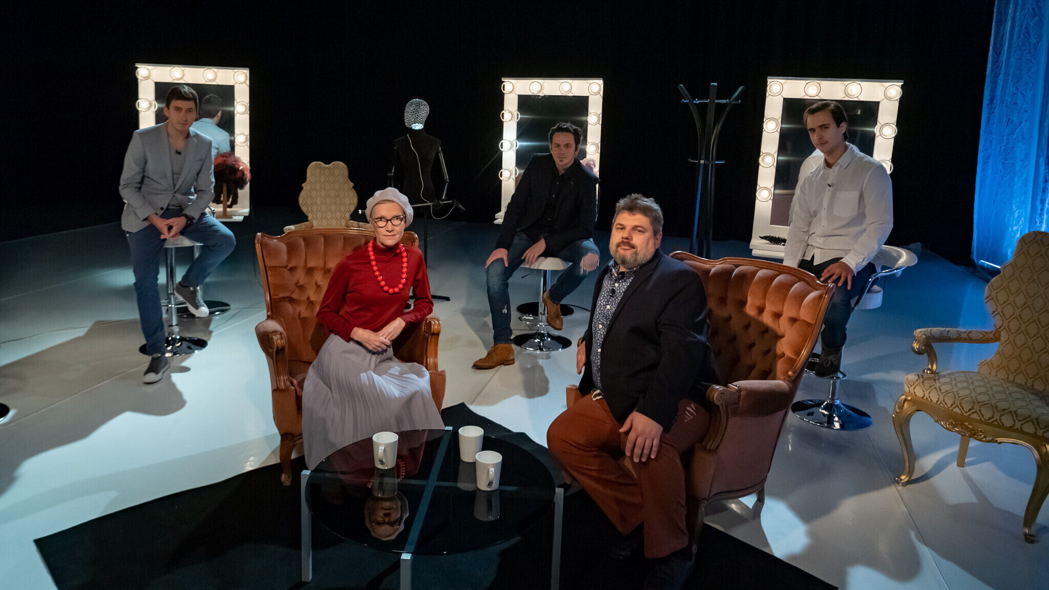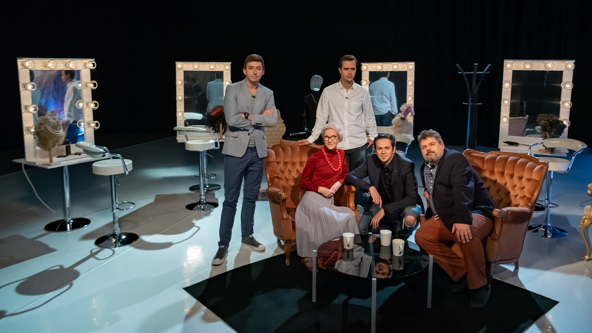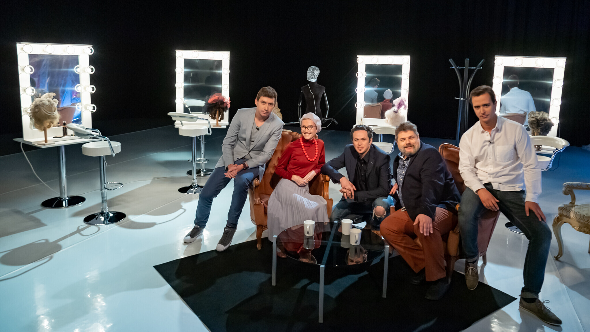 В "Гримерке" в студии ETV+ зрителям расскажут о том, кто закончил Школу-студию МХАТ с красным дипломом, кто мог бы быть художником, не выбери профессию актера, кто чуть было не бросил учебу, кто играл тяжелую музыку до того, как прийти в театр, и что надо делать, услышав "Гопкинс!".