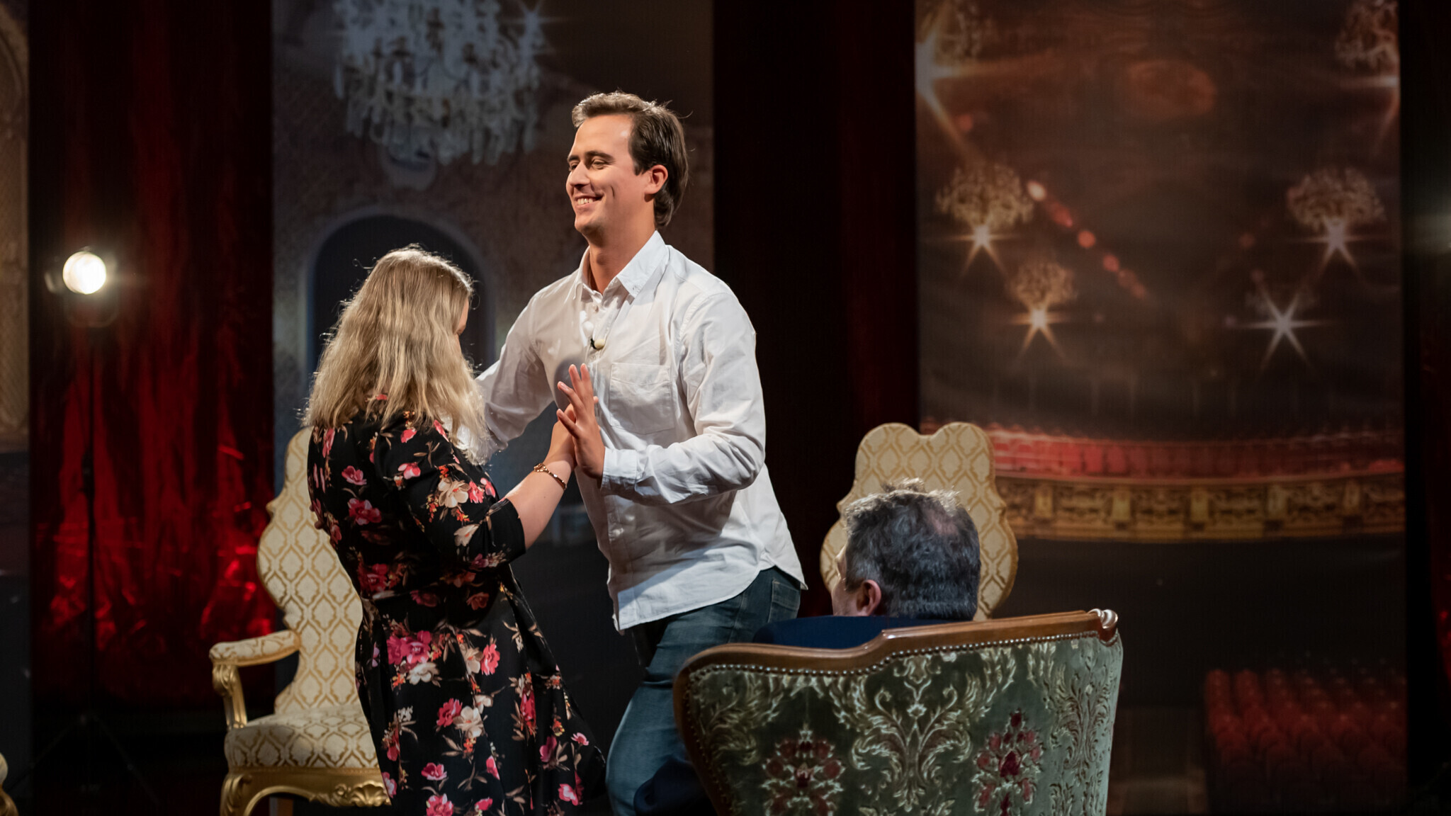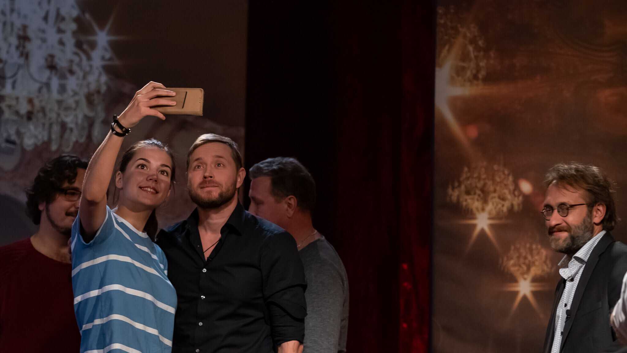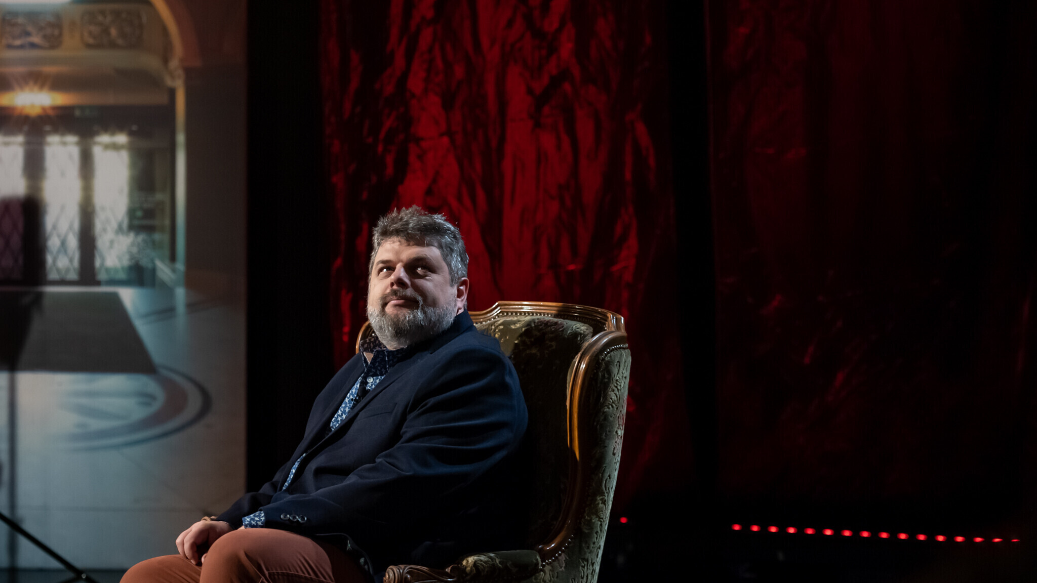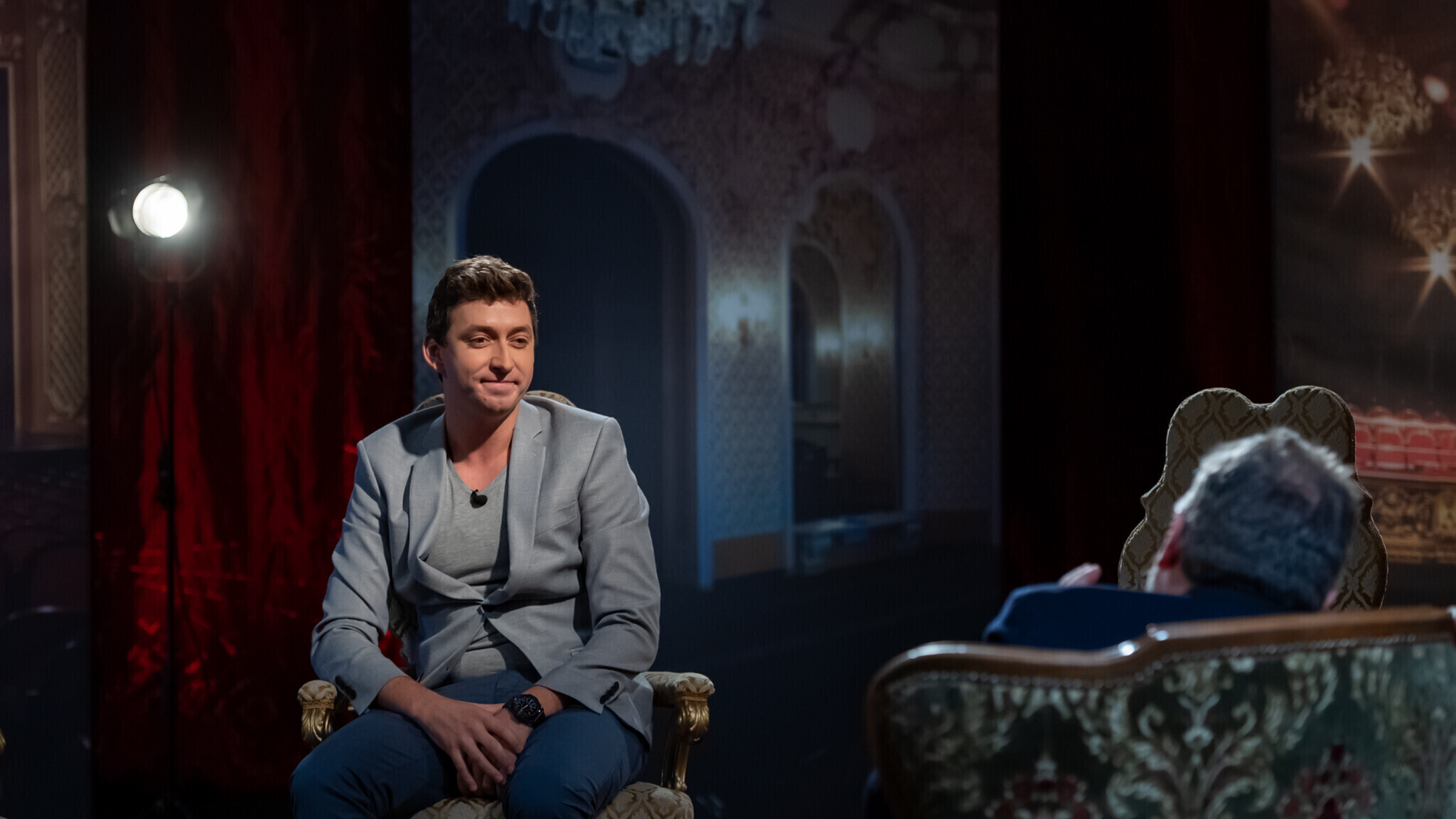 В "Гримерке" в студии ETV+ зрителям расскажут о том, кто закончил Школу-студию МХАТ с красным дипломом, кто мог бы быть художником, не выбери профессию актера, кто чуть было не бросил учебу, кто играл тяжелую музыку до того, как прийти в театр, и что надо делать, услышав "Гопкинс!".