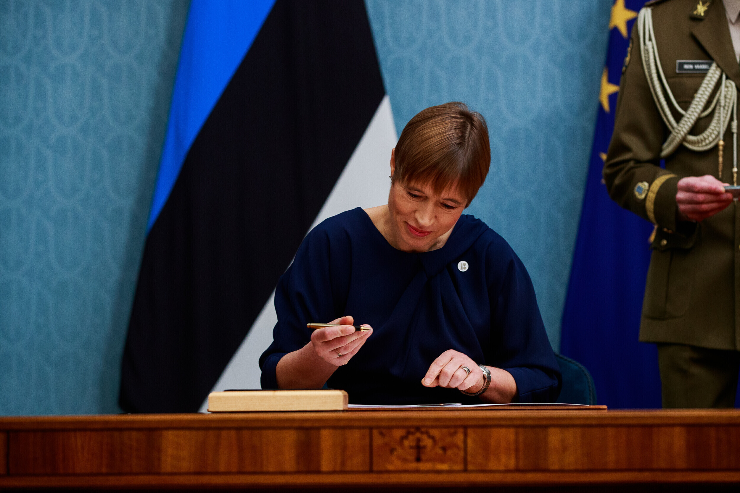 После того, как Кальюлайд одобрила назначение Райк на пост министра, она принесла должностную присягу перед Рийгикогу и официально вступила в новую должность.