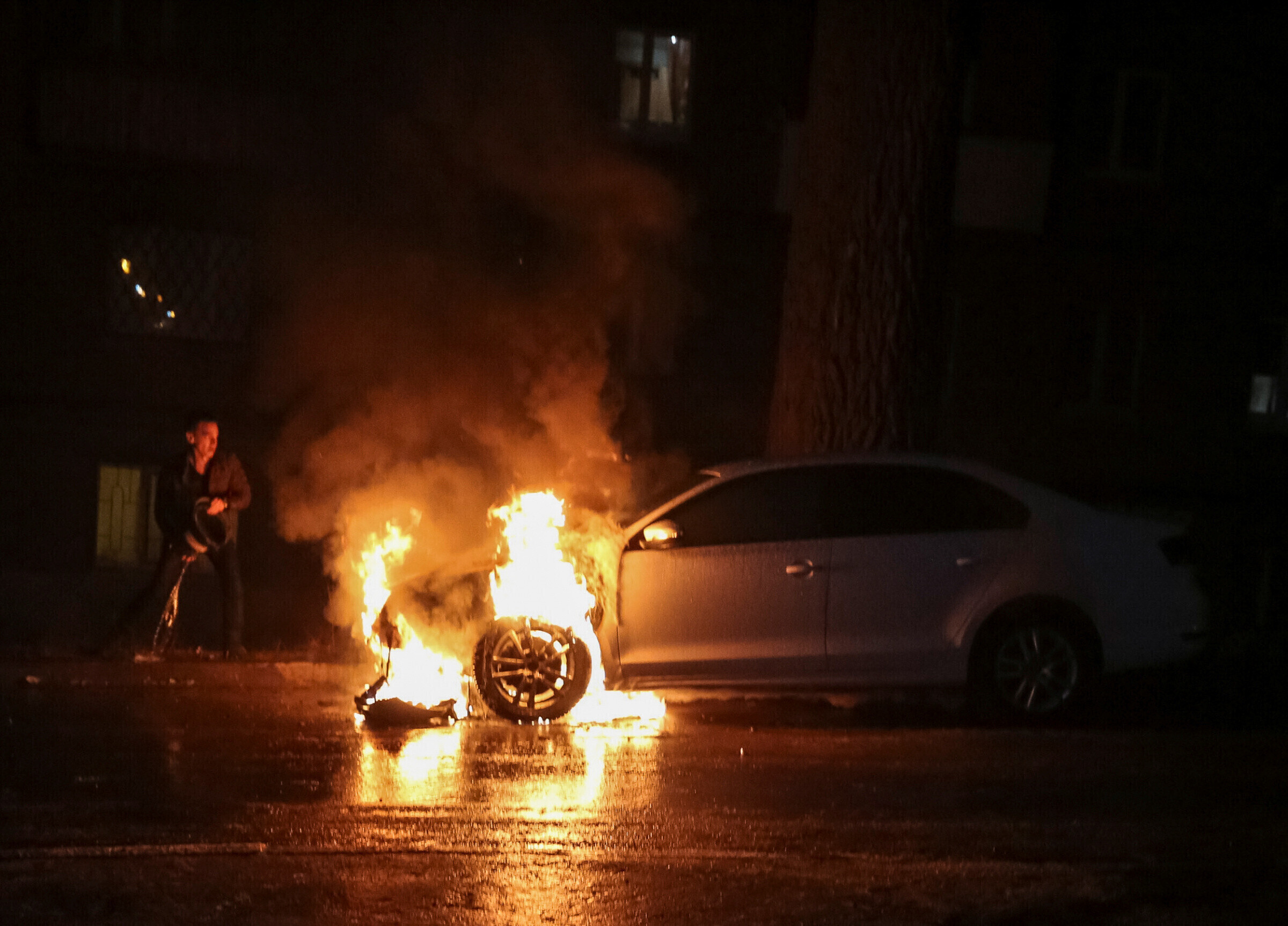 У центрального входа были сложены принесенные митингующими автомобильные шины. Недалеко от российского посольства загорелся автомобиль с дипломатическими номерами, передает dw.com со ссылкой на "Украинскую правду".