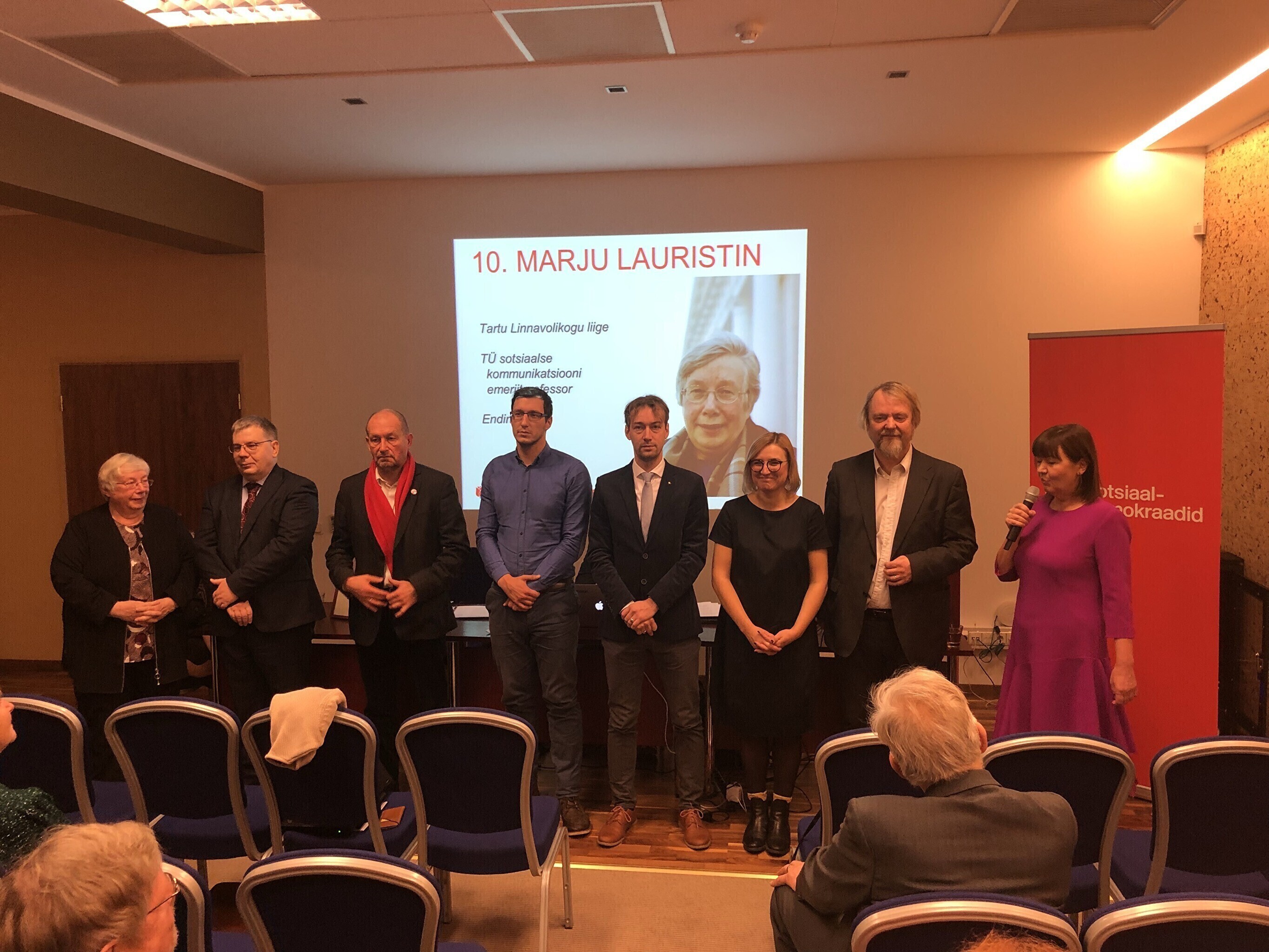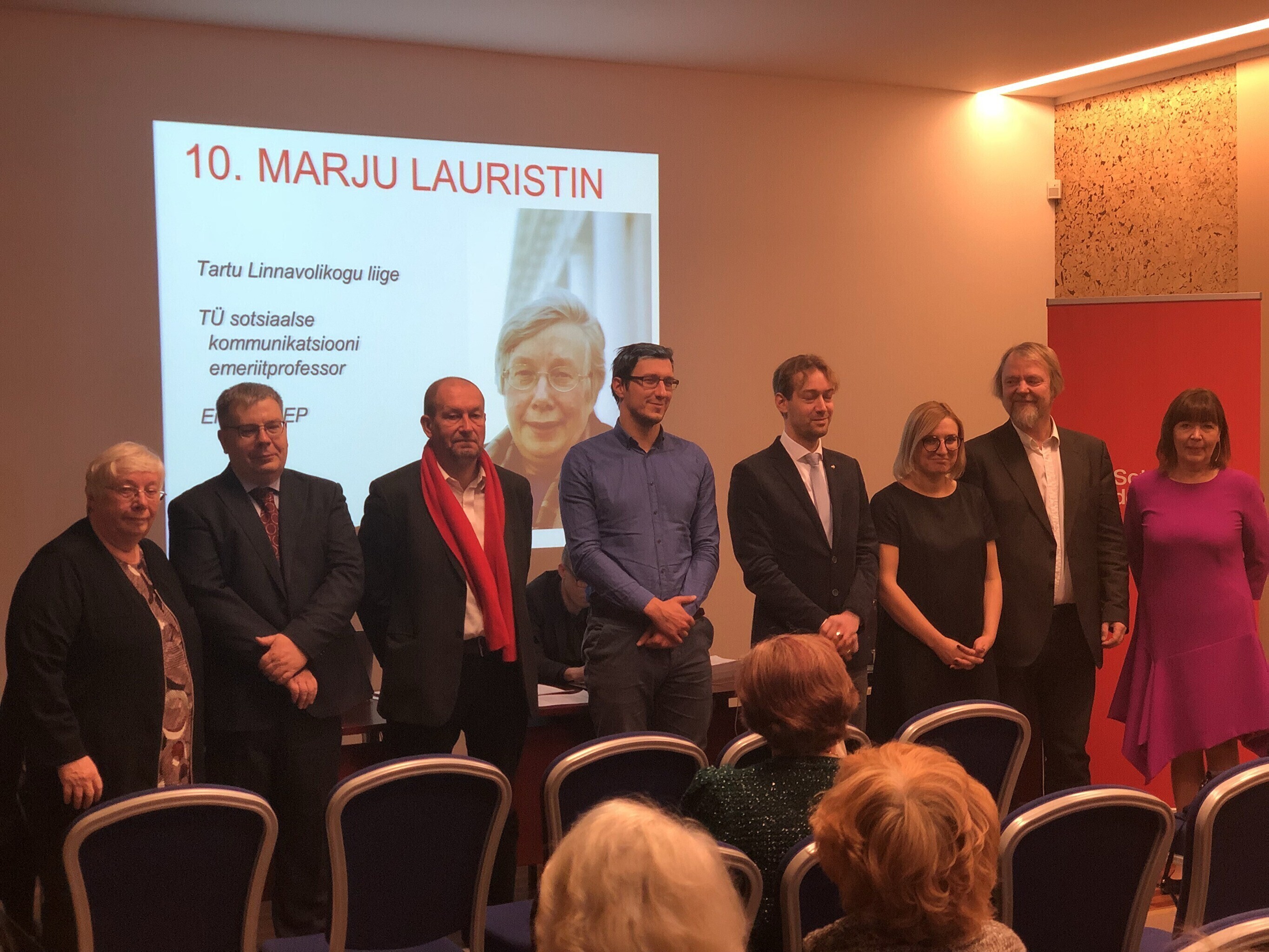 Кроме того, в списке соцдемов на выборы-2019 идут канцлер Тартуского университета Меэлис Лухт, директор Музея печати и бумаги Леммит Каплински, учитель Таммеской гимназиии Отт Майдре, директор Тартуской городской библиотеки Аско Тамме, культурный деятель Антс Йохансон, руководитель Центра Йоханнеса Михкельсона Тыну Интс и в роли "якоря" списка выступает депутат Тартуского горсобрания и профессор Тартуского университета Марью Лауристин.