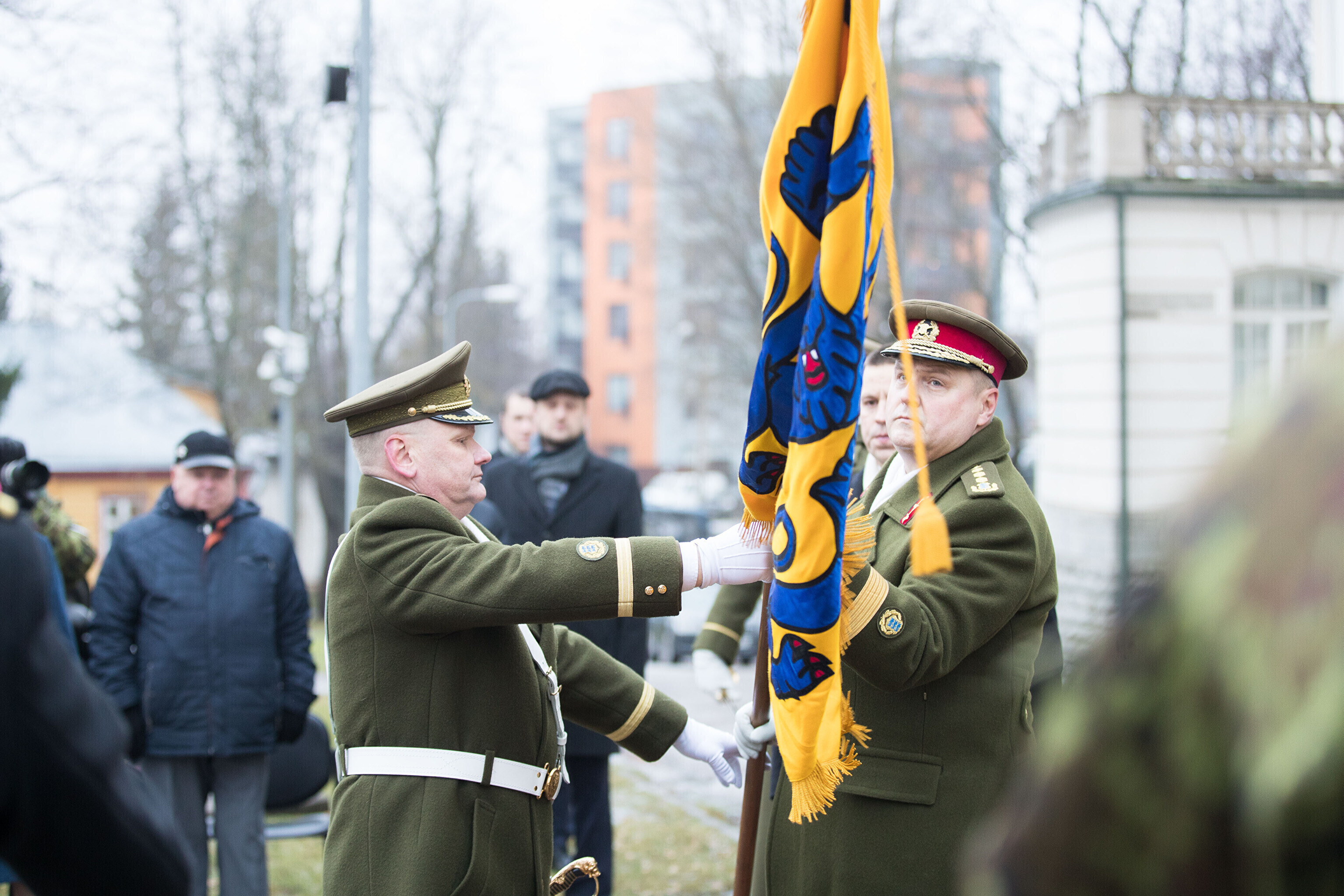 Торжественная церемония передачи полномочий состоялась на территории Главного штаба. В соответствии с традицией, вместе с полномочиями было передано также знамя Сил обороны, передают радионовости ERR.